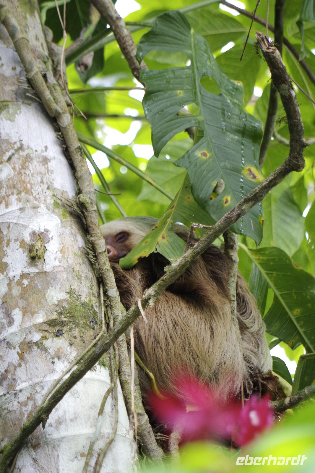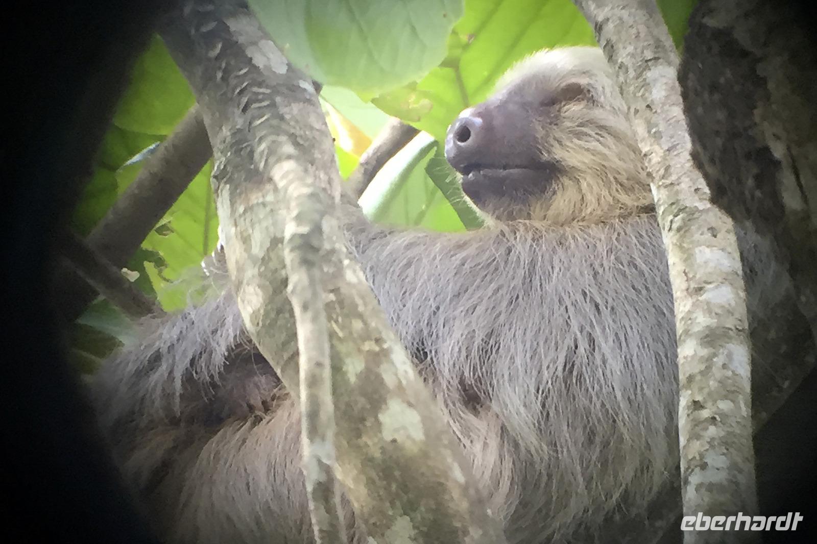 Heute fuhren wir nun Richtung Karibikküste zum Braulio Carrillo Nationalpark. Auf dem Las Palmas Wanderweg entdeckten wir hier etliche Vogelarten. Vorbei an Limon ging es weiter nach Puerto Viejo und zum Cariblue Hotel. Die tolle Anlage mit vielen Bungalows, Pool, offenem Restaurant und unweit vom Strand entfernt, gefiel allen sehr gut. Denn auch hier konnte man etliche Tiere in dem recht großen Gelände beobachten.