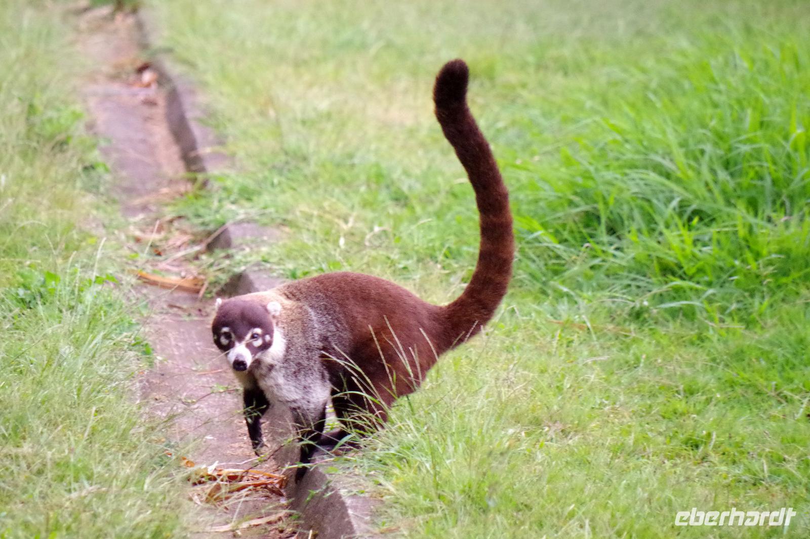 In dem kleinen Restaurant am Skywalk aßen wir gleich zu Mittag. Am Nachmittag stoppten wir in der kleinen Stadt Monte Verde, um uns für den Abend essen zu kaufen, Freizeit. Ein Nasenbär suchte auch nach Essbarem auf den Terrassen unserer Zimmer, er hatte wohl den Transfer in den Supermarkt verpasst. :-)