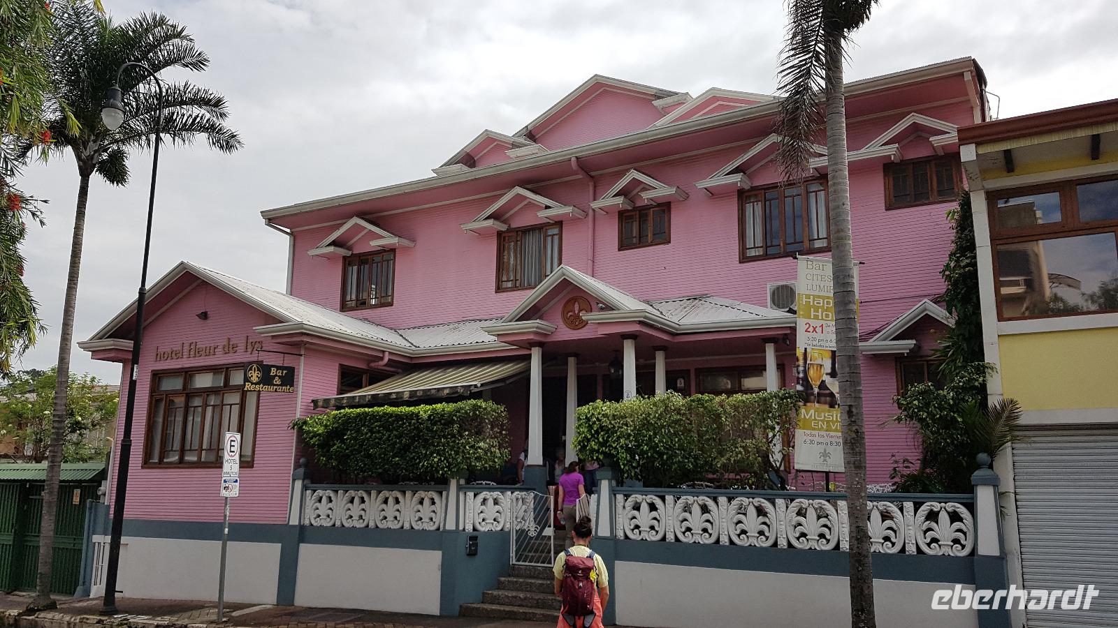 Unser Reiseleiter Nico erwartete uns schon und brachte uns zum Geldautomaten, um Colones zu erhalten. Dann fuhren wir in die Stadt San Jose zu unserem Hotel Fleur de Lys und checkten ein. Alle Zimmer hatten Blumennamen und obwohl es in San Jose erst 19 Uhr war, zogen es die meisten vor, ins Bett zu gehen. Nico warnte uns und prophezeihte, dass wir bereits 2 Uhr wieder wach wären, aber wir waren sehr sehr müde. Nur 4 Singles entschlossen sich, noch etwas essen zu gehen.