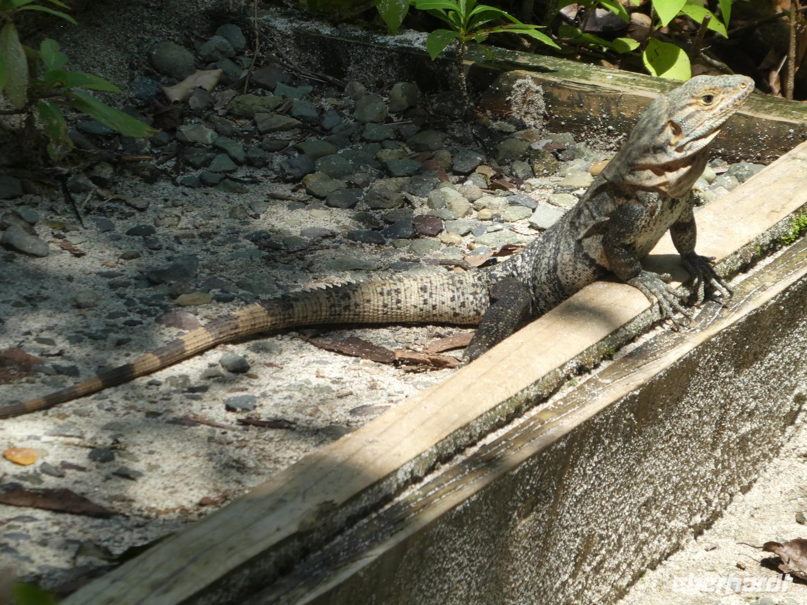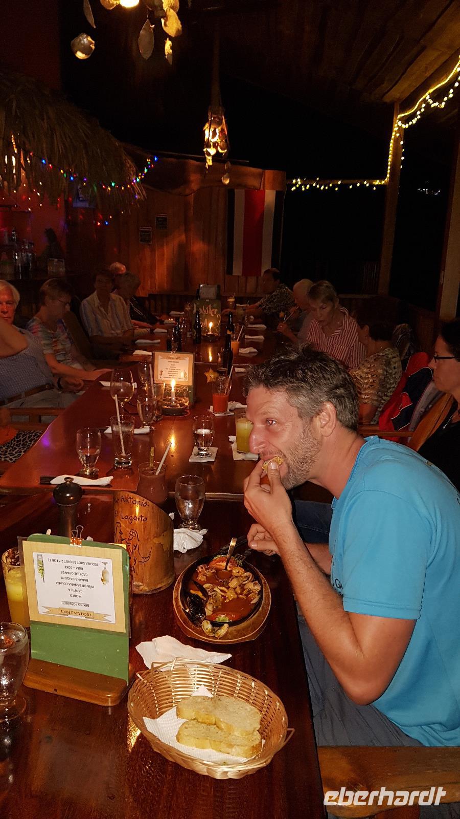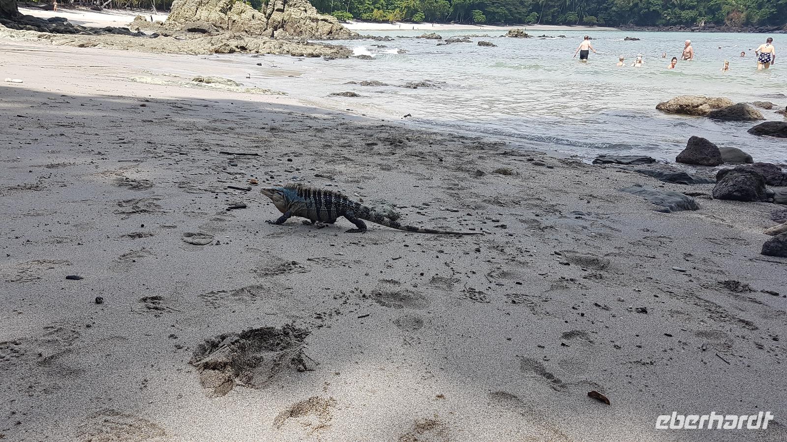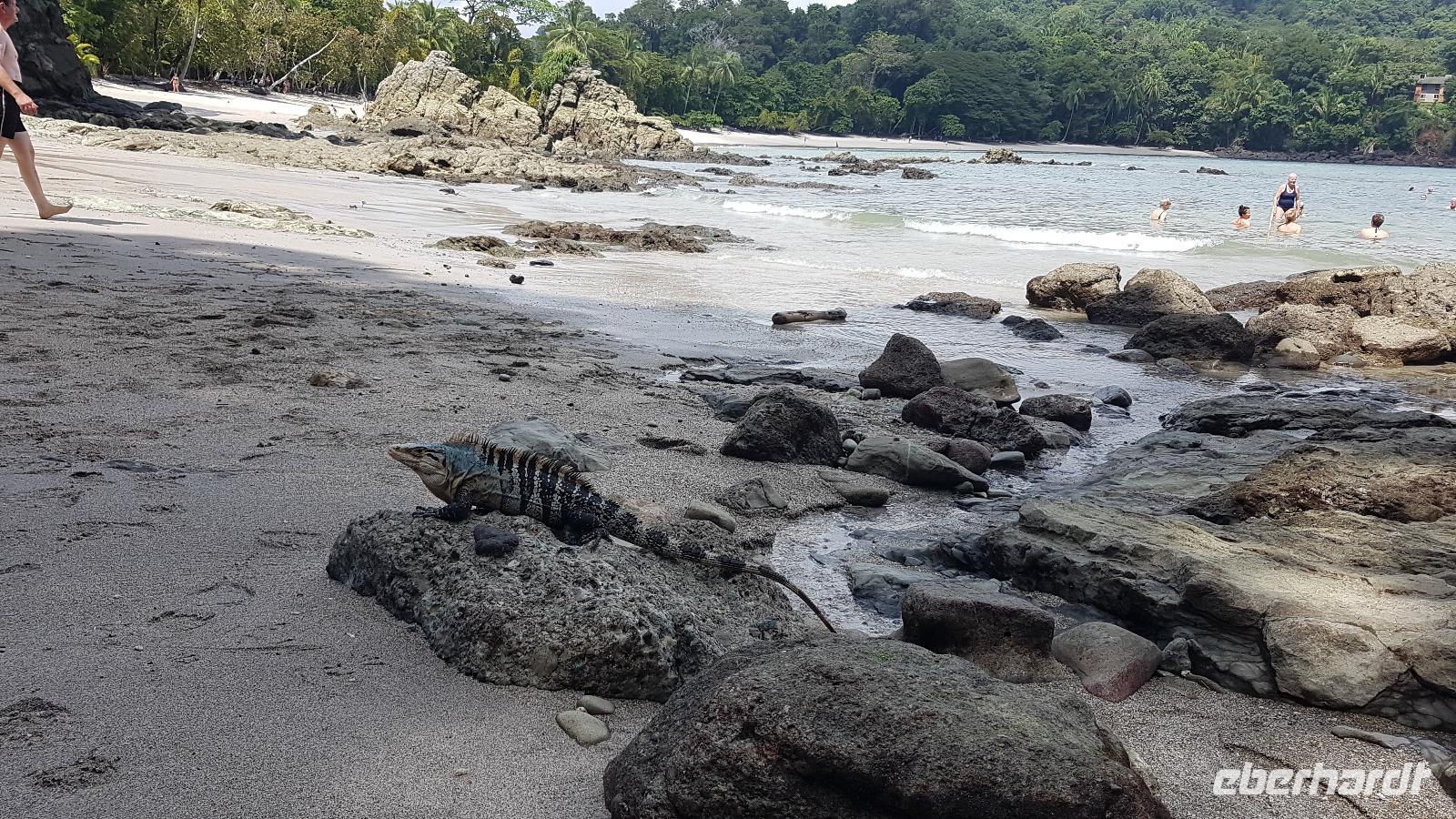 Nach einer Mittagspause machten wir noch eine kleine Wanderung um die Felsenspitze im Manuel Antonio National Park und suchten uns danach eine schöne Badebucht zum Schwimmen im warmen Pazifik. Kapuzineraffen und Leguane waren am Strand zu gange und ein Waschbär versuchte die Tasche von Badenden zu räubern. Das konnte ich aber verhindern. Zu Fuss liefen wir am Nachmittag dann zurück zu unserem Hotel und nutzten dort den Strand zum Wellenspringen. Das Abendessen nahmen wir im angesagten Grillrestaurant Lagarto ein. Dort gab es alles von einem überdimensionalen Grill und wir durften wieder aus der Speisekarte selbst wählen. Es schmeckte alles vorzüglich.