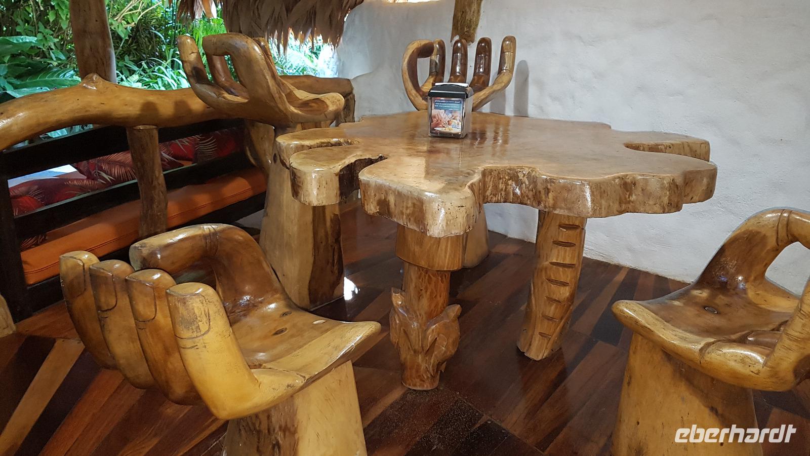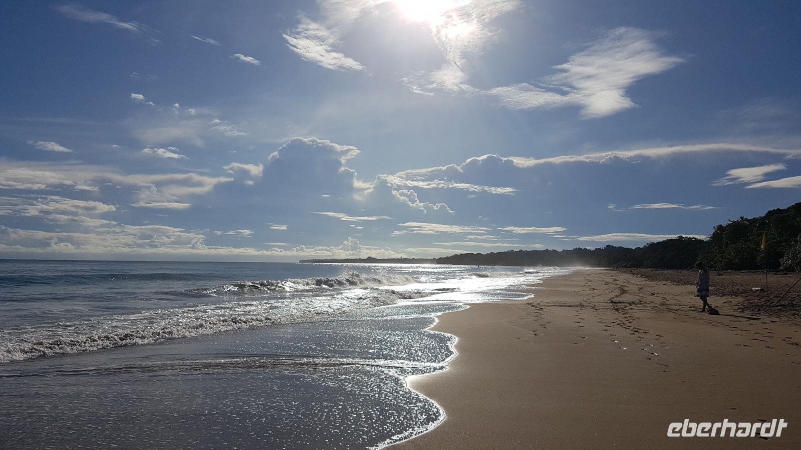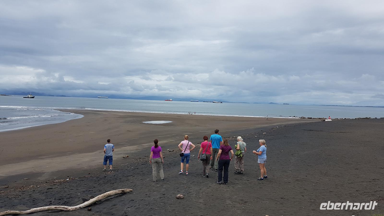 Nach einer Mittagspause machten wir noch eine kleine Wanderung um die Felsenspitze im Manuel Antonio National Park und suchten uns danach eine schöne Badebucht zum Schwimmen im warmen Pazifik. Kapuzineraffen und Leguane waren am Strand zu gange und ein Waschbär versuchte die Tasche von Badenden zu räubern. Das konnte ich aber verhindern. Zu Fuss liefen wir am Nachmittag dann zurück zu unserem Hotel und nutzten dort den Strand zum Wellenspringen. Das Abendessen nahmen wir im angesagten Grillrestaurant Lagarto ein. Dort gab es alles von einem überdimensionalen Grill und wir durften wieder aus der Speisekarte selbst wählen. Es schmeckte alles vorzüglich.