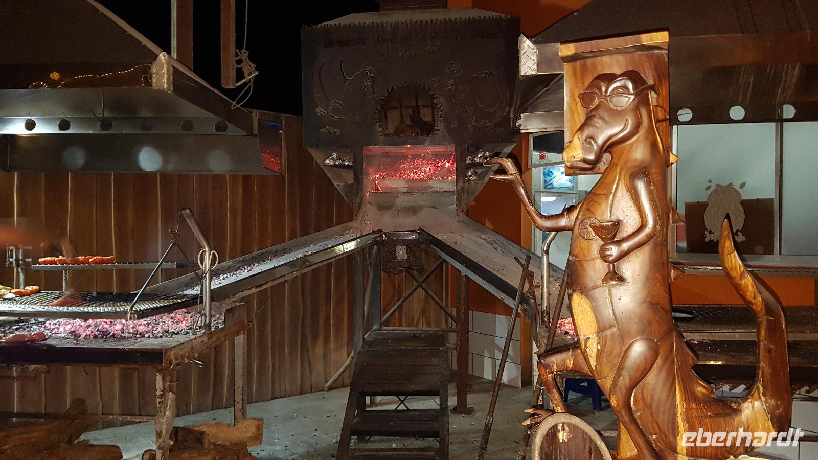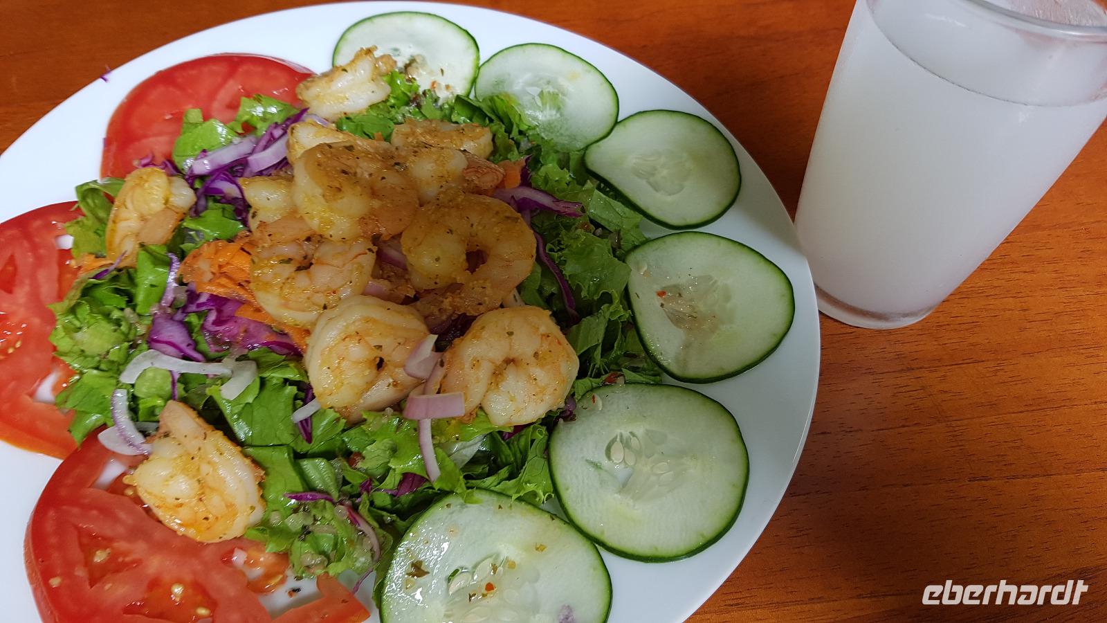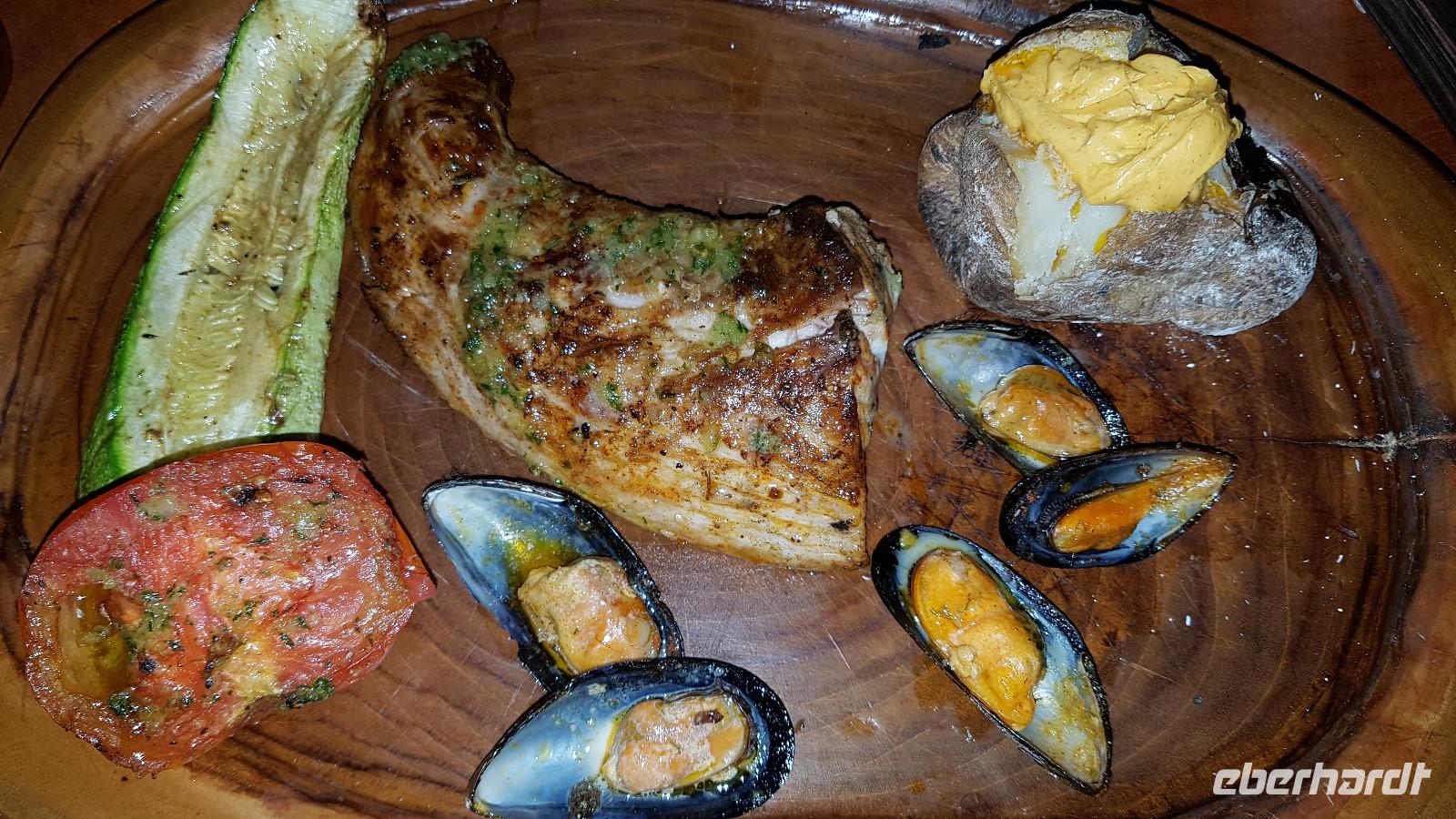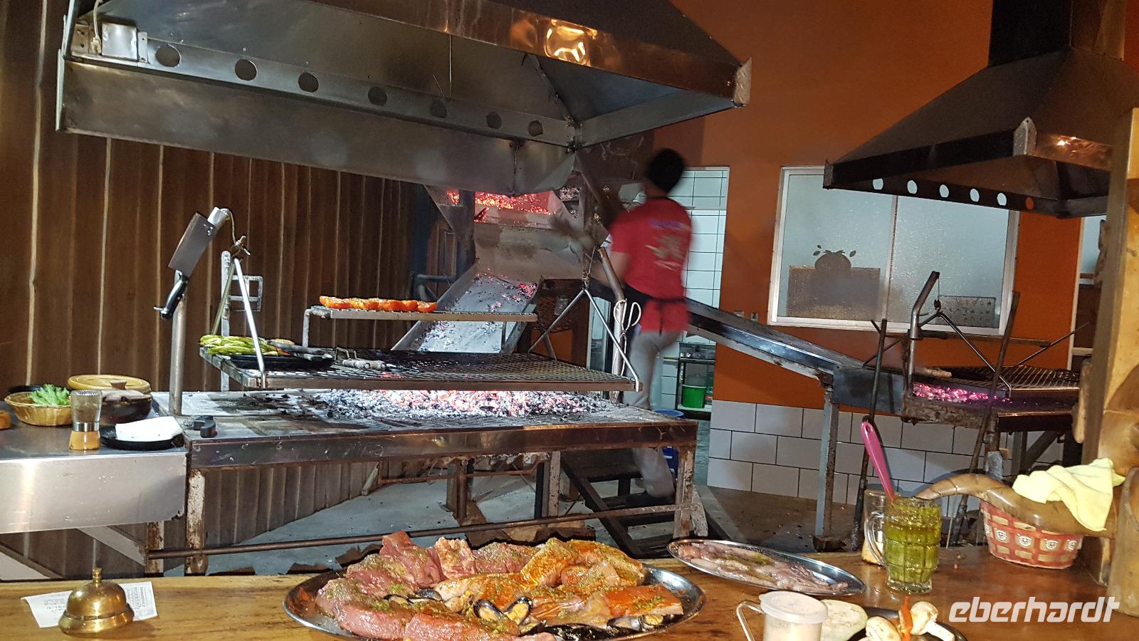 Nach einer Mittagspause machten wir noch eine kleine Wanderung um die Felsenspitze im Manuel Antonio National Park und suchten uns danach eine schöne Badebucht zum Schwimmen im warmen Pazifik. Kapuzineraffen und Leguane waren am Strand zu gange und ein Waschbär versuchte die Tasche von Badenden zu räubern. Das konnte ich aber verhindern. Zu Fuss liefen wir am Nachmittag dann zurück zu unserem Hotel und nutzten dort den Strand zum Wellenspringen. Das Abendessen nahmen wir im angesagten Grillrestaurant Lagarto ein. Dort gab es alles von einem überdimensionalen Grill und wir durften wieder aus der Speisekarte selbst wählen. Es schmeckte alles vorzüglich.