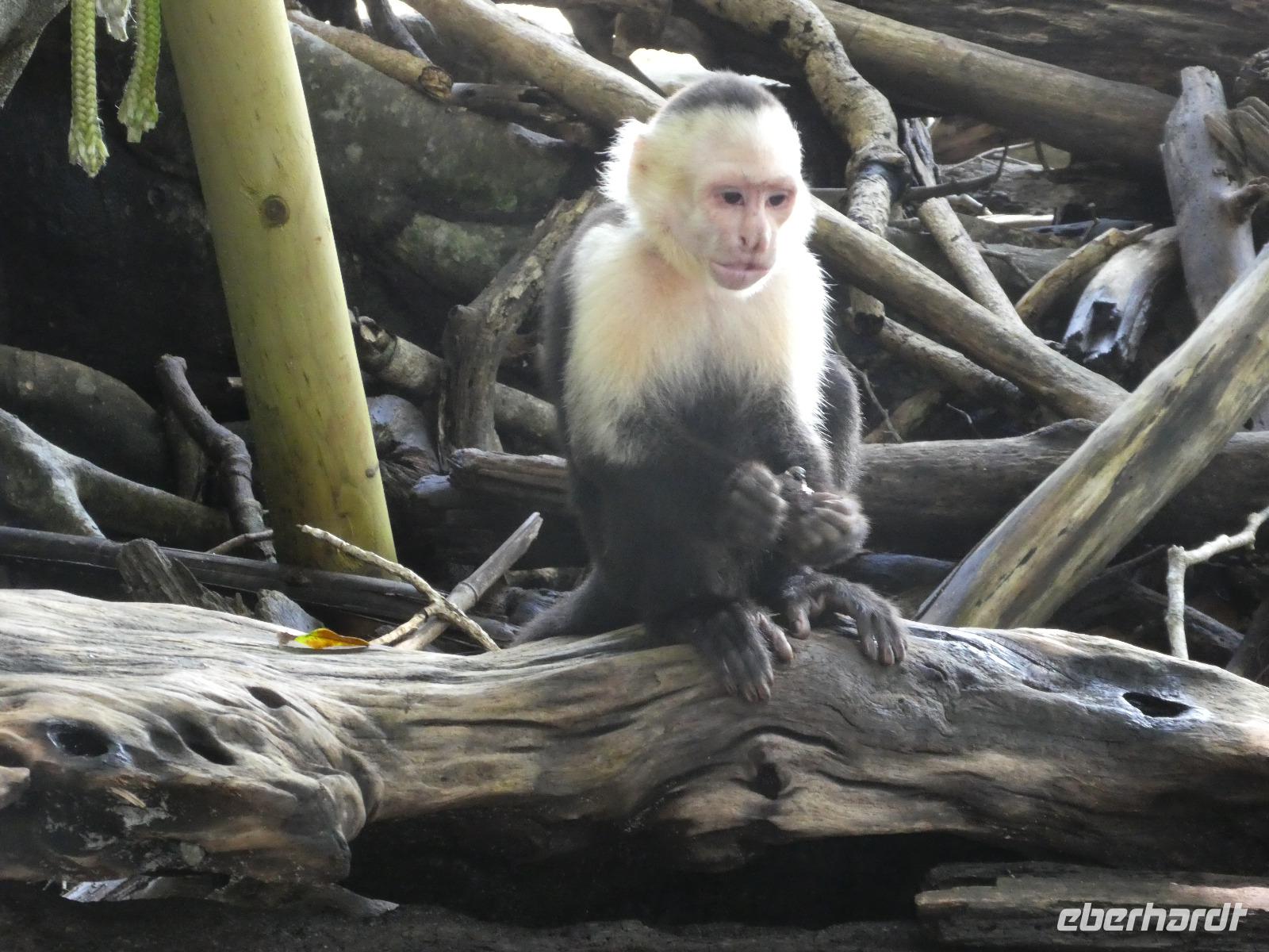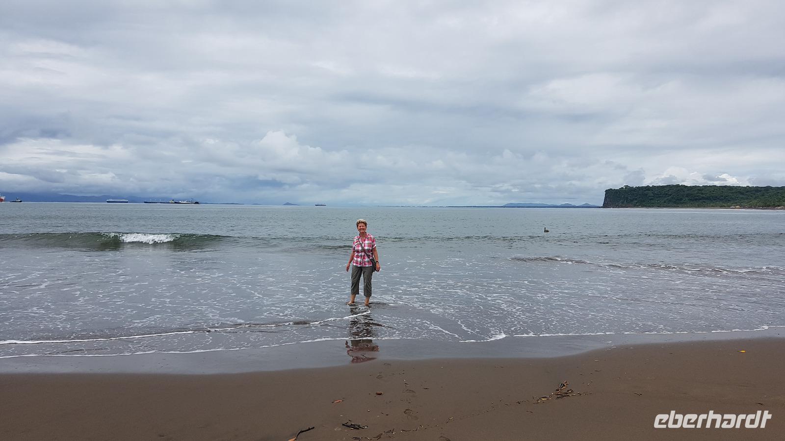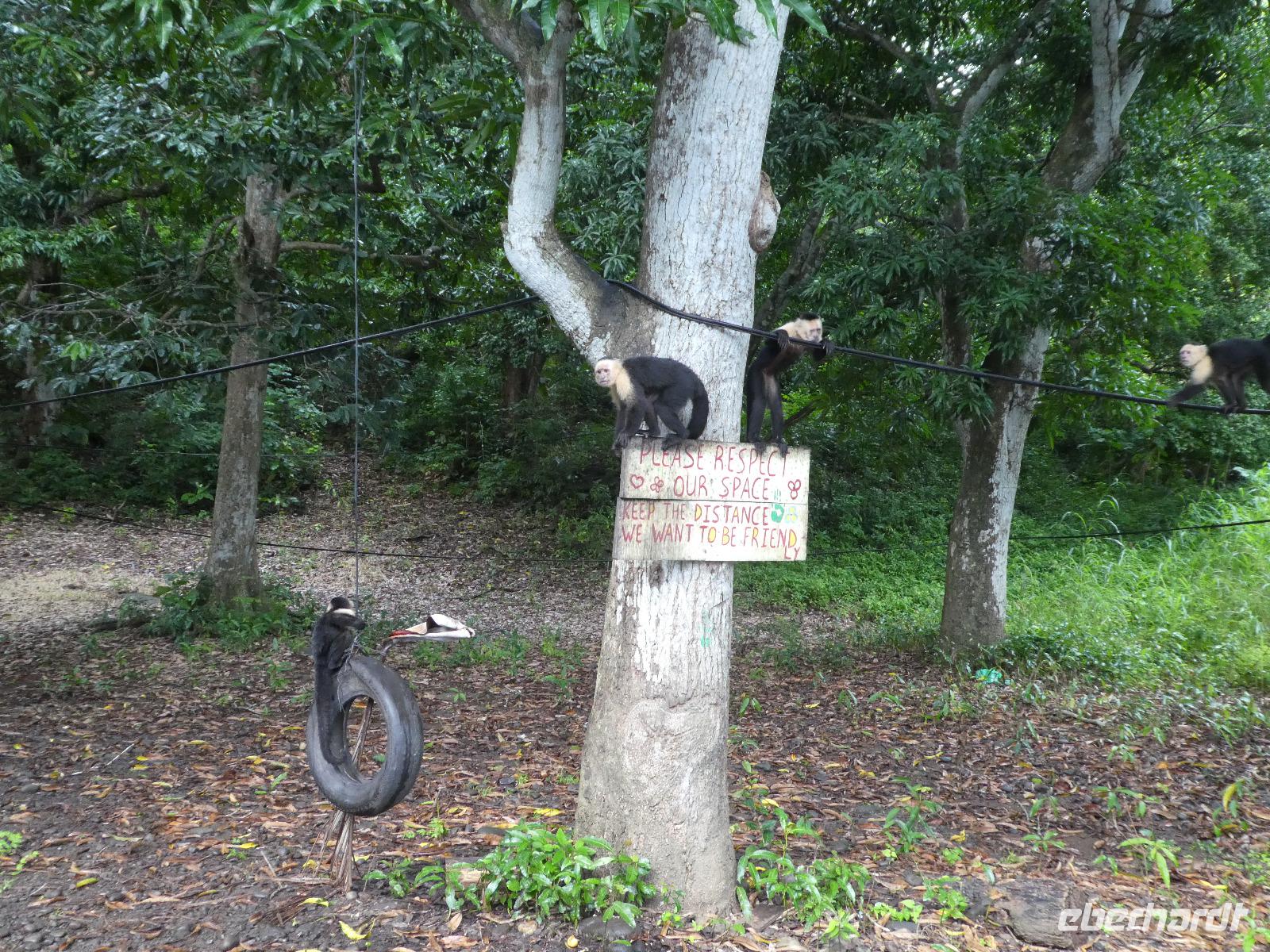 Mit unserem Bus fuhren wir hinunter zur Hauptstrasse und dort machten wir einen kurzen Abstecher zu einer Familie, die sich liebevoll um Kapuzineraffen kümmerte. Wir kamen den Tieren ganz nahe, durften sie füttern und die Affen kletterten auch gern auf unsere Schultern. Unzählige Fotos wurden geschossen und wir hatten Tiere "hautnah" erleben dürfen. Auf der Weiterfahrt an der Südküste legten wir einen Stopp beim Tacoles Fluss ein, wo unten an einer Brücke viele Krokodile lagen. Die Tiere finden dort alles was sie brauchen und bei grosser Hitze flüchten sie in den Schatten unter der Brücke. Am Abend erreichten wir bei Dunkelheit und Regen unser Hotel Karahe nahe dem Manuel Antonio Nationalpark. Das Abendessen gab es im Beachrestaurant und hier konnten wir leicht bekleidet aber mit Schirm zum Essen gehen. Das Erkunden des Strandes verlegten wir auf den Folgetag.