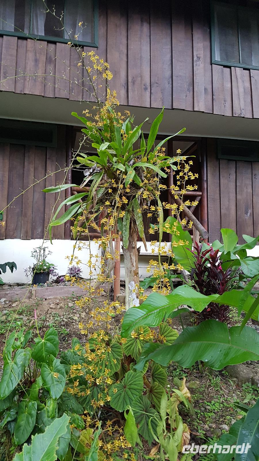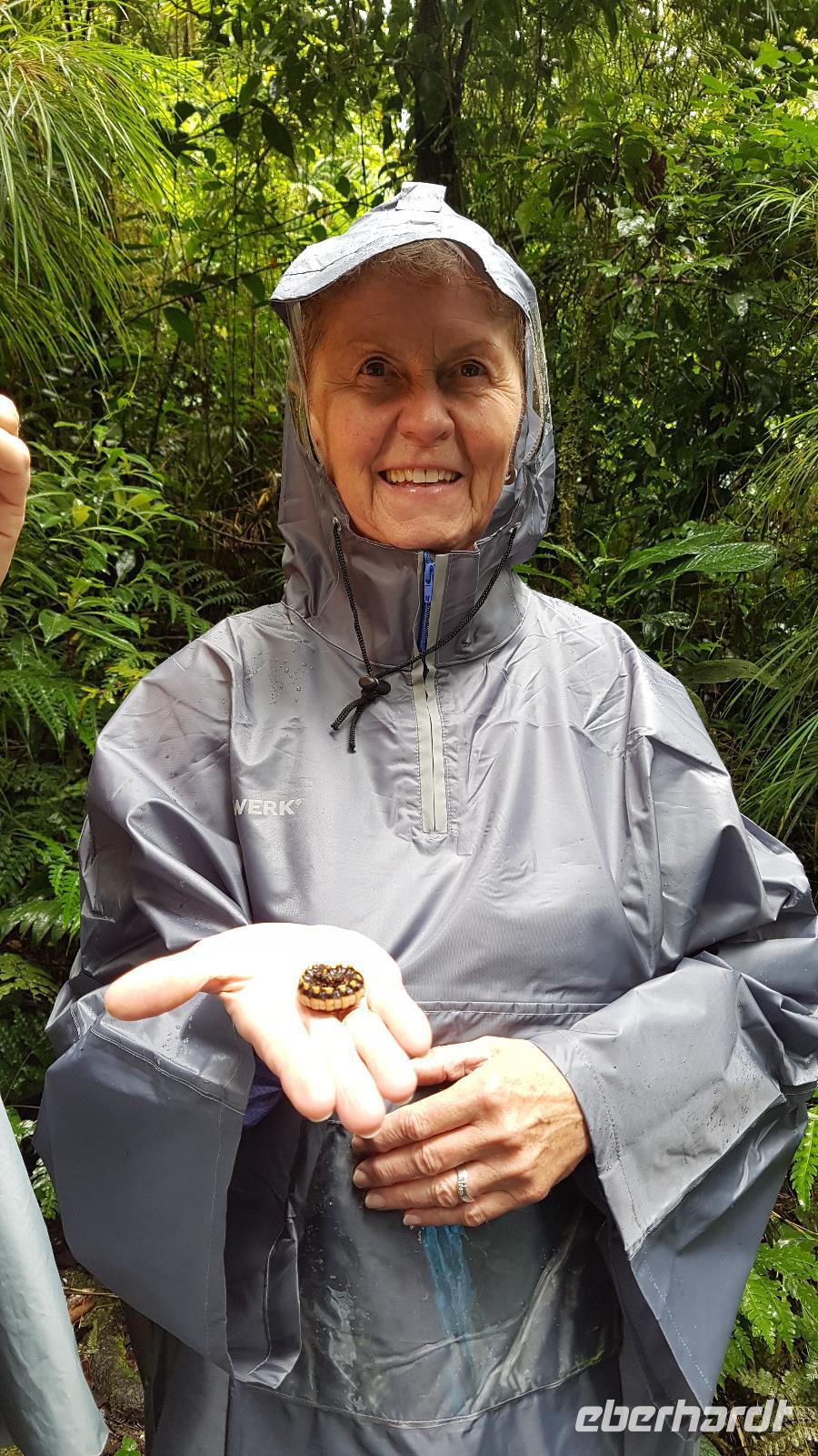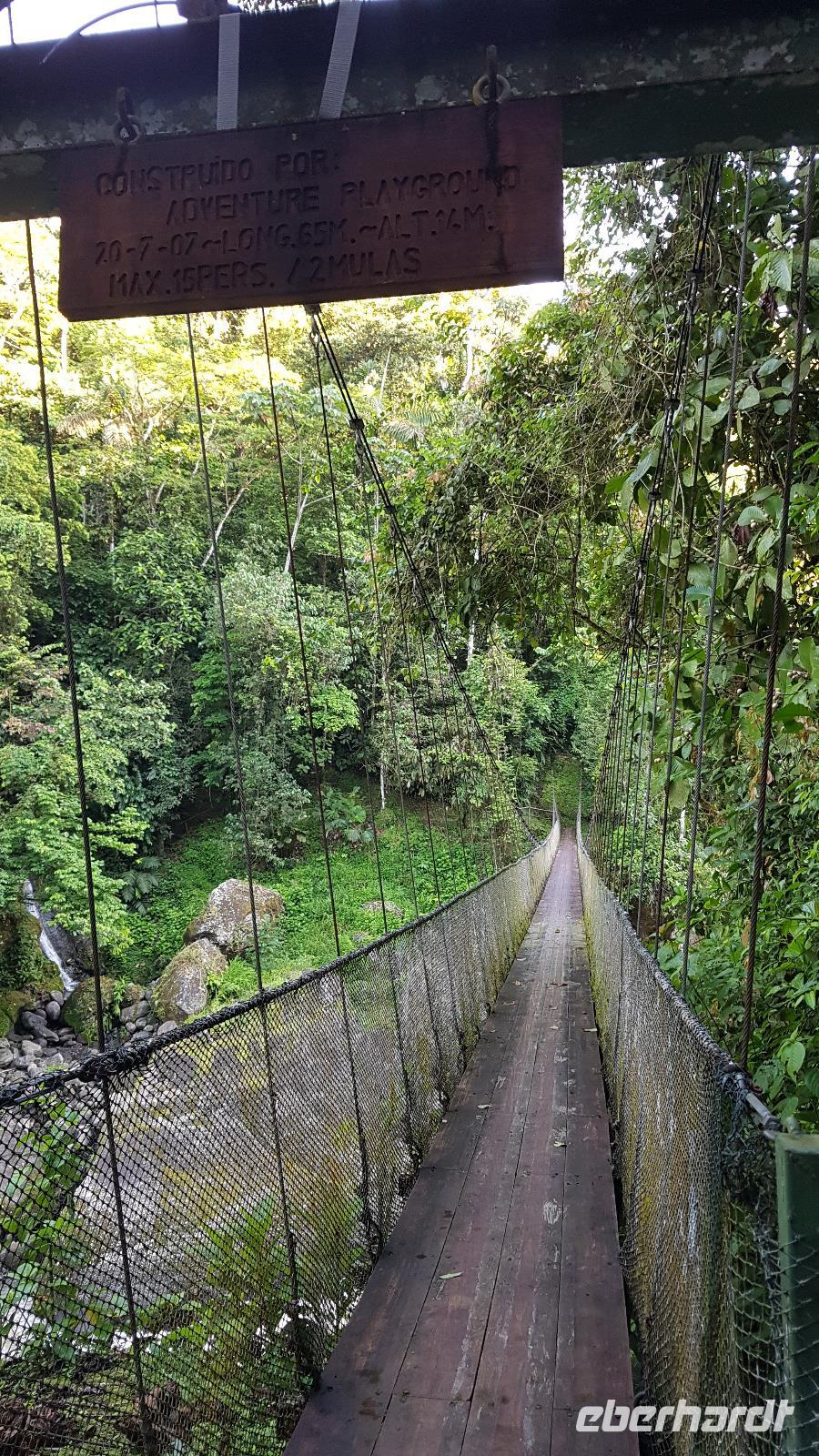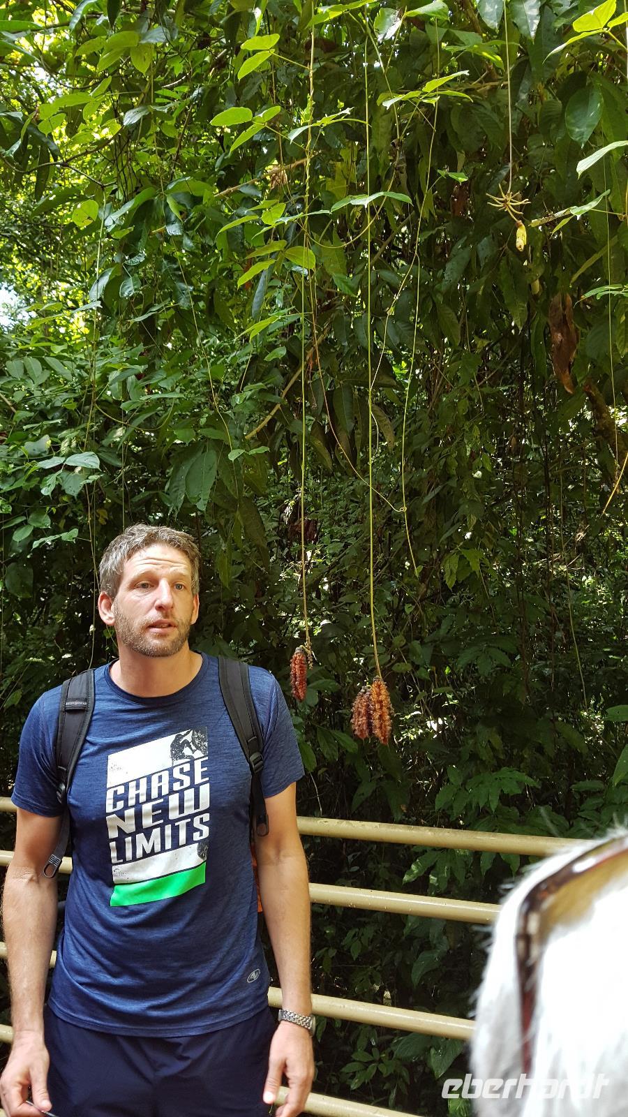 In Costa Rica fängt der frühe Vogel den Wurm - denn normalerweise ist es vormittags immer schön und irgendwann am Nachmittag setzt der Regen ein. So gab es fast immer ein zeitiges Frühstück und einen frühen Beginn der Touren. Über Nacht war unser Bus getauscht worden und Truman sehr glücklich, dass er uns nun zügig fahren konnte. Es war nur ein kurzes Stück bis zum Selvatura Park, wo wir sogleich Helme, Gurte und Arbeitslederhandschuhe bekamen. Auch konnte man eine Helmkamera ausleihen und den Rucksack für einen Vogelflug bekommen. Mit Jeeps fuhren wir dann bergauf bis zur ersten Plattform fürs Canopying. Dort erfolgte eine ganz praktische Einweisung und nun wurde es ernst für unser erstes Abenteuer. Wir stiegen hinauf auf die Plattform, wurden fachkundig gesichert und dann sauste jeder am Seil entlang zur nächsten Plattform. Haltungsnoten wurden glücklicherweise nicht vergeben, aber Hinweise, wie man noch schneller werden konnte. So glitten wir am Seil von Plattform zu Plattform und für die ganz langen Seile von 950 m und 1000 m fuhren immer 2 Personen gemeinsam, um über das Gewicht die nötige Geschwindigkeit zu bekommen. Leider hatte an diesem Vormittag der Regen schon viel zu früh eingesetzt und so waren die Mutigsten beim Tarzansprung schon klitschnass. Auch das längste Seil konnten wir wegen des starken Regens nicht mehr so richtig geniessen. Dennoch war es eine überwältigendes Erlebnis - dsas Abenteuer Nr. 1.