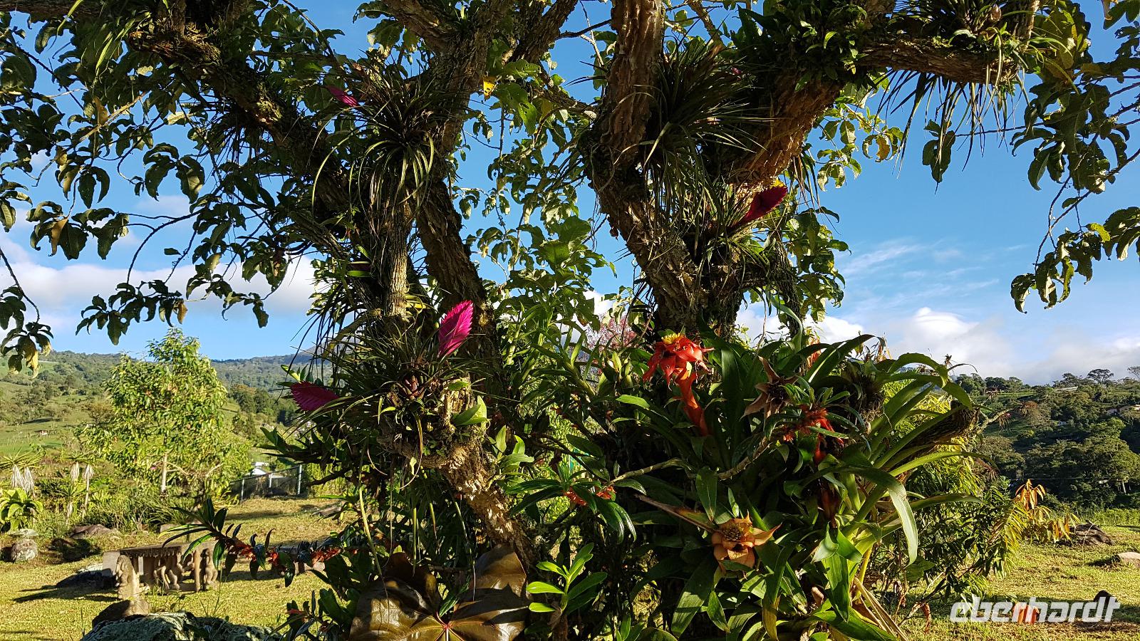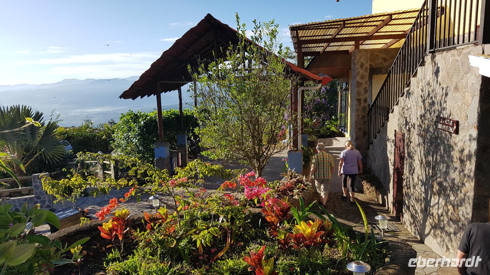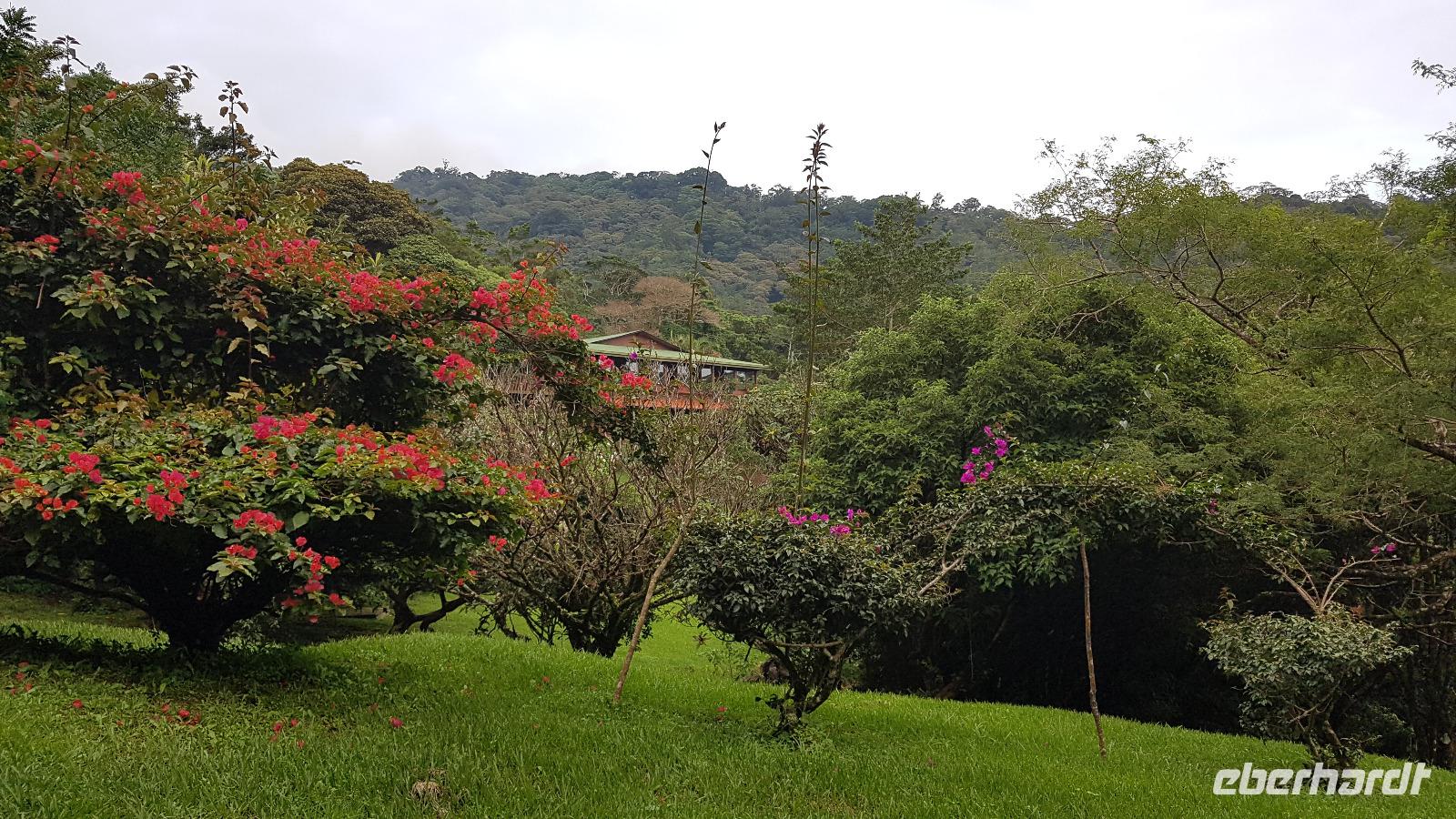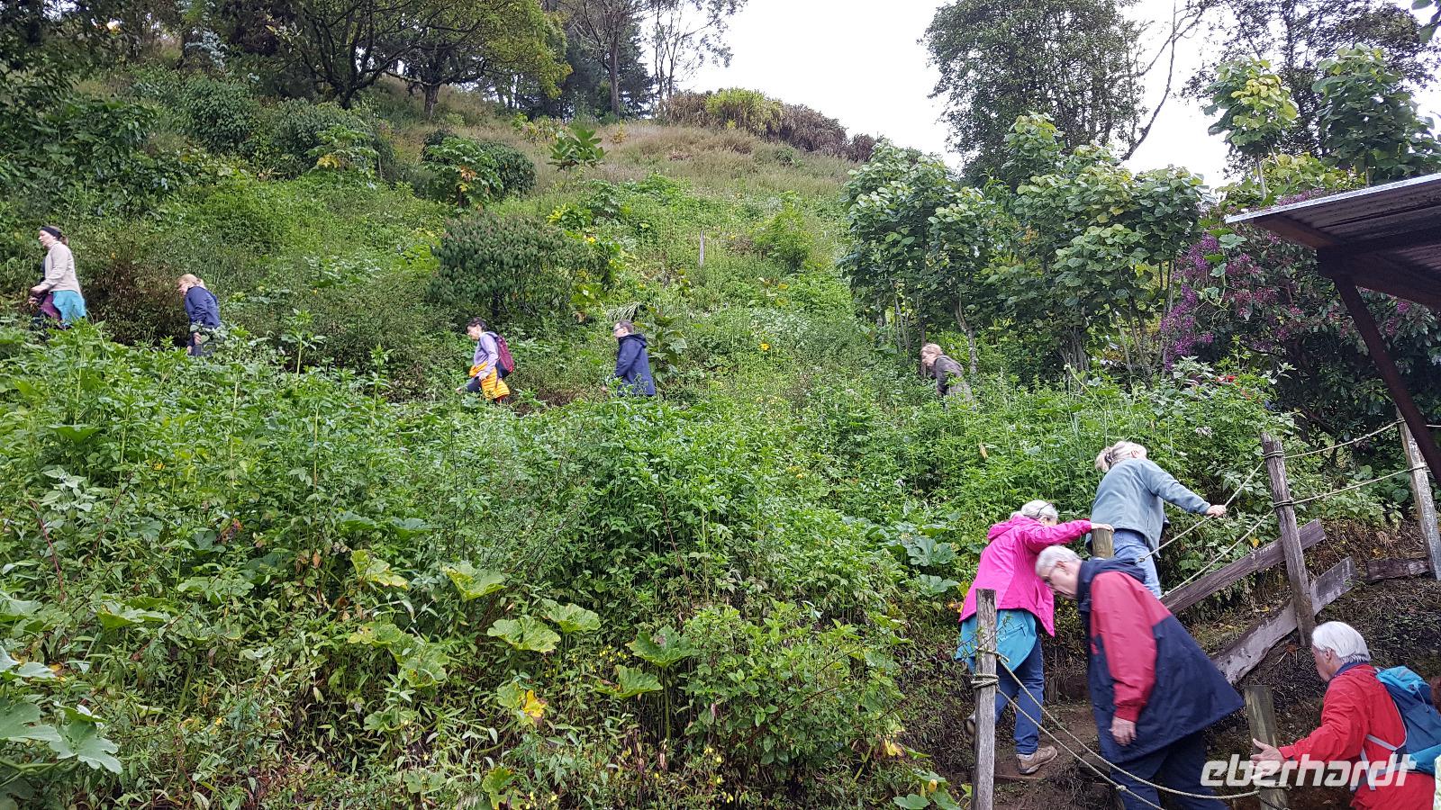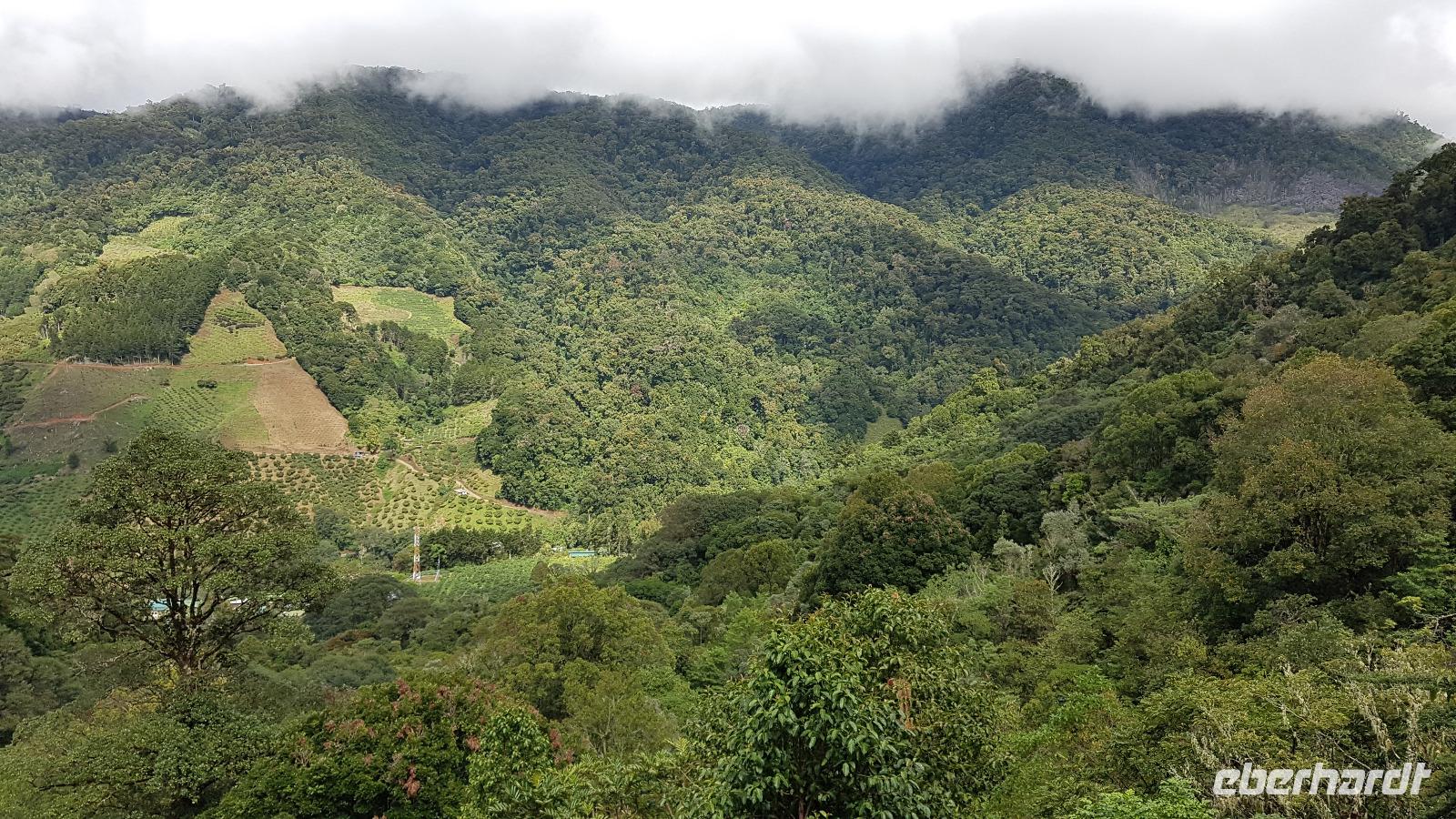5.30 Uhr trafen wir uns auf einen Kaffee und da sahen wir erst einmal wie schön doch unsere Savegre Lodge war. Nico hatte einen Tipp bekommen, wo wir den Quetzal finden könnten. Er frisst gern die kleinen Früchte vom falschen Avokadobaum und einen solchen Baum galt es zu finden. Wir spazierten auf der Strasse entlang und entdeckten den Vogel in einem grossen Baum. Ein freundlicher Anwohner erlaubte uns, über sein Grundstück dem Baum noch näher zu kommen und so sahen wir mehrere männliche Jungvögel und auch ein Weibchen. Allerdings war es äussert kompliziert, den Quetzal zu fotografieren. Glücklich gingen wir zurück zur Lodge und genossen erst einmal das umfangreiche Frühstück. Danach trafen wir uns zu einer Wanderung im Gelände der Savegre Lodge. Auf einem Schotterweg gingen wir bergan und von oben hatten wir eine gute Aussicht auf das Savegretal. Zurück führte uns Nico auf einem schmalen Pfad durch einen Märchenwald. Wir erfreuten uns an der üppigen Vegetation und machten viele Fotos. Gegen Mittag verliessen wir das Savegretal in Richtung Cartago.
