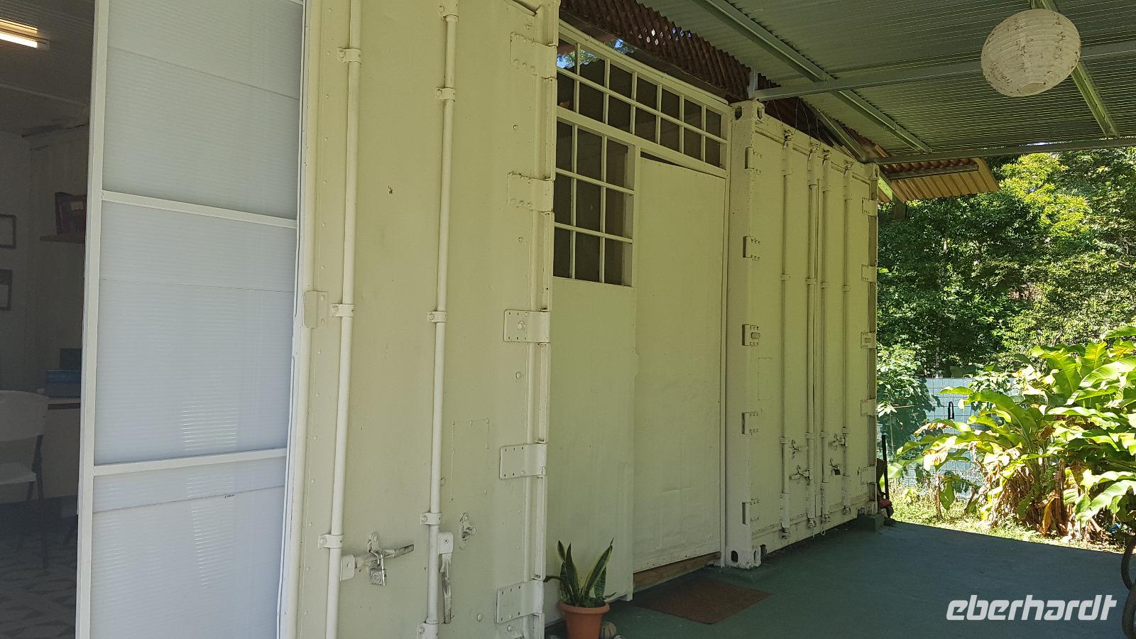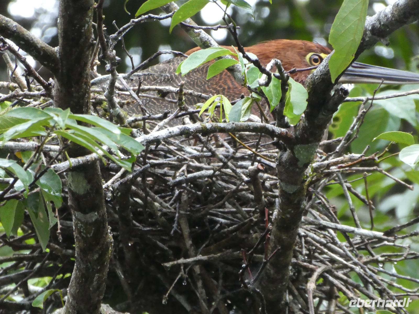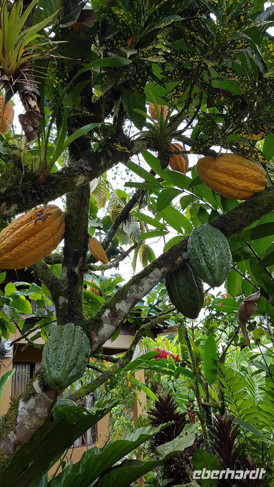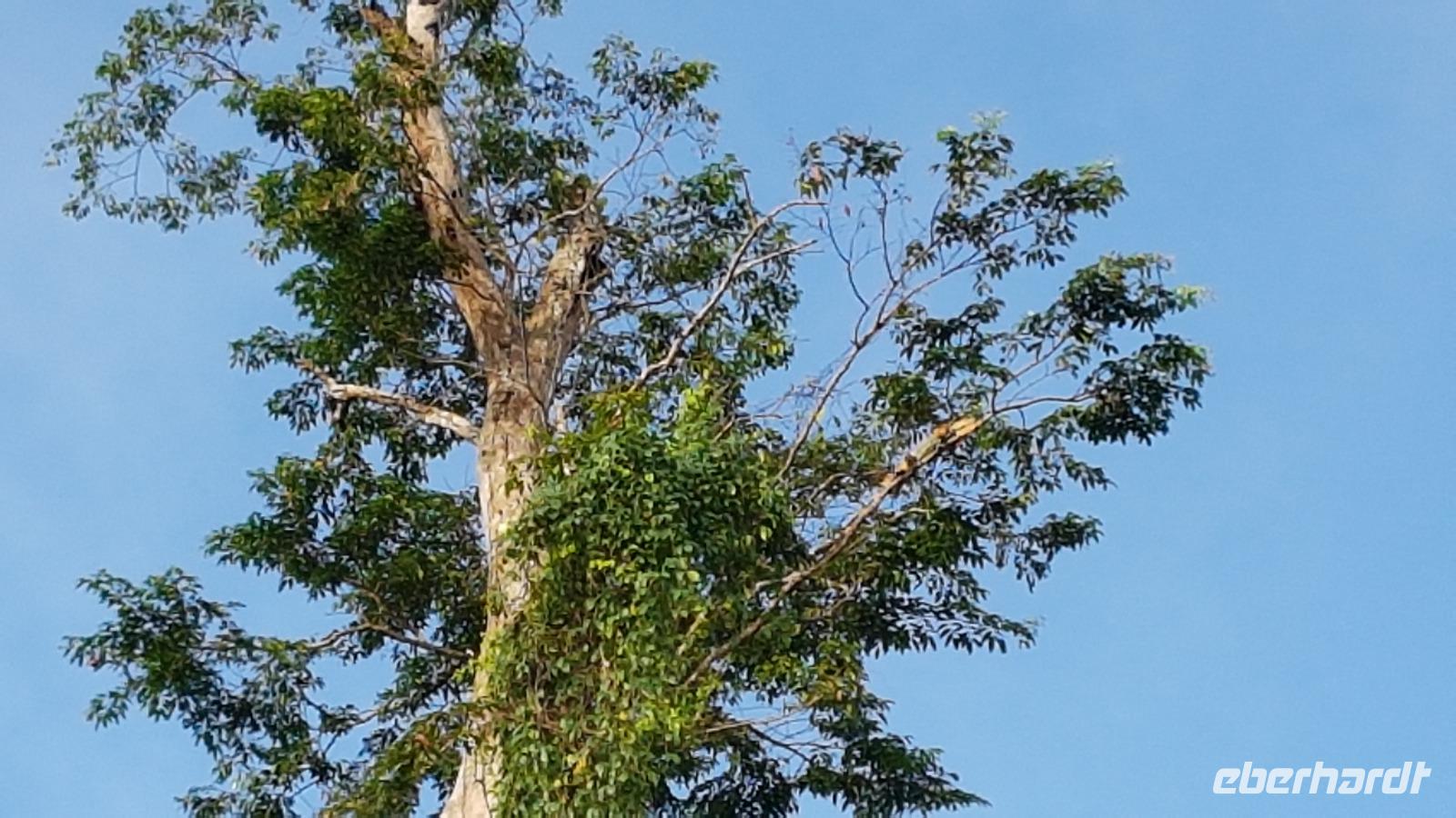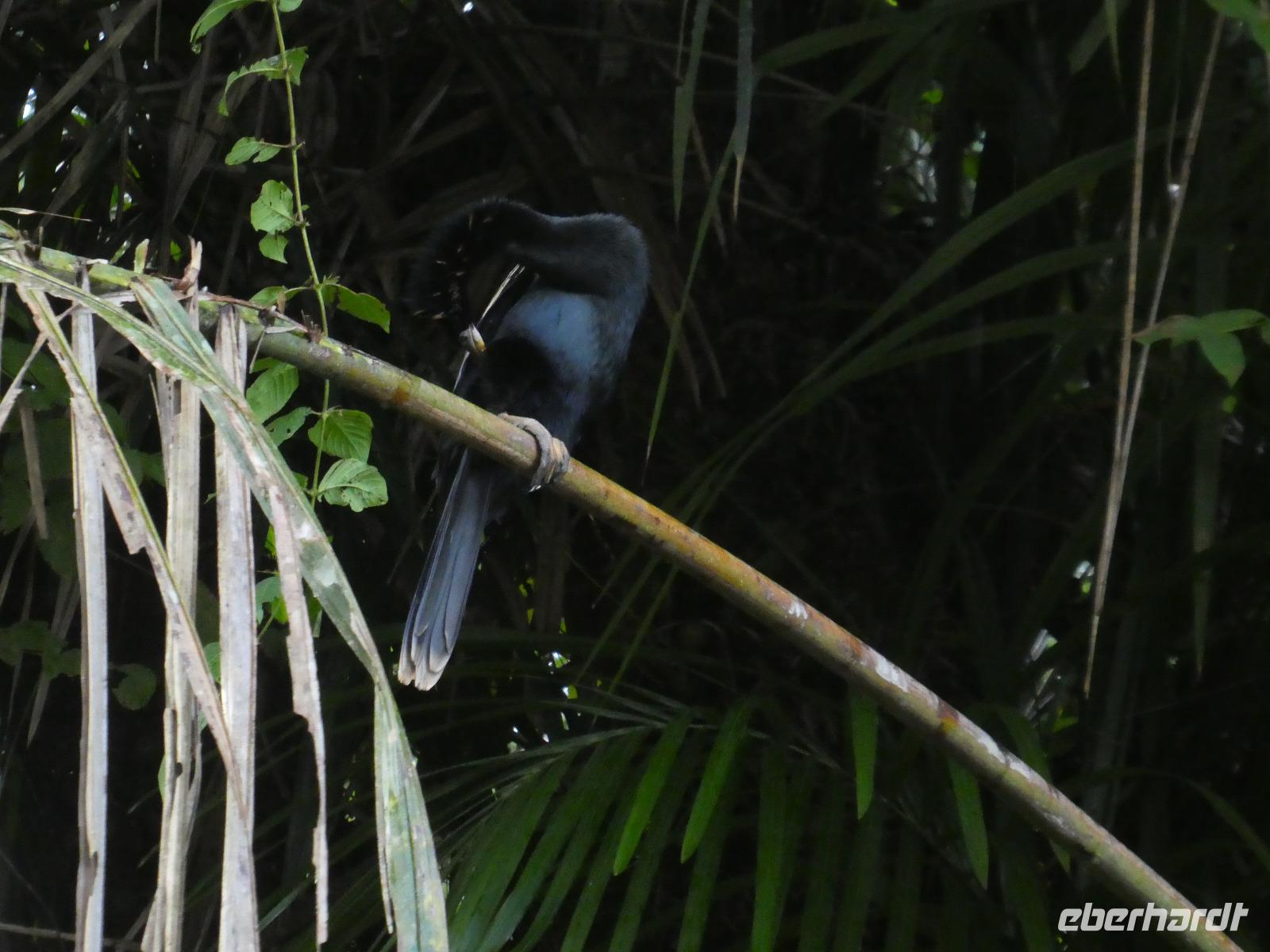 Mit einem frühen Morgenkaffee im Bauch starteten wir 6 Uhr zu unserer ersten Bootsfahrt, eingehüllt in unsere Regencaps. Wir fuhren mit Bootsführer Augusto entlang der Wasserkanäle und er sowie Nico spürten für uns die Tiere auf. Besonders spektakulär waren 5 Fledermäuse, die unter einem abgestorbenen Stamm hingen. Aber auch Leguane, Basilisken, Tukane, Schlangenhalsvögel, verschiedene Reiher und ein Marmorreiher Jungvogel im Nest waren u.a. zu beobachten. Nico "erntete" eine lange Frucht vom Provisionsbaum, schnitt sie an und Hokus pokus entfaltete sich eine tolle Blüte daraus. Kurz nach 8 Uhr waren wir zurück in der Lodge und frühstückten erst einmal. Wenig später gings dann schon weiter mit einer Kajaktour, bei der wir für die Fortbewegung selber sorgen mussten. Wir nahmen 3 Einer Kajaks und 2 grosse Boote und los ging es bei Regen. Diesmal stand die sportliche Fortbewegung im Vordergrund, dennoch entdeckten wir auch weitere Tiere. Am naturbelassenen Strand, der den Schildkröten abends und nachts vorbehalten ist, gingen wir kurz an Land und Nico berichtete über die vielen Schildkrötenarten, die hierher zur Eierablage kommen. Am Abend nahmen dann auch 3 Singles unserer Gruppe an der Schildkrötentour teil und konnten ein grosses Weibchen bei der Eierablage beobachten. Wir aber stiegen wieder in unsere Kajaks und paddelten zurück zur Lodge.