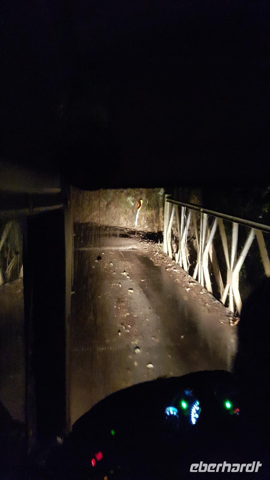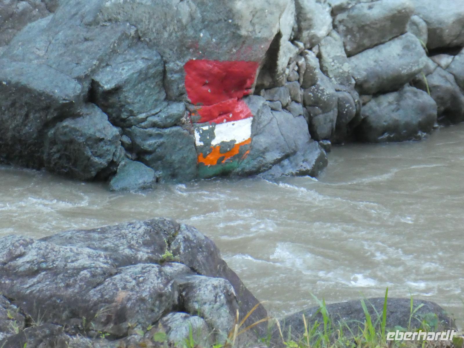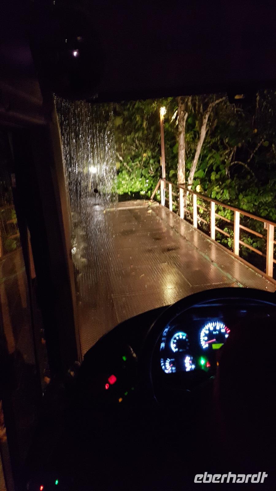 Der Blick zum Fluss verriet nichts gutes, denn der Pegel war beim abendlichen Regen stark gestiegen und lag im gefährlichen roten Bereich.