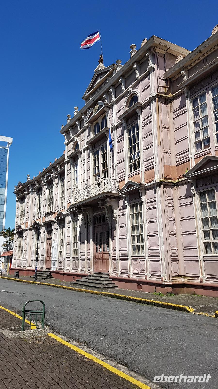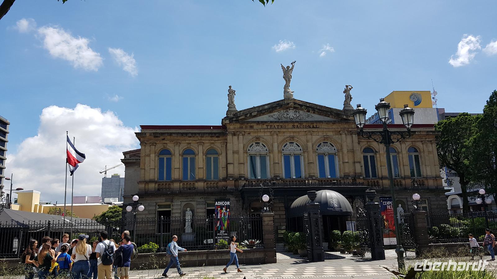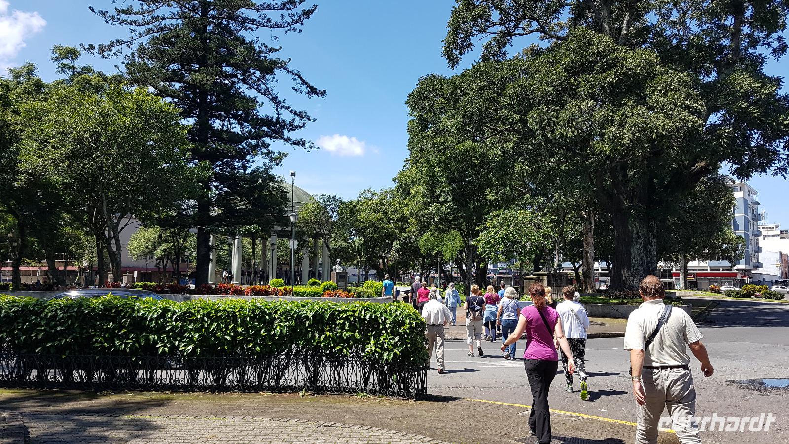 Wir hatten wieder einen Geburtstag zu feiern mit einem Kuchen, einer Kerze und einem Ständchen. Dann wurden unsere Koffer in den Bus geladen und wir fuhren zur Stadtbesichtigung. Unsere Route führte entlang des zentralen Parkes mit vielen Spielplätzen und Sporteinrichtungen, weiter vorbei am Fussballstadion, wo auch Konzerte und kulturelle Veranstaltungen stattfinden, zum ehemaligen Tower des Flughafens, wo sich heute das Kunstmuseum befindet und am Platz der Demokratie stiegen wir aus und gingen weiter zu Fuss. Am Platz der Demokratie liegt das alte historische Gebäude, in dem heute das Nationalmuseum untergebracht ist, sowie das Jademuseum und das noch im Bau befindliche neue Parlamentsgebäude. Zu Fuss liefen wir weiter zum Park der Spanier, zum ganz aus Metall bestehenden rosa Haus und weiter zum Morazan Park, wo einst die Kloake San Joses war. Durch Gassen und Strassen kamen wir zum Platz der Kulturen, wo sich im Untergeschoss das Goldmuseum und nebenan das Traditions Gran Hotel Costa Rica befindet. An den Platz grenzt auch das Nationaltheater, welches 1897 eröffnet wurde und auch heute noch der Stolz vieler Costaricaner ist. Dort holte uns Truman wieder ab und gemeinsam fuhren wir zum Flughafen. Dort hiess es dann endgültig Abschied zu nehmen.