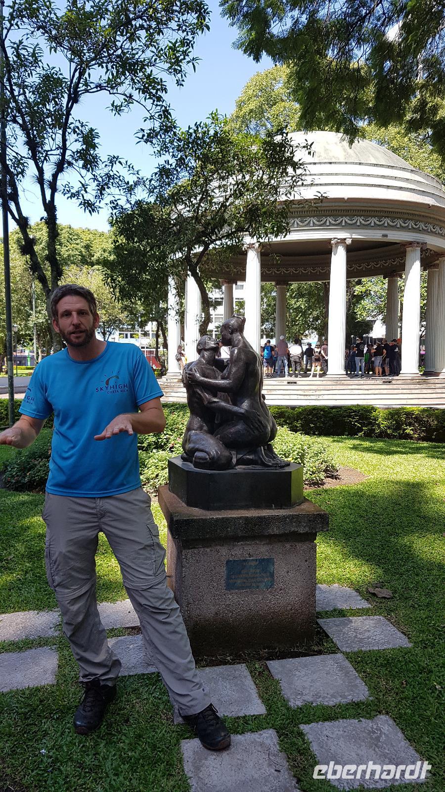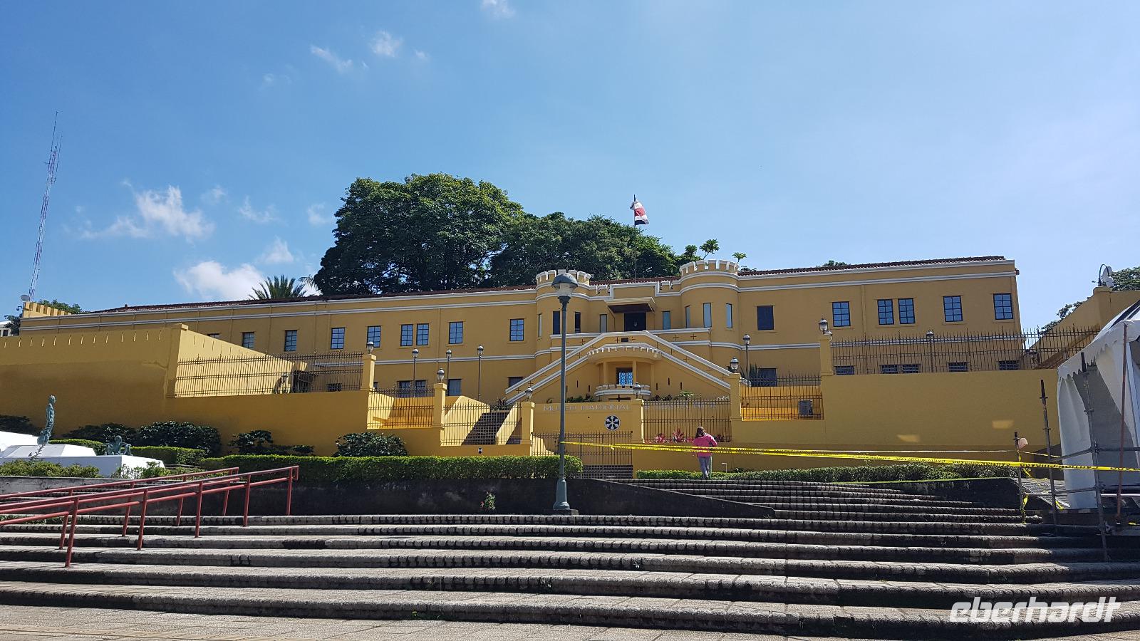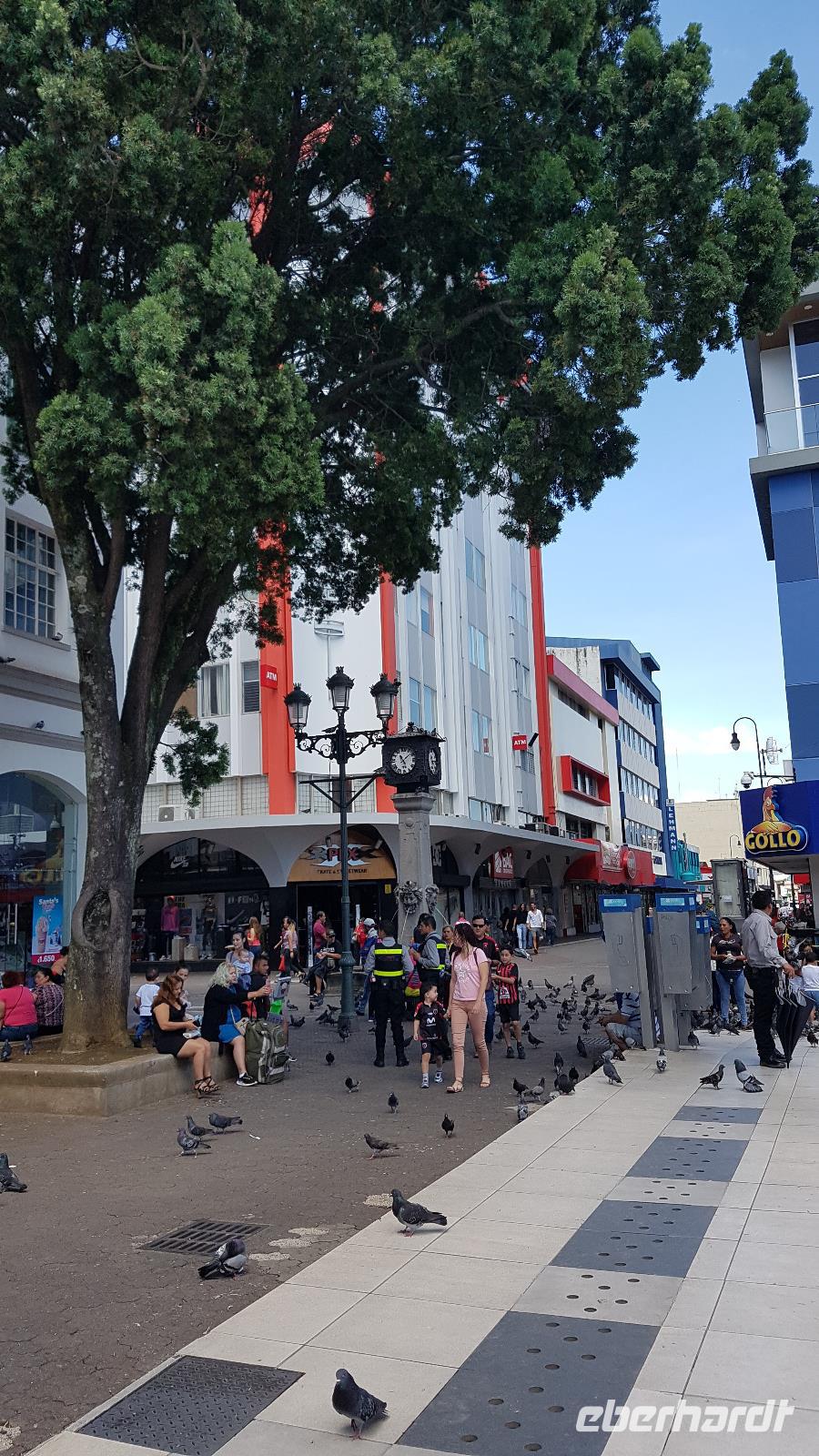 Wir hatten wieder einen Geburtstag zu feiern mit einem Kuchen, einer Kerze und einem Ständchen. Dann wurden unsere Koffer in den Bus geladen und wir fuhren zur Stadtbesichtigung. Unsere Route führte entlang des zentralen Parkes mit vielen Spielplätzen und Sporteinrichtungen, weiter vorbei am Fussballstadion, wo auch Konzerte und kulturelle Veranstaltungen stattfinden, zum ehemaligen Tower des Flughafens, wo sich heute das Kunstmuseum befindet und am Platz der Demokratie stiegen wir aus und gingen weiter zu Fuss. Am Platz der Demokratie liegt das alte historische Gebäude, in dem heute das Nationalmuseum untergebracht ist, sowie das Jademuseum und das noch im Bau befindliche neue Parlamentsgebäude. Zu Fuss liefen wir weiter zum Park der Spanier, zum ganz aus Metall bestehenden rosa Haus und weiter zum Morazan Park, wo einst die Kloake San Joses war. Durch Gassen und Strassen kamen wir zum Platz der Kulturen, wo sich im Untergeschoss das Goldmuseum und nebenan das Traditions Gran Hotel Costa Rica befindet. An den Platz grenzt auch das Nationaltheater, welches 1897 eröffnet wurde und auch heute noch der Stolz vieler Costaricaner ist. Dort holte uns Truman wieder ab und gemeinsam fuhren wir zum Flughafen. Dort hiess es dann endgültig Abschied zu nehmen.