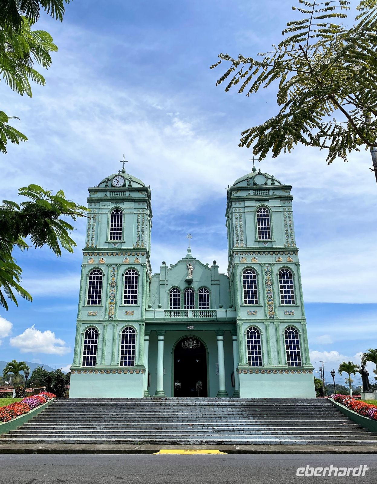 Auf den zweiten Blick entpuppt sich San José für uns jedoch als lebhafte Großstadt mit quirligen Märkten, viktorianischen Häusern und eindrucksvollen Bauten aus der Zeit des Kaffeebooms. Bei unserem Spaziergang zeigt uns Nico herrliche Parkanlagen, Plätze mit lateinamerikanischem Flair und die ein oder andere interessante Sehenswürdigkeit – wie das Teatro Nacional, Costa Ricas Nationaltheater und das schönste historische Gebäude der Stadt; das Historische Postamt; das Nationalmuseum, welches in einem prächtigen Gebäude untergebracht ist; den Plaza de la Cultura an dem die wichtigen Straßen der Stadt zusammenlaufen; die Escuela Buenaventura Corrales, eine historische Grundschule aus dem Jahr 1896 und zu guter Letzt den Mercado Central, der größte Markt in San José. Hier werden an über 200 Ständen Obst und Gemüse, Fleisch, Fisch und Gewürze verkauft – ein Erlebnis für unsere Nasen. Mit dem Duft San Josés in der Nase heißt es dann aber tatsächlich Abschied nehmen. Unsere Reise neigt sich hier und jetzt dem Ende und was uns noch bleibt ist der gemeinsame Weg mit Beto und Nico zum Flughafen. Der Abschied fällt schwer und doch müssen wir gehen, denn unser Flugzeug wartet nicht. Und so sitzen wir am Abend in unserem Flieger zurück nach Frankfurt und werden ganz wehmütig, als wir ein letztes Mal einen Blick aus der Luft auf dieses Traumland erhaschen können.
