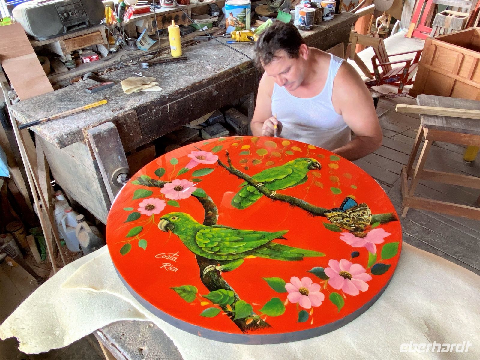 Unser Tag startet, wie Nico es versprochen hat, für einige von uns mitten in der Nacht, denn dank einer Zeitverschiebung von -8 Stunden sind wir bereits früh am Morgen putzmunter. Natürlich darf bei einem gelungenen Start in den Tag ein reichhaltiges Frühstück nicht fehlen. In Costa Rica bedeutet das Reis und Bohnen und ganz viel frisches Obst. Klingt komisch, ist aber unglaublich lecker und ein absolutes Muss. Mit vollem Magen verlassen wir unser Hotel in San José heute schon wieder und machen uns auf zu unserem ersten großen Highlight dieser Reise - Monteverde, der berühmte und artenreiche Nebelwald. Auf unserem Weg dorthin überraschte Reiseleiter Nico uns mit einem Stopp in der farbenfrohsten Stadt Costa Rica’s - Sarchí. Hier ist einfach alles in knalligen, geometrischen Mustern bemalt. Von der Kirche bis zu den Straßenschildern ziehen sich die farbenfrohen Verzierungen durch die ganze Stadt. Denn Sarchí ist Costa Ricas berühmtes Zentrum des Kunsthandwerks und vor allem die Heimat des größten Ochsenkarrens der Welt. In Costa Rica kennt sie jeder, sie sind das Symbol der costa-ricanischen Arbeiter und längst zum inoffiziellen Nationalsouvenir des Landes geworden: die Carretas, bunt bemalte Ochsenkarren. Die Costa-Ricaner waren stolz auf ihre Carretas und hatten den Ehrgeiz entwickelt, die Karren durch Farben und wertvolles Holz noch schöner und stabiler zu gestalten. So wurden die Carretas schließlich zum heutigen Symbol für die costa-ricanische Arbeit, ihre Friedfertigkeit und auch für ihre Demokratie. 1988 wurden sie vom damaligen Präsidenten sogar offiziell zum nationalen Symbol und 2005 von der UNESCO zum Weltkulturerbe erklärt! Einmal hier haben wir es uns natürlich nicht nehmen lassen eine typischen Carretas-Werkstatt zu besuchen. Mit diesen tollen Eindrücken setzen wir unseren Weg über die Panamericana fort und erreichen am Nachmittag unser schön gelegenes Hotel. Zum Abschluss dieses Tages unternehmen wir noch eine kleine Wanderung zusammen, auf der wir einen ersten Eindruck über Costa Rica’s Artenvielfalt bekommen.