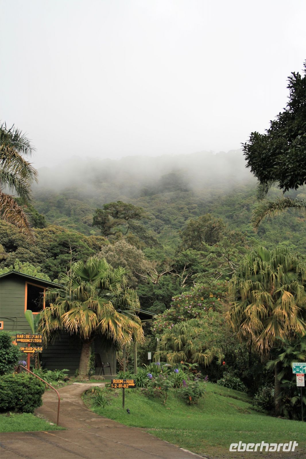 Zurück am Bus werden wir schon von Beto freudig erwartet. Unsere Weiterfahrt zur Savegre Lodge, unserer heutigen Unterkunft, verlief dann über viele Serpentinen hinauf zum Cerro de la Muerte: der Berg des Todes. Der Cerro de la Muerto ist in Costa Rica der höchste Punkt, der mit einem Auto, oder in unserem Fall mit dem Kleinbus, zu erreichen liegt. Er ist mit 3.454 Metern zugleich der höchste Punkt der Panamericana. Da es schon dunkel ist, bekommen wir davon aber nur wenig mit. Und zum Glück dann auch, von der äußerst schmalen Straße die uns hinunter ins Savegre-Tal zu unserer bisher wohl schönsten Lodge bringt. Ruhig am Talende ist sie gelegen, umgeben von Bergen und Bergwald, und mit einem mit viel Liebe geschmackvoll und durchdacht angelegtem Garten. Einfach malerisch.