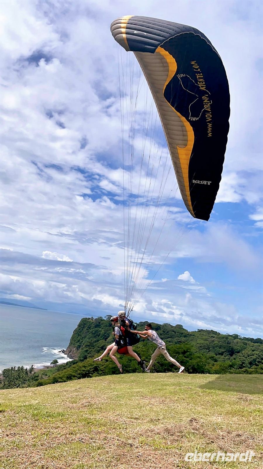 Heute geht es hoch hinaus. Zumindest für die ganz Mutigen unter uns, denn sie wollen sich Costa Rica gerne bei einem Gleitschirmflug aus der Luft anschauen. Das nächste große Highlight auf unserer Reise führte uns heute aus der kühlen Bergwelt hinunter an die feuchtwarme Pazifikküste, wo wir schon von Jean-Claude, einem unserer Piloten, erwartet werden. Auf der Fahrt dorthin erzählt und erklärt uns Nico eine Menge über den Weg der ihn nach Costa Rica gebracht hat und die damit verbundene und sehr nervenaufreibende Bürokratie. Dabei wird uns bewusst, dass selbst die oft verfluchte deutsche Bürokratie gar nicht so schlecht abschneidet und lernen Sie tatsächlich etwas zu schätzen. Dann aber ist es endlich so weit. Etwas aufgeregt erreichen wir am späten Vormittag unseren Abflugplatz, einen kleinen Hang mit einem fantastischen Blick über den Pazifik. Nun heißt es mutig sein, sich die Helme aufsetzen und nach einer ausführlichen Einweisung geht es für die ersten auch schon los. Die Bedingungen heute sind ideal und so kommen wir in den besonderen Genuss entlang der costa-ricanische Pazifikküste zu schweben und unseren Blick über die Weite des Meeres schweifen zu lassen. Ein ganz besonderes Erlebnis, denn dort oben ist es hauptsächlich still, man hört nur den Wind im Schirm. Genauso elegant und majestätisch das Kreisen der Paraglieder aussieht, wenn man sie vom Boden aussieht, fühlt es sich auch an, wenn man oben in der Luft schwebt.