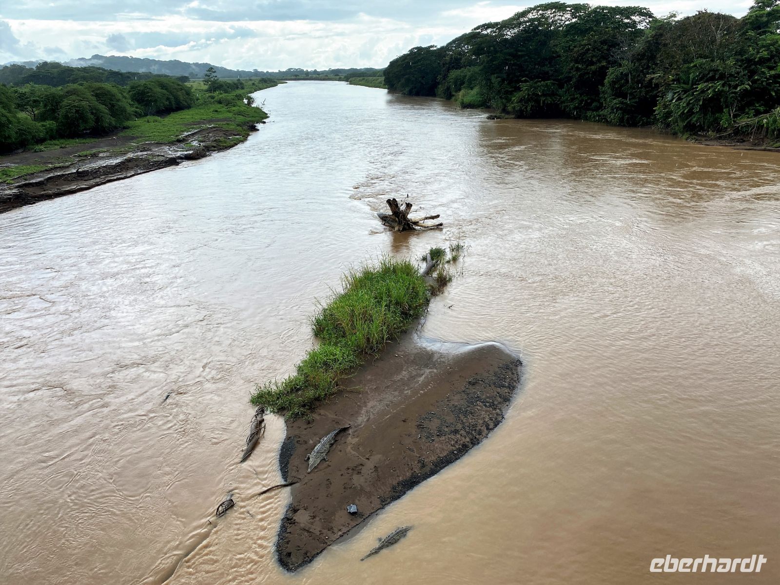 Neuer Tag, neue Stromschnellen. Noch einmal schmeißen wir uns heute in unsere Rafting-Kluft, nichtsahnend was uns heute erwartet. Zurück im Boot auf dem Strom werden wir heute richtig gefordert, mit unserer ganzen Muskelkraft. Es geht durch Gischt, Lärmgegurgel und eine feuchte Hölle, alles bei tropischen Temperaturen. Bloß immer auf dem Bootsrand sitzend die Balance halten. Glücklicherweise wechselt die Tour ab mit ruhigen Passagen, in denen wir die Landschaft wahrnehmen können. Vögel begleiten uns, Reiher stehen stumm auf Felsen, starren aufs Wasser und nehmen uns gar nicht wahr. Neben dem Fluss ist die Dschungel-Umgebung das Spektakuläre an dieser Tour. Um die Mittagszeit laufen wir auf eine Sandbank, mit Absicht. Es knirscht unter dem Kiel. Wir steigen aus und suchen uns am Ufer ein ruhiges Plätzchen. Hier kommen unsere Guides auch schon wieder in Aktion. Kurzerhand wird eines der Raftingboote zur Küche umfunktioniert, in der uns ein kleines Picknick zubereitet wird, welches wir uns nach der ersten Anstrengung wohl redlich verdient haben. Gestärkt geht es dann auch schon weiter auf die letzte Etappe, die noch einmal unsere volle Konzentration fordert. Kurz vor unserem Ziel passieren wir eine enge Schlucht: links und rechts bestehen die vertikalen Wände aus grüner Vegetation. Der Pacuare River rauscht an dieser Stelle durch hängende Gärten und oberhalb der Felswände beobachten uns Brüllaffen, die in diesem Moment ihrem Namen alle Ehre machen - ein ohrenbetäubender Hall dringt durch die ganze Schlucht.