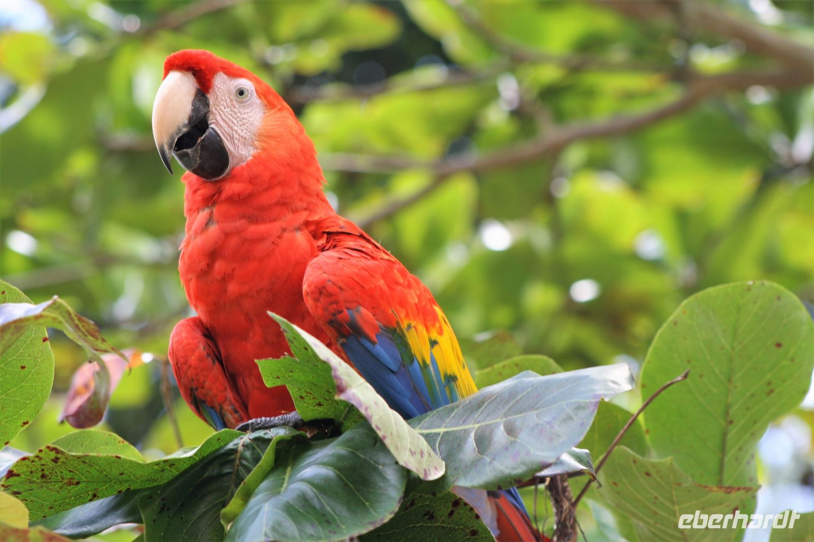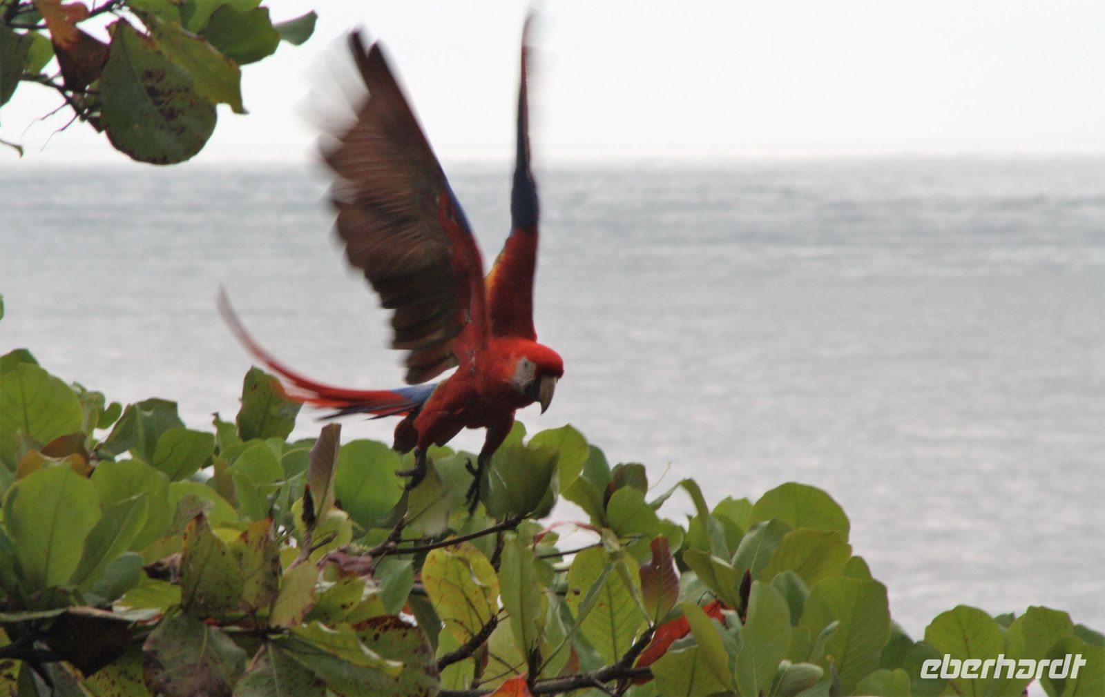 Ganz beeindruckt von diesem Erlebnis geht es am Nachmittag entlang der Pazifikküste weiter Richtung Quepos. Und wenn wir dachten, nun kann am heutigen Tag ja eigentlich nicht mehr viel passieren, dann haben wir natürlich nicht mit Nico gerechnet. Kurzerhand stehen wir auch schon auf einer Brücke, die über den Tárcoles-Fluss führt, und beobachten die gigantischen, amerikanischen Spitzkrokodile im Flussbett beim Nichtstun. Doch damit nicht genug. Kurze Zeit später halten wir erneut – Nico hat etwas in den Bäumen entlang der Straße entdeckt. Mit unseren Kameras in der Hand steigen wir aus und suchen in den Baumkronen danach. Und tatsächlich werden wir ziemlich schnell fündig – über unseren Köpfen tummeln sich hellrote Aras, einer der größten Papageien der Welt. Natürlich haben wir die anmutigen Vögel schon in Zoos gesehen, aber in freier Wildbahn war es etwas ganz Besonderes und ein unvergessliches Erlebnis für die Tierliebhaber unter uns. Dann setzten wir unsere Fahrt fort, vorbei an kilometerlangen Palmenplantagen, erreichten wir am späten Nachmittag unser Hotel mit direkter Strandlage. Durch die angenehmen Temperaturen hier auch am Abend konnten wir diesen Tag im offenen Restaurant am Strand gemütlich ausklingen lassen.