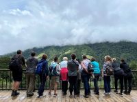 Unser heutiger Tag startete mit einem großen Abenteuer in den Nebelwäldern Monteverdes. Ziplining steht auf dem Programm und Nebelwälder sind doch sicher der perfekte Ort, um in schwindelerregender Höhe über und durch die Baumkronen des Regenwaldes zu gleiten. Nach einer ausführlichen Einweisung geht es auch schon los. 13 Ziplines unterschiedlichster Länger liegen vor uns, die längste von ihnen ist über 1.000 Meter und das Gefühl, über die nebelverhangenen Wälder zu schweben, einfach fantastisch. Die ganz Mutigen unter uns gingen sogar noch einen Schritt weiter und stürzen sich wagemutig in den Tarzan Swing. Nach diesem unvergesslichen Erlebnis folgte gleich darauf schon das nächste. Nicht ganz so extrem aber keineswegs unspektakulärer machten wir uns nun zu einem Spaziergang der besonderen Art auf - es ging über lauter Hängebrücken, die auf Baumwipfel Höhe über dem Urwald aufgebaut sind. Die Perspektive war nun auf einmal ganz anders. Sehr eindrücklich. Hier in diesem dichten Urwald sah man nicht viele Tiere, hört aber doch viele verschiedene Vogelstimmen. Der Wald war auch aus dieser Sicht absolut sehenswert und eine Augenweide. Nach diesen vielen Erlebnissen am Vormittag knurrte uns dann aber mächtig der Magen. Unser Nico wusste das natürlich und entführte uns in ein Restaurant mit spektakulärem Blick auf den Vulkan Arenal. Es reichte kaum für ein Foto, als der Nebel vom Tal heraufzog. Uns störte das wenig, waren wir doch dabei uns unser Mittagessen schmecken zu lassen. Gestärkt fuhren wir, mit einem kleinen Zwischenstopp am Supermarkt, zurück zum Hotel, um uns etwas auszuruhen und die Eindrücke des Tages sacken zu lassen, bevor es am Abend in das einheimische Lokal „Lucia“ zum Abendessen ging, wo wir uns mit typisch costa-ricanischen Mahlzeiten verwöhnen ließen.