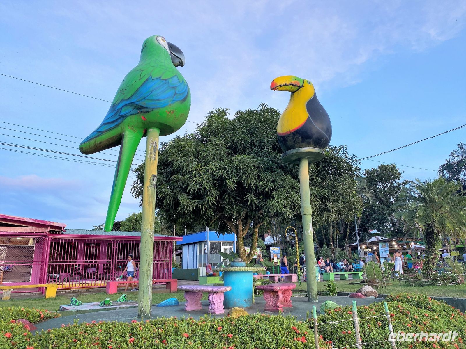 Drei Tage vor unserem Rückflug wird uns langsam bewusst, dass sich unsere Zeit in Costa Rica langsam dem Ende nähert. Doch diesen Gedanken versuchen wir beiseite zu schieben, denn vor uns liegt noch ein weiteres großes Highlight – Puerto Viejo. Mehr Karibikfeeling geht eigentlich nicht. Und so verlassen wir am Vormittag unser Abenteuer im schönen Tortuguero Nationalpark um in Richtung südliche Karibikküste aufzubrechen. Heute machen wir Strecke und verbringen den Tag zunächst einmal wieder im Boot, um den Nationalpark zu verlassen. Beim Bootsanleger angekommen wartet unser Beto schon auf uns, den wir nun 2 Tage nicht gesehen haben. Unser Weg führt uns weiter über die wohl einzige Straße in Richtung Süden, zumindest lässt der Verkehr es so vermuten. Das alles trübt unsere Stimmung aber nicht, gehört es doch irgendwie auch zur Vielfalt Costa Ricas dazu. Auf halber Strecke legen wir eine Mittagspause ein, bevor es weiter Richtung Puerto Limón geht, dem Haupthafen der Karibischen Küste. Von hier bis nach Puerto Viejo lässt der Schwerlastverkehr und das geschäftige Treiben immer weiter nach, mit jedem weiteren Kilometer wird es entspannter. Bald darauf erreichen wir unser Ziel - Puerto Viejo. Es liegt am südöstlichsten Zipfel des Landes, nur wenige Kilometer vor der Grenze zu Panama. Und schnell merken wir, dass die Uhren hier anders ticken. Denn hier gibt es nichts außer Gelassenheit, Reggae Musik & Karibik Feeling. Wenn das nicht der perfekte Ort für uns ist, um die letzten Tage Costa Rica in vollen Zügen zu genießen.