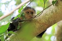 Von “Liebe auf den ersten Blick” schwärmen viele mit Recht, wenn Sie von ihren Eindrücken im kleinsten Nationalpark von Costa Rica berichten. Davon mussten wir uns selbst überzeugen. Und so führte uns unser Weg am Vormittag entlang des Strandes zum Eingang des Nationalparks Manuel Antonio. Kurz darauf tauchten wir ein in eine Welt aus Regenwald, Stränden, Hügeln und Korallenriffen – diese magische Kombination gibt es wohl nur hier. Wir wandeln auf befestigten Wegen zusammen mit Nico durch den Park. Immer wieder halten wir an und erfreuen uns an der Vielfalt der Flora und Fauna, die wir hier auf kleinstem Raum zusammen mit Nico entdecken. Nicht ohne Grund zählt Manuel Antonio wohl zu einem der artenreichsten Gebiete der Welt. Neben Schlangen, Waschbären, Schmetterlingen, Krabben und Schildkröten, entdecken wir aber auch eine Menge Kapuzineräffchen und ein Dreifingerfaultier.