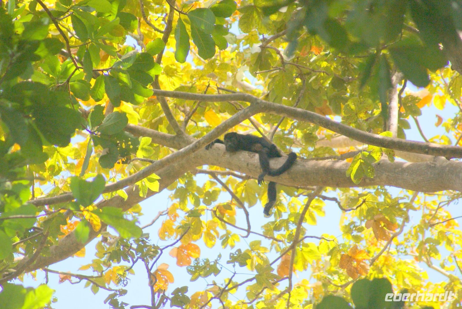 Es regnet die ganze Nacht und wir schlafen mehr oder weniger gut damit. Pünktlich um 05.30 Uhr erfolgt der Weckruf-Herr Brüllaffe gibt sich die Ehre und so manche von uns sitzen prompt senkrecht im Bett. Ein letztes schönes Frühstück in der Idylle mit vielen schönen Vögeln und sogar einem Nasenbären, der sich auch ein Stück Obst holt, welches eigentlich für die Vögel bereitsteht. Nach unserer Abfahrt zeigt uns Nico nochmals die Landkarte Costa Ricas und erklärt uns, von wo der Wind übers Land zieht und wo die Wettergrenze ist. Er sollte Recht behalten. Wir umrunden den Arenalsee und halten bei Selva Paraiso, von wo es einen besonders schönen Blick auf die Landschaft mit See um uns herum gibt. Nachdem wir das Gebirge passiert haben, erfolgt eine prompte Wetteränderung und Bilderbuchwetter nimmt uns in Empfang. Einfach herrlich, blauer Himmel, weite Flächen, ein komplett anderes Landschaftsbild. Die Strecke bis zum ersten Programmpunkt nutzt Nico, um uns einiges über das hiesige Bildungssystem zu berichten. Schön zu hören, dass auch hier die Schule für die Kinder kostenlos ist und es im Grunde jedem Kind ermöglicht wird, am Unterricht teilzunehmen. Vormittags erreichen wir dann pünktlich unseren Treffpunkt, von wo aus unsere Rafting Tour startet. Verteilt auf zwei Boote und den örtlichen Guides Carlos und Roberto stürzen wir uns in die Fluten. Der Beginn ist etwas abenteuerlich, jedoch schon kurz danach ist der Fluss eher seicht. So vergehen schöne zwei Stunden zu Wasser, in denen wir einige schöne Tiere sehen, darunter: Iguanas, Fischadler, Fledermäuse, Reiher, Geier, Krokodile und natürlich unsere Freunde-die Brüllaffen. Eine herrliche Atmosphäre mitten in der Natur und umso schöner, dass unsere Guides uns das Paddeln abnehmen und wir einfach nur genießen können. Noch ein schmackhaftes Mittagessen und weiter geht’s Richtung Samara, welches auf der Nicoya Halbinsel liegt. Unsere Unterkunft für die nächsten drei Nächte erreichen wir am späten Nachmittag, von wo aus wir abends nochmals zu einem leckeren Abendessen aufbrechen. Im Restaurant Gusto Beach erleben wir ein besonders schönes Ambiente direkt am Meer mit Feuershow und Live Musik. Ein toller Ausklang am Pazifik.