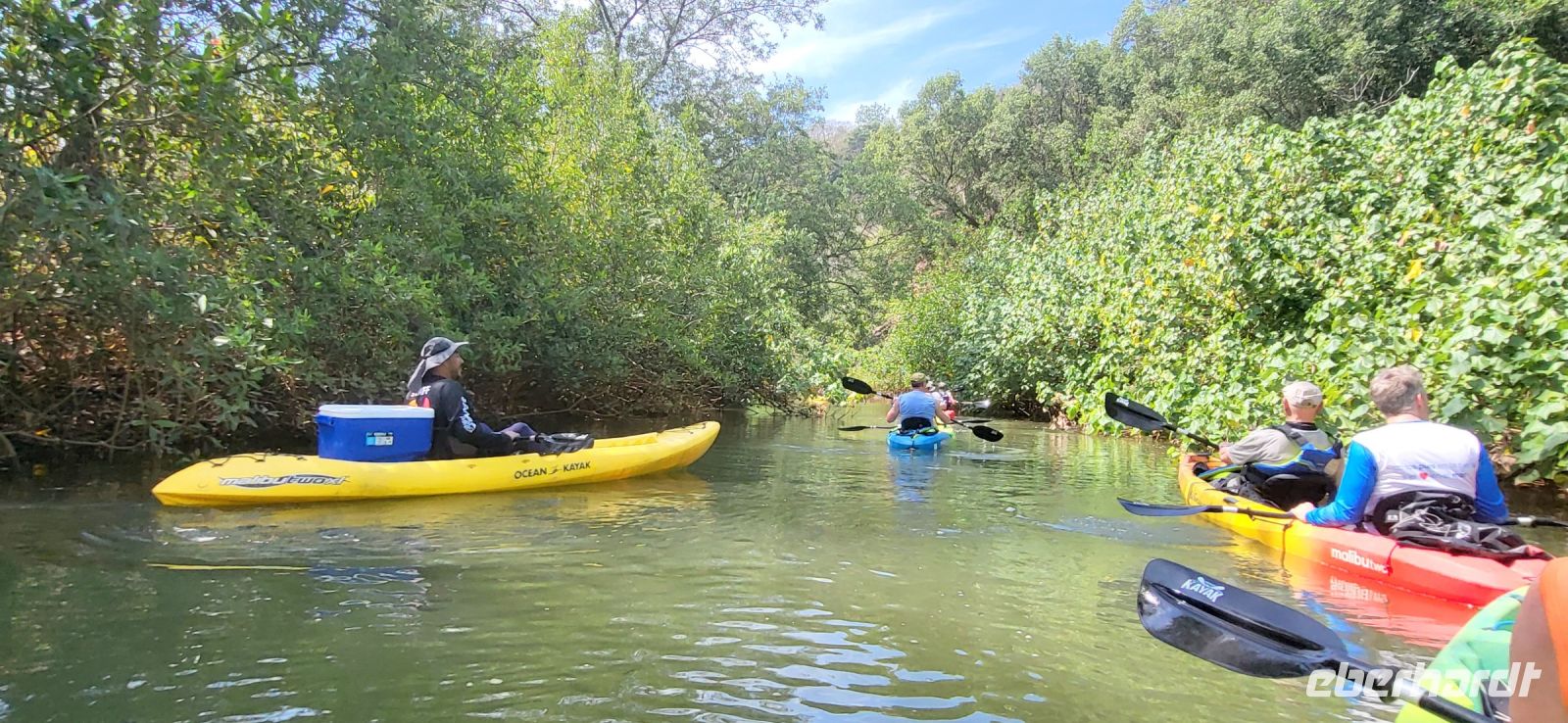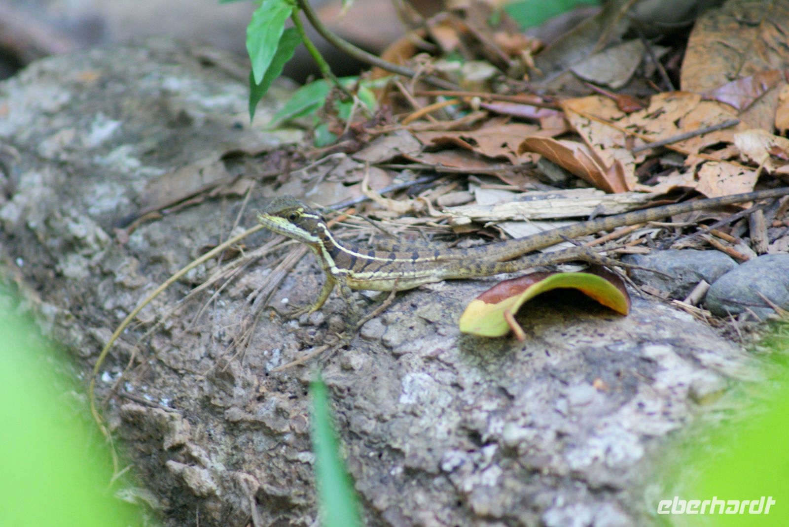 Auf dem Weg zum Frühstück, entdecken wir Tapirspuren in unserer Anlage. Der nächtliche Besucher blieb somit nicht unentdeckt und erklärt so manches Geräusch, welches von uns zur späten Stunde wahrgenommen wurde. Unser heutiger Ausflug führt uns zu Canyo Island, die Insel, die wir bereits am Horizont von unserer Lodge aus erblicken. Das Boot exklusiv für uns alleine und unsere nette Bootscrew mit Vincent und Team sorgt zunächst per Schwimmweste für unsere Sicherheit und schon geht’s los, damit wir heute die Unterwasserwelt Costa Ricas erkunden können. Zunächst sichten wir jedoch schon springende Thunfische oder wie unsere Bootscrew scherzhaft meint: leckeres Sushi! Vor Canyo Island angekommen, empfängt uns die Nationalparkbehörde per Boot und hier werden wir durch unseren Guide zunächst registriert. Danach dürfen wir uns in die Fluten stürzen. Mit Flossen, Taucherbrille, Schnorchel und der obligatorischen Schwimmweste ausgerüstet, begeben wir uns ins Wasser und somit in die wunderbare Unterwasserwelt. Wir sehen neben vielen bunten Fischen beeindruckende Rochen, die vermeintlich durch das Wasser fliegen, dazu wunderschöne Meeresschildkröten und auch einige Haie, die unter uns schwimmen oder am Meeresgrund eine Ruhepause einlegen. Auch wir benötigen eine Pause, zu der wir an Land der Canyo Insel fahren. Frisches Obst in Form von Ananas und Wassermelone, dazu Kekse, werden uns gereicht. Ein Spaziergang durch den Wald führt uns zu einem Aussichtspunkt, wo man nochmals einen herrlichen Blick über das Meer und den Strand hat. Auf dem Weg treffen wir erneut auf kleinere Echsen, die neugierig am Wegesrand verharren. Bei der zweiten Schnorchelrunde schließt sich ein Teil unserer Gruppe an, wir sehen etliche bunte Fische von klein bis groß und nochmals einige Meeresschildkröten. Der andere Teil der Gruppe bleibt am Strand und genießt von dort aus. Per Speedboot geht es zurück in unsere schöne Lodge, wo bereits ein schmackhaftes Mittagessen auf uns wartet. Am Nachmittag zieht es so manchen mit Guide Nico per Kajak auf den Fluss und zum offenen Meer hinaus, die anderen genießen den die freien Stunden und lassen die Seele baumeln.