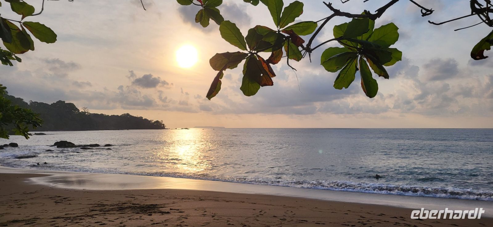 Wir genießen nochmals das tolle Frühstücksbuffet in der Monteverde Eco Lodge und begeben uns auf den Weg zurück zur Küste. Auf dem Weg ins Tal können wir erneut die unglaubliche Bergkulisse bestaunen. Wieder im Tal angekommen, fahren wir wieder ein Stück auf der weltberühmten Panamericana, die uns Richtung Manuel Antonio Nationalpark führt. Dieser ist der kleinste, aber auch berühmteste Nationalpark Costa Ricas, da dieser nicht nur viel Natur und Tiere, sondern auch eine idyllische Badebucht beinhaltet. Gegen Mittag erreichen wir diesen und begeben uns auf Wanderschaft. In den folgenden drei Stunden sehen wir zwei Faultiere hoch oben in der Baumkrone, einige Leguane am Wegesrand, Rehe, Agoutis und diverse Vögel. Die Affen machen sich heute leider rar, aber wir hoffen diese an anderer Stelle erneut anzutreffen. Am wunderschönen Pazifikstrand machen wir eine Pause und lassen die unwirkliche Szenerie auf uns wirken. Am Nachmittag erreichen wir dann die La Cusinga Lodge. Hierzu fahren wir nochmals durch den Urwald und sind plötzlich im Paradies angekommen. Ein magisches Ambiente und ein Blick von hier oben auf die vorliegende Bucht und den Pazifik, kurz danach beim Sonnenuntergang, lassen uns sprachlos zurück. So eine schöne Anlage sucht ihresgleichen. Dieser Aufenthalt mit den geschmackvollen Unterkünften mitten in der Natur wird uns noch lange in Erinnerung bleiben. Bereits von der Aussichtsveranda sehen wir zwei wunderschöne Tukane, die eine lautstarke Unterhaltung pflegen. Verpflegt werden wir hier bei unserem gemeinsamen Abendessen vorzüglich und so könnten wir es hier noch Tage aushalten.