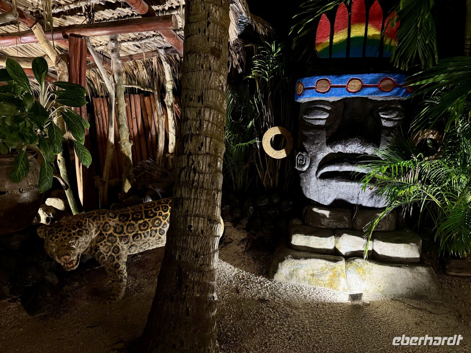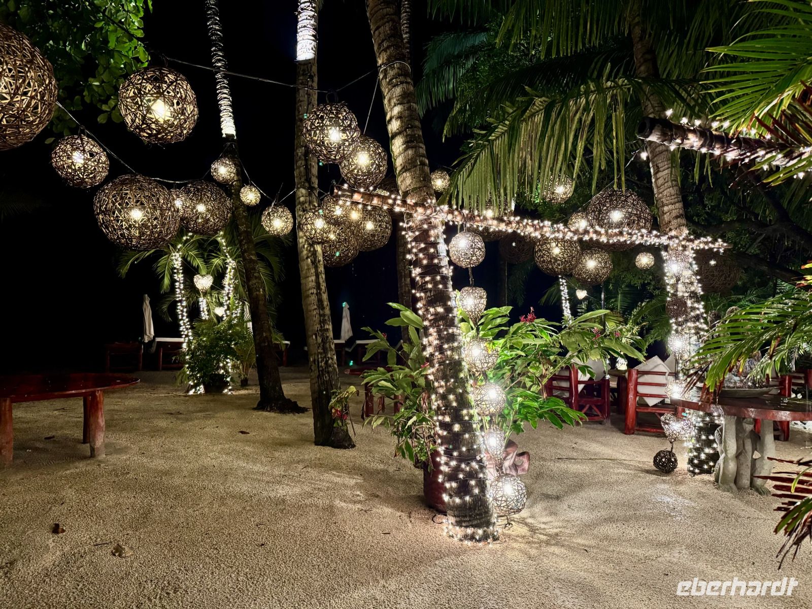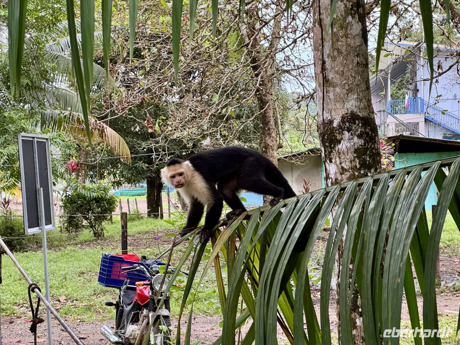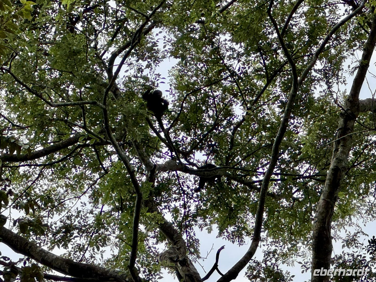 Auch am zweiten Morgen in Samara werden wir um 9:00 Uhr am Hotel abgeholt und hinten auf den bekannten Lkw verladen. Diesmal werden wir jedoch nicht zum Strand transferiert, sondern mitten im Wald abgesetzt. Es wird wohl ein Regenspaziergang werden. Inzwischen sind wir jedoch gut präpariert. Sowohl Sonnencreme als auch Regenschutz sind stets griffbereit. Unter einer Hütte suchen wir vorübergehend Schutz. Von oben beäugen uns neugierig die Langnasenfledermäuse. Kaum hat unser Guide Christopher mit seiner Einführung begonnen, lockt uns schon ein weiteres Tier mit einer langen Nase wieder ins Freie: ein Nasenbär. Genüsslich macht er sich über die Reste einer Ananas her und folgt uns sogar ein Stückchen, als wir schließlich in Richtung Aussichtspunkt aufbrechen. Christopher führt uns nun durch die historische Plantage. Unterwegs bekommen wir Erklärungen zur Entstehungsgeschichte des Reservats (es soll vorrangig als Wildtierkorridor dienen), zu einzelnen Pflanzen, zur historischen Bauweise, zu seinem Wildbienenprojekt und auch zu einigen Tierarten. Am Aussichtspunkt angekommen sehen wir allerdings … wenig bis gar nichts von der Bucht von Samara. Dazu ist das Wetter weiterhin zu schlecht, auch wenn der Regen nun kurzzeitig aufgehört hat. Der Nebel reißt zwar zwischendurch auf, sodass wir Strand, Meer, Inseln und auch das Riff einigermaßen gut sehen können. Da haben wir heute wirklich noch den besten Moment abgepasst, bevor das Wetter wieder umschlägt. Denselben Weg geht es wieder zurück zum Ausgangspunkt der Wanderung, wo nun auf UNS einige Scheiben Ananas und ein erfrischendes Getränk warten. Wir bedanken uns bei Christopher für den sehr interessanten Spaziergang und kehren zum Hotel zurück. Der Nachmittag bleibt tatsächlich halbwegs trocken, sodass sich für meine Gäste ein weiterer Spaziergang zum Strand anbietet. Gegen 16 Uhr funktioniert dann auch das Internet wieder, das seit der Nacht im ganzen Ort durch umgestürzte Bäume ausgefallen war. So kann ich an der kleinen Eisdiele doch noch zwei Kugeln Eis bezahlen, um mein Buchprojekt über die besten Eisdielen der Welt voranzutreiben. Den letzten Abend in Samara begehen wir abermals in einem Restaurant am Strand. Dafür haben Nico und ich diesmal ein Grillrestaurant ausgesucht, wo das Essen auf dem Rost über Holzkohle zubereitet wird.