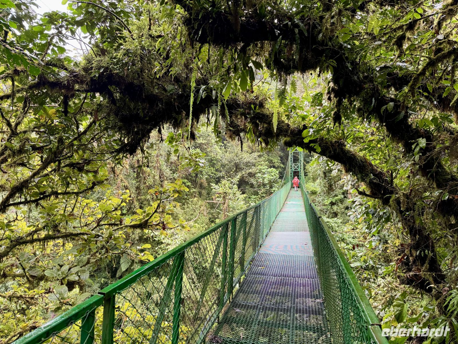 8. Reisetag (Donnerstag, 14. November 2024): Auf Hängebrücken durch den Nebelwald von Monteverde — Faultier–Auffangstation — Café Kolibri