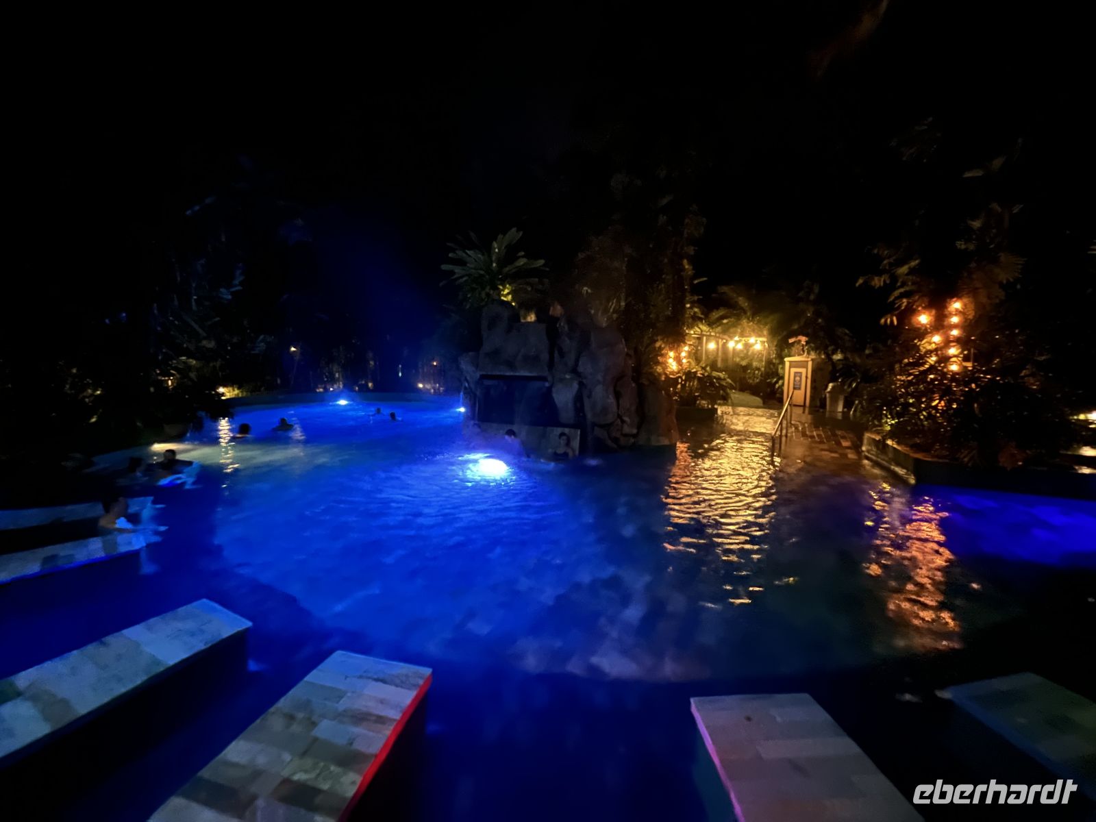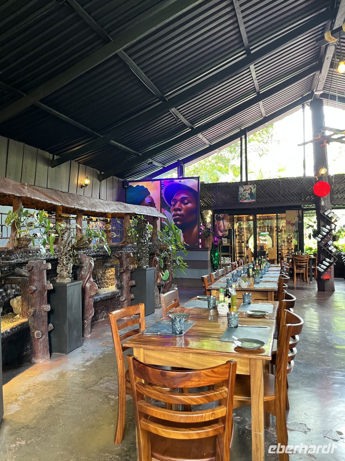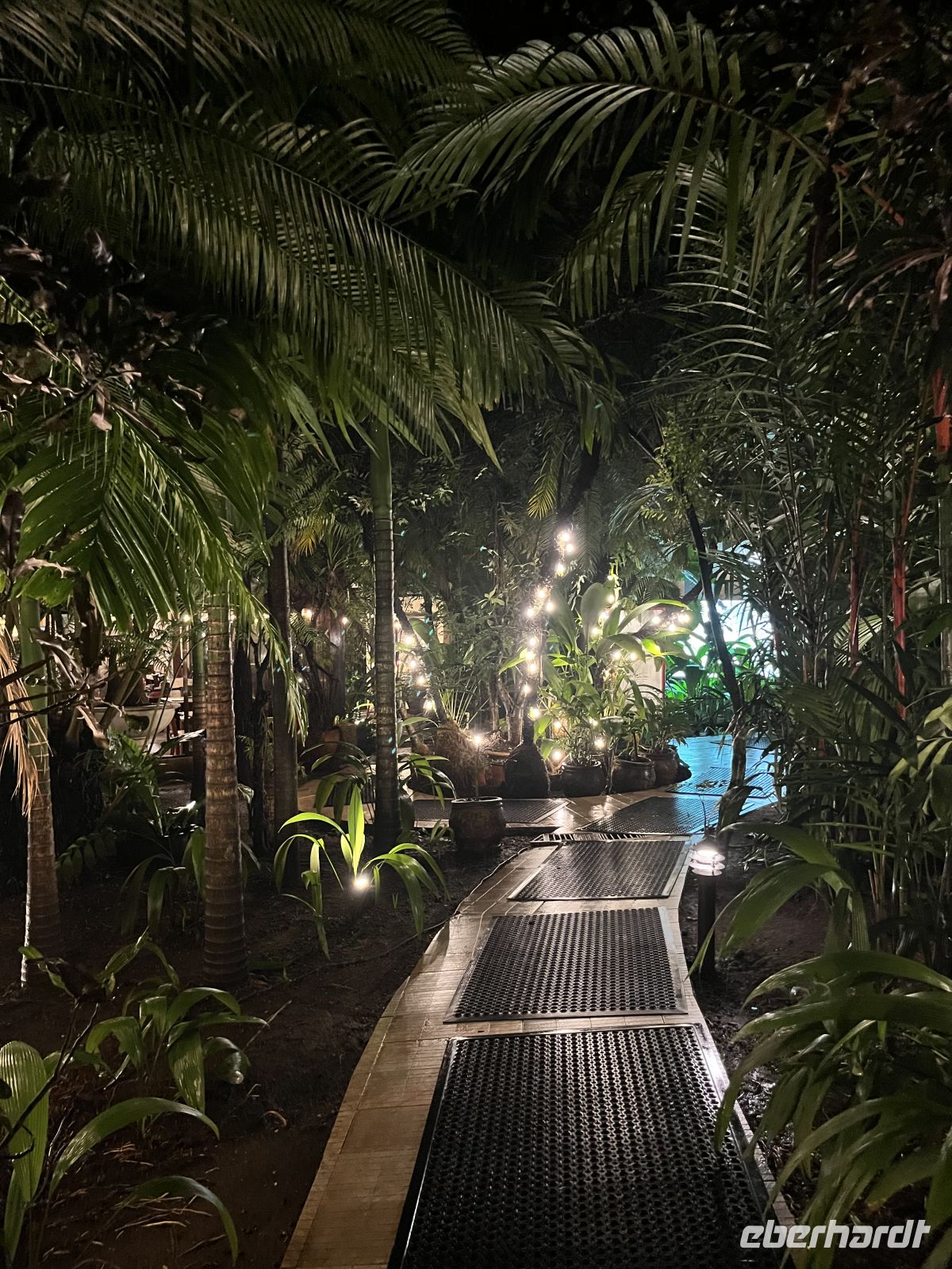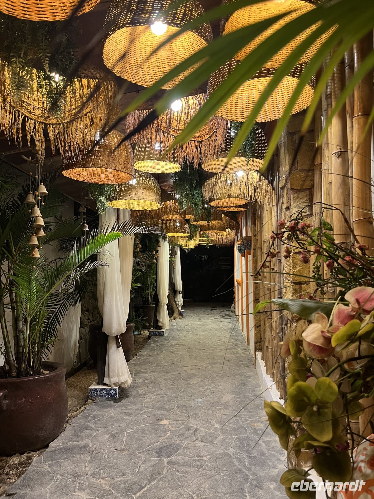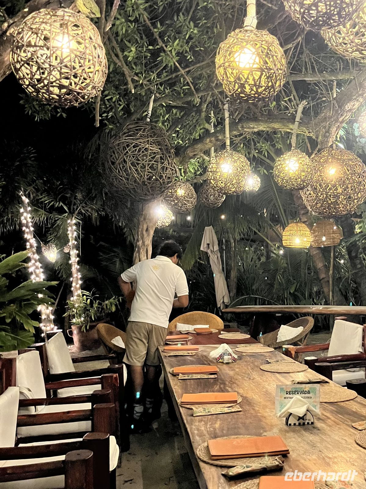 Abends besuchten wir zusammen das Lokal Loconda. Hier saßen wir an einer langen Tafel am Strand, unter beleuchteten Palmen mit Meeresrauschen.