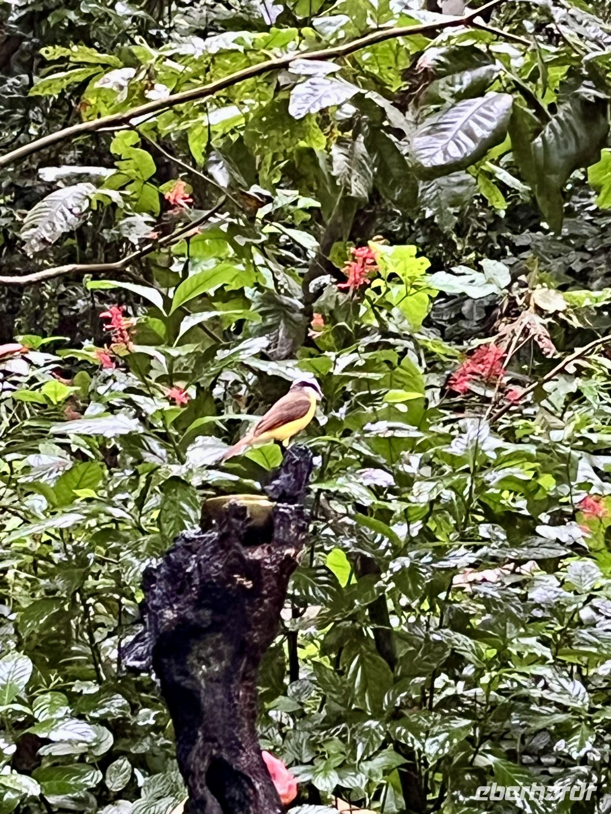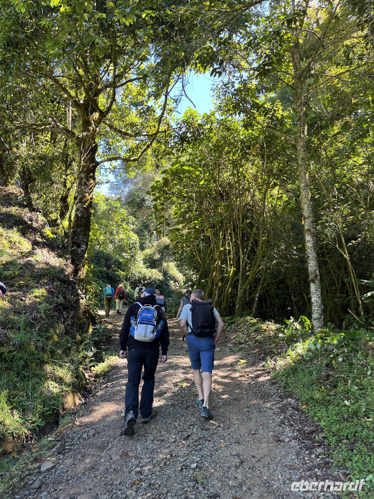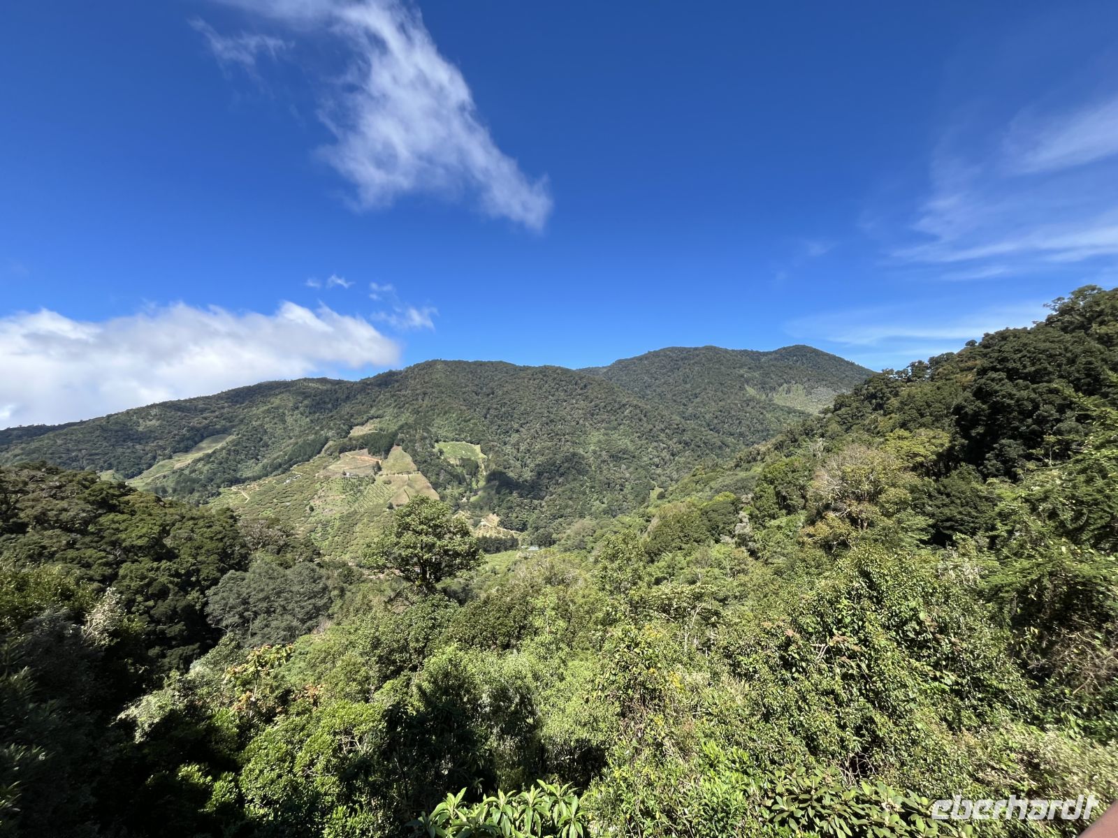 Wir starteten den Morgen sehr zeitig mit einer kleinen Kaffeerunde, um dann auf Pirsch für eine Sichtung des Quetzals zu gehen. Dazu fuhren wir zu einem Punkt im Savegre-Tal, wo es Sichtungen gab. Und tatsächlich gab es auch einen Quetzal im Baum sitzen, aber er war so gut im Grün versteckt, dass wir ihn nicht erblicken konnten. Daher probierten wir es an anderer Stelle und hier hatten wir Glück und konnten zwei Quetzal-Männchen in ihrer ganzen Pracht beobachten. Nun waren wir recht durchgefroren und hungrig, so dass wir zum Hotel für das Frühstück zurückkehrten. Am Vormittag starteten wir unsere Wanderung auf den Wegen des Hotels, und diese führten uns hinauf in die Eichenwälder. Wir hatten einen prächtigen Ausblick ins Savegre-Tal. Auch die vielen Moos bewachsenen Wegränder und Baumriesen begeisterten uns. Hier konnte nun jeder für sich entscheiden, ob er eine längere oder kürzere Variante wandern möchte.