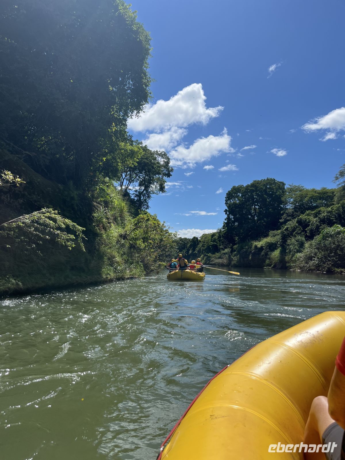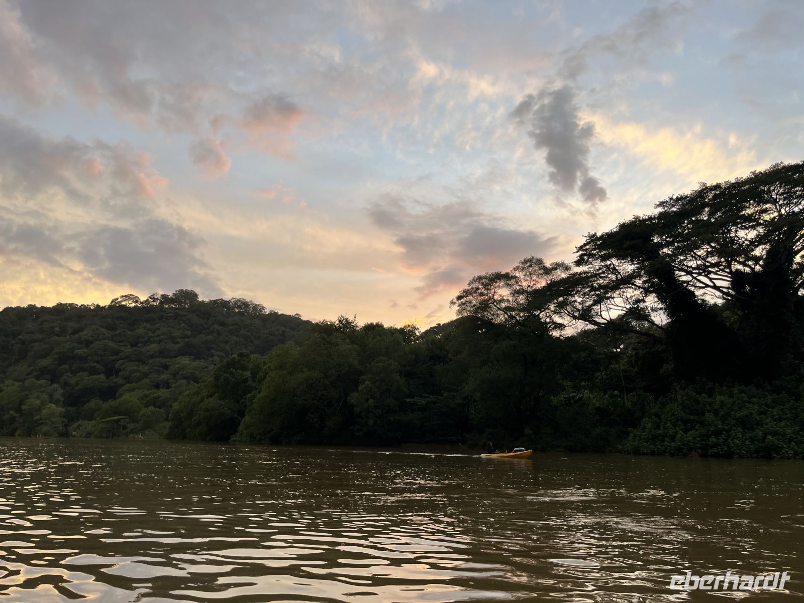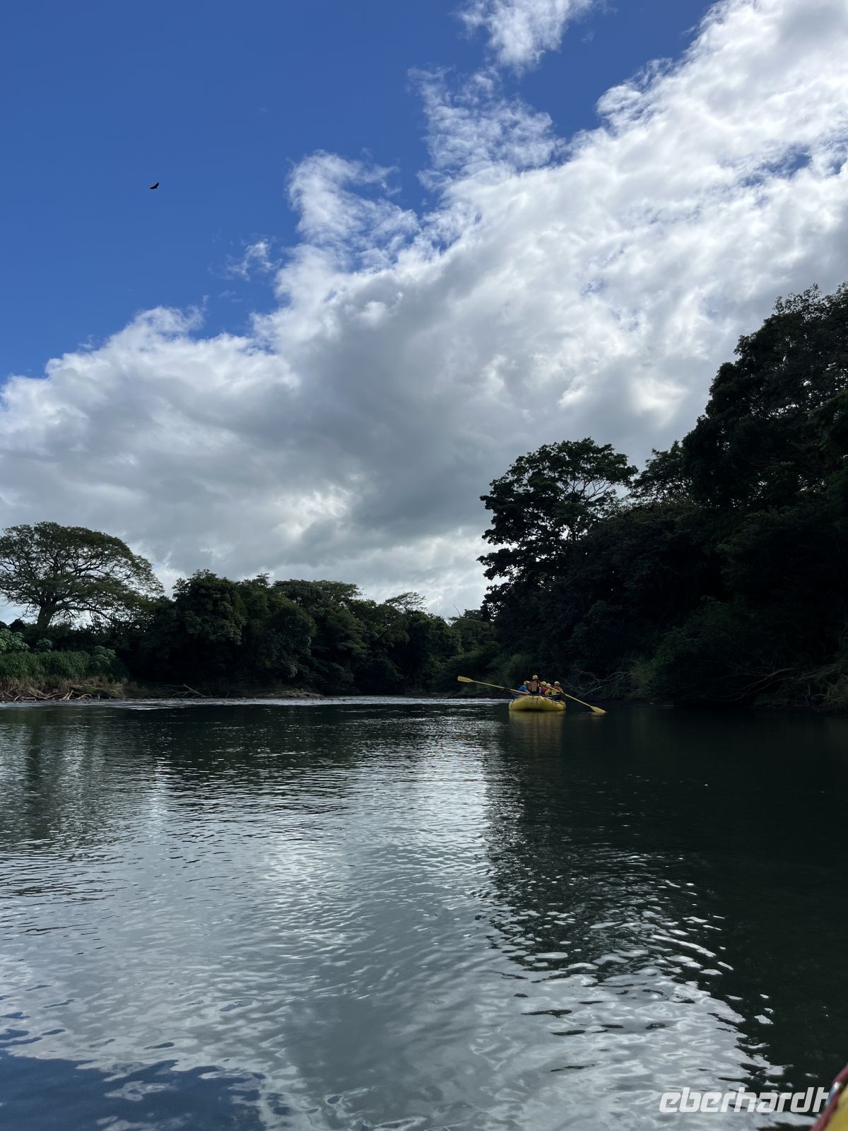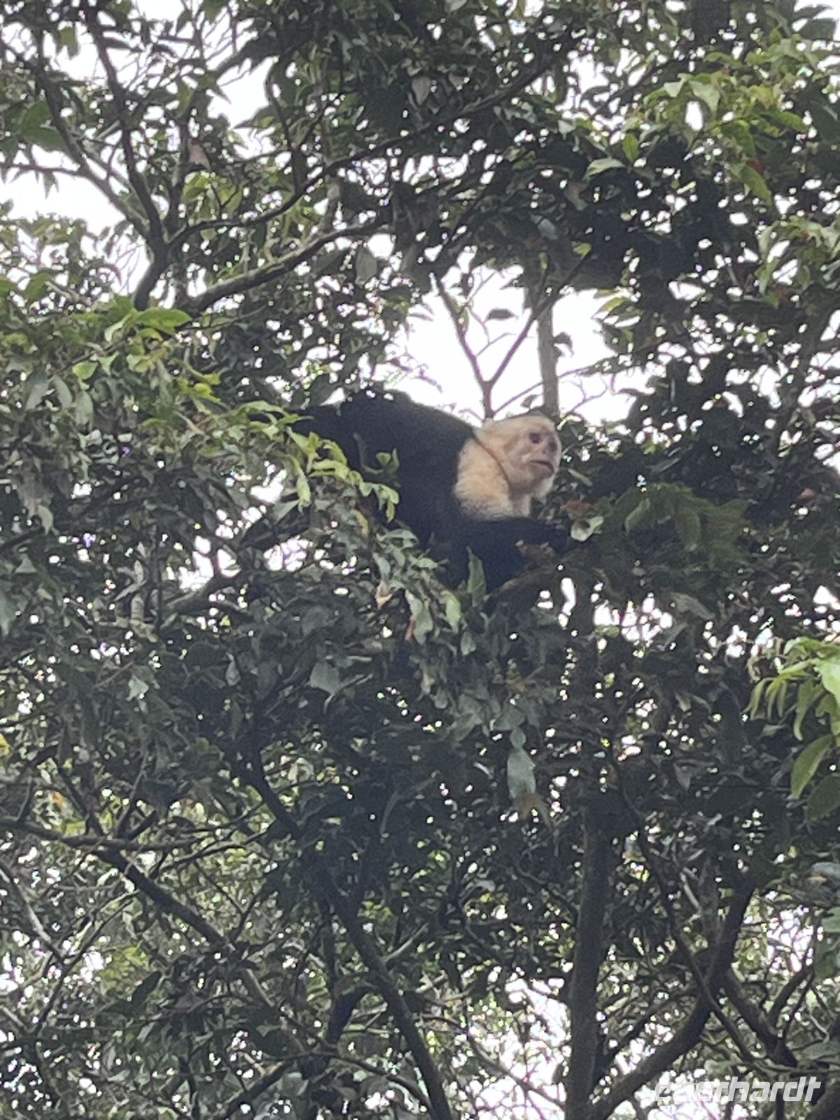 Bei strömenden Regen verabschiedeten wir uns vom immergrünen Regenwald und reisten entlang des Arenal Stausees. Dieser ist für 40 % der Energiegewinnung des Landes zuständig. Nach 2 Stunden Fahrt erreichten wir das Tiefland auf der pazifischen Seite. Der Regen stoppte und die Sonne kam raus. Hier stand eine entspannte Rafting Tour auf dem Fluss Tenorio auf dem Programm. Wir sahen schwarze Leguane, grüne Leguane, Graureiher, kleine Blau-Reiher, Krokodile, Langnasen-Fledermäuse und andere Vögel. Auf der Rückfahrt vom Endpunkt der Rafting Tour trafen wir einen Trupp Brüllaffen, circa 15 Tiere mit Männchen und Weibchen hoch oben in den Bäumen. Bei Sonne und Regen ging es nun weiter in Richtung Pazifikküste, wo wir abends ankamen. Hier checkten wir in das Belvedere Hotel ein, eine tropische Anlage mit Pool circa 7 Gehminuten vom Strand entfernt. Zum Abendessen kehrten wir in ein lokales Restaurant ein, um noch eine Kleinigkeit zu essen.