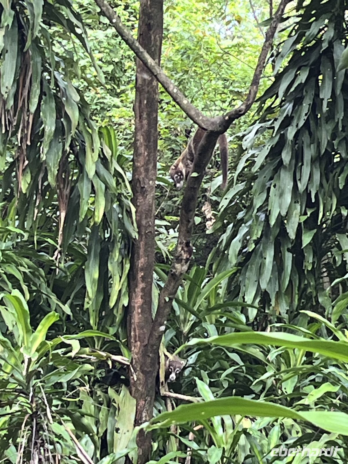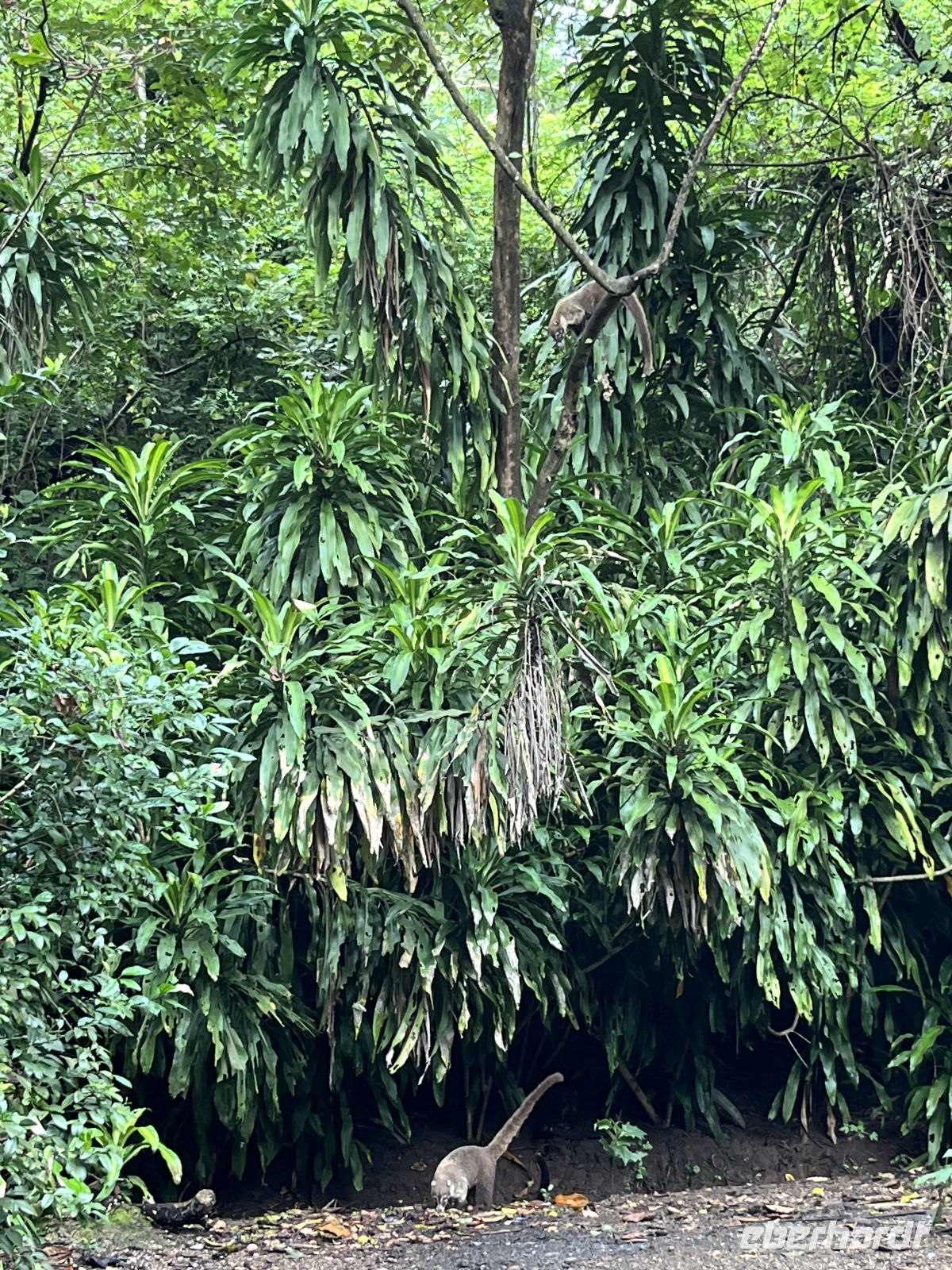 Zeitiges Aufstehen waren wir mittlerweile gewöhnt und begannen unseren Tag mit einem 5:30 Uhr Frühstück. Unser Guide Tony war auch schon da und versicherte uns, dass es ein guter Tag wird. Anschließend fuhren wir zum Corcovado Nationalpark zur La La Sirena Ranger Station. Höhepunkte waren bereits auf dem Hinweg: wir sahen Felsen, auf denen Braune Tölpel nisteten sowie eine Gruppe von Schlankdelfinen, die das Boot begleiteten. Am Strand absolvierten wir eine nasse Landung und wurden durch Nasenbären begrüßt. Mit und ohne Teleskop zeigte uns Tony viele Tiere groß und klein: Pekari (Nabelschweine), Spider Monkey, Mot Mot, Mexikanischer Ameisenbär, Aguti, Amerikanisches Krokodil, Brüllaffen, Wegebussard, Dreifinger-Faultier, Totenkopfäffchen und Terciopelo-Lanzenotter. Viele der Tiere sind hoch in den Bäumen und ohne Führer nur schwer zu sehen. Insgesamt wanderten wir circa 6 Kilometer auf guten Wegen mit teils matschigen Stellen rund um die Ranger-Station La Sirena. Hier gab es dann auch ein Mittagessen für uns. Auch die Rückfahrt barg noch eine Überraschung: direkt vor unserem Boot tauchte ein Buckelwal ab. Wir konnten Mutter und Kind kurz beobachten. Was für ein schöner Abschluss für einen gelungenen Tag!