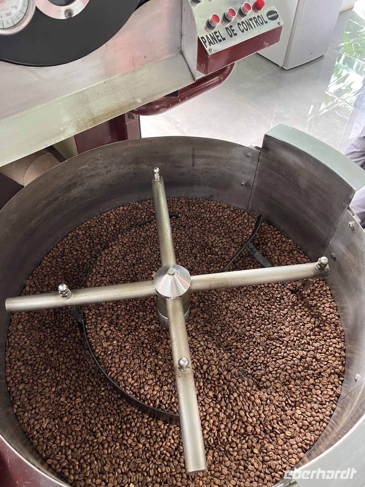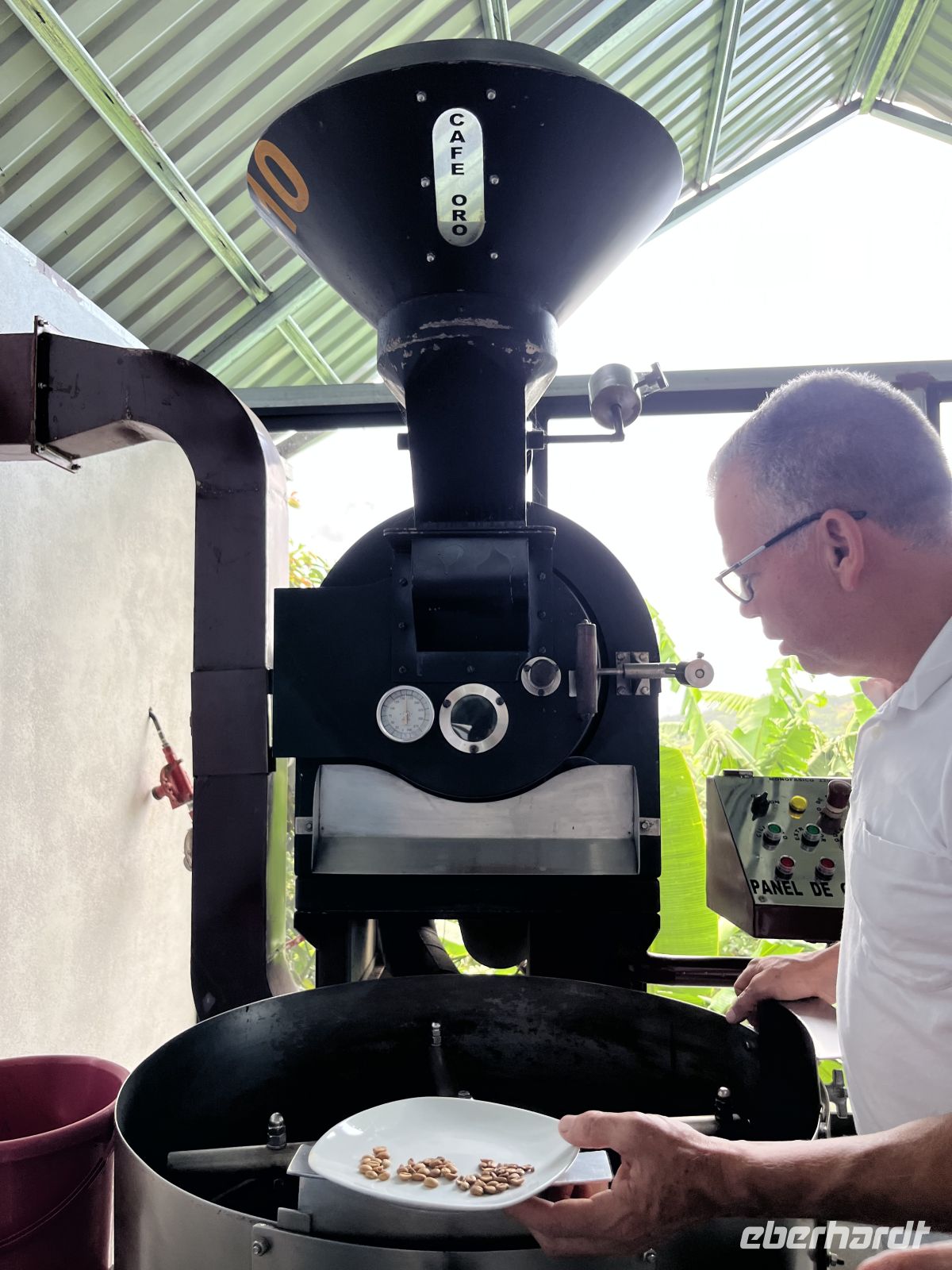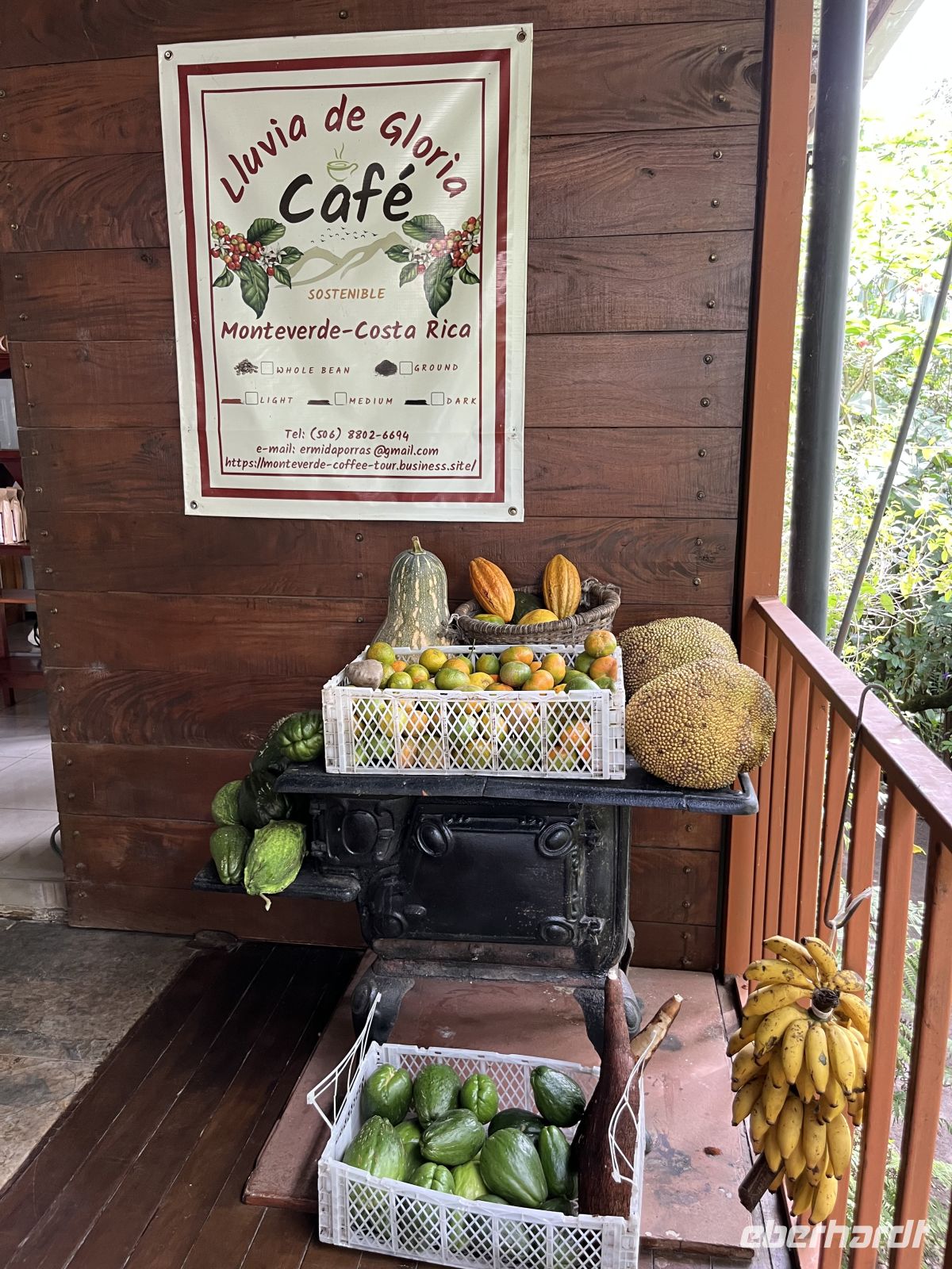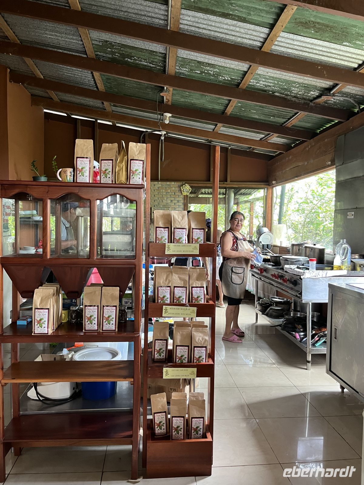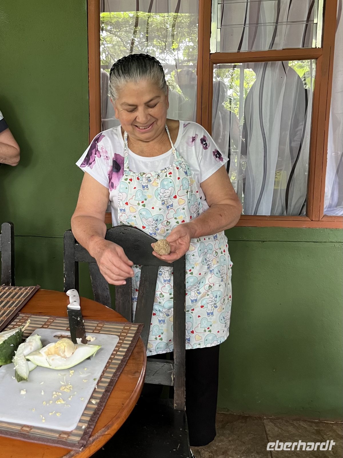 Am Morgen nahmen wir Abschied von Samará und traten unsere Reise in die Nebelwaldregion Monteverde an. Dabei reisten wir wieder über die Nicoya Halbinsel, über den Tempisque Fluss und ein kurzes Stück entlang der Panamericana. Kurz vor Mittag erreichen wir die Farm von Doña Hermida. Dort durften wir zunächst beim Kaffeerösten zusehen und genossen anschließend ein leckeres Mittagessen. Verschiedene Gemüse, typisch für Costa Rica, Reis und Bohnen, Hühnchen und Kochbananen mit Käse wurden serviert. Anschließend führte sie uns voller Esprit über ihre Farm und erklärte uns allerhand zu den gepflanzten Kräutern und Bäumen. Wir verkosteten frisch gepressten Zuckerrohrsaft. Sie gründete die Farm vor über 40 Uhr Jahren und nahm uns für ein kurzes Stück mit in ihre Welt - eine wirklich schöne Begegnung.