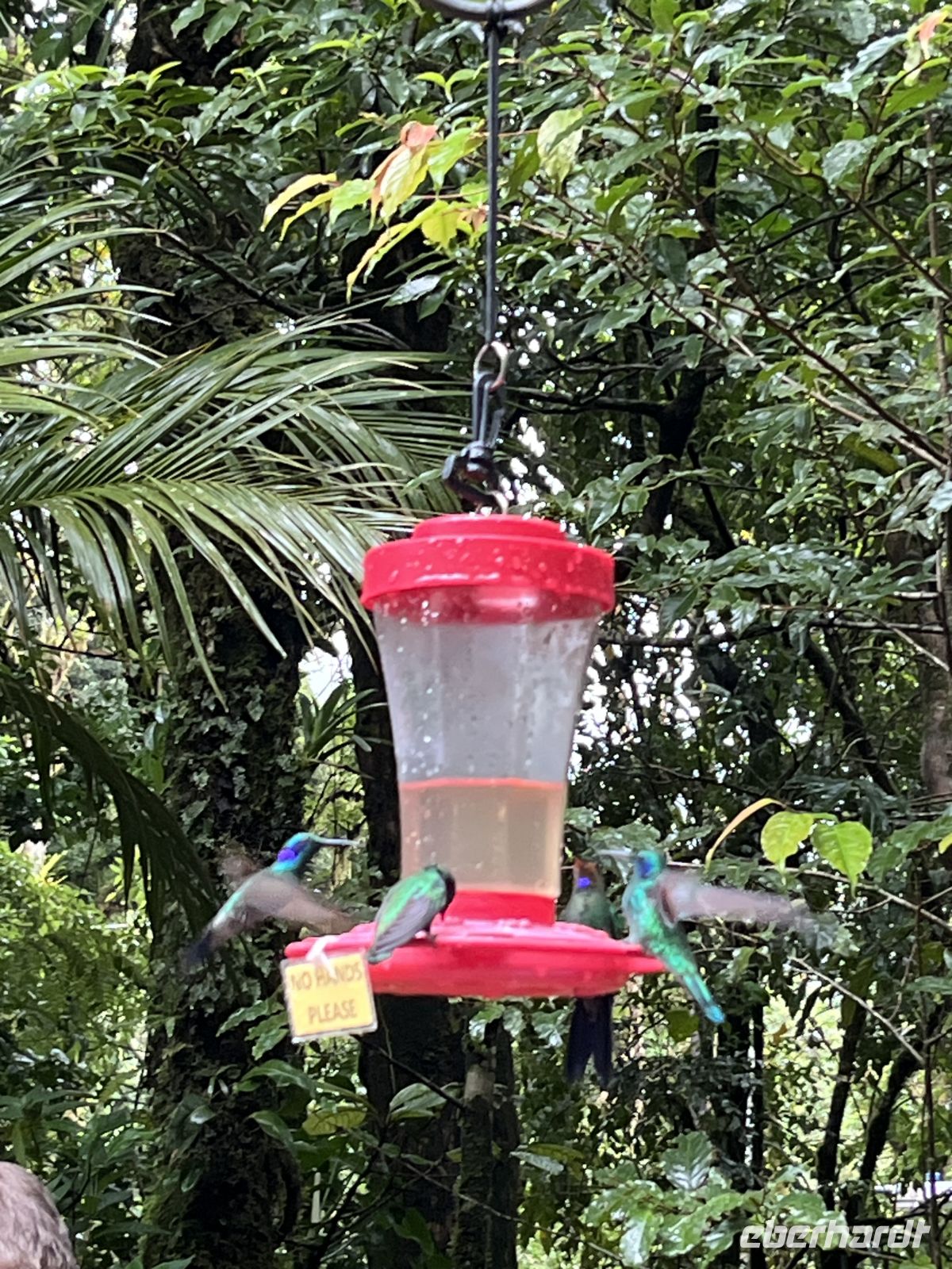 Anschließend hatten wir etwas Zeit zur freien Verfügung, bevor wir uns 16:00 Uhr zur Vogelbeobachtung bei Feathers auf dem Hotelgelände verabredeten. Hier hatten wir viele Gelegenheiten für Fotos von Kolibris in allen Farben und Formen. Und anschließend kamen wir zu einer Runde zusammen, um die Reise Revue passieren zu lassen und auszuwerten.