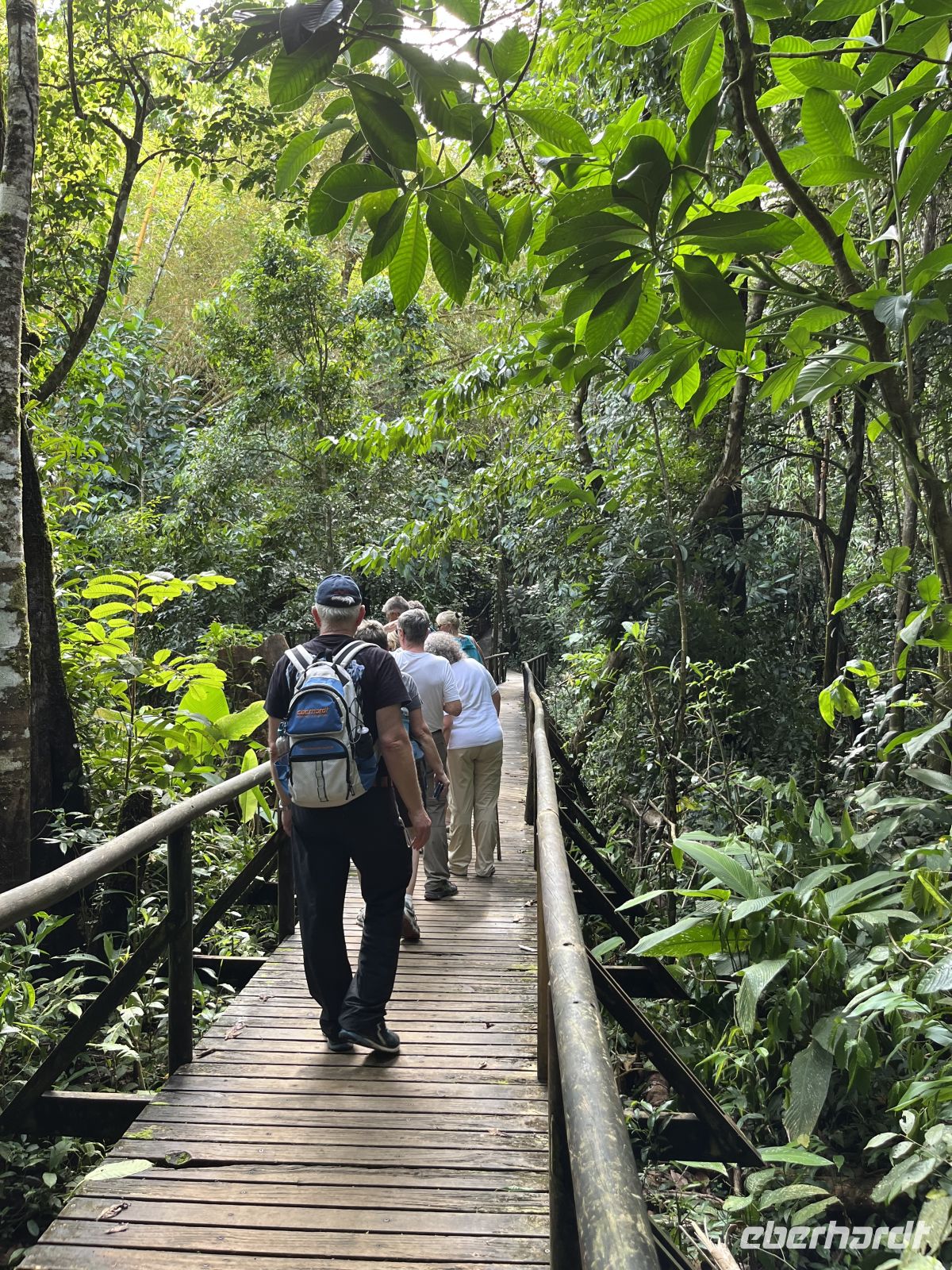Im Spanischen heißt Nebelwald eigentlich wortwörtlich übersetzt Wolkenwald. Und so erlebten wir ihn heute auch. Mit Regenkleidung und Regenschirm bewaffnet, traten wir unsere Hängebrücken-Wanderung durch den Wald an. Sie führte entlang acht verschiedener Hängebrücken unterschiedlicher Länge. Dabei waren wir circa 30 Meter über dem Talboden und konnten so die verschiedenen Stockwerke des Waldes und einige schöne Ausblicke entdecken (gesamt ca. 3 Kilometer). Nach einer kleinen Kaffeepause besuchten wir die Faultier-Auffangstation. Hier gab es zwölf Faultier-Weibchen, die zum Teil schon mehrere Jahre in der Station lebten. Viele hatten Unfälle und Beeinträchtigungen, sodass sie nicht mehr im Freien überleben würden. Zunächst wirkten sie sehr träge, aber dann wachten sie immer mehr auf und wurden aktiv. Zum Schluss sahen wir, wie sie gefüttert wurden. Unsere Mittagspause verbrachten wir im Kolibri Café, welches seinem Namen alle Ehre machte, bevor wir am Nachmittag im Hotel entspannen konnten oder noch eine kleine Wanderung in Hotelnähe unternahmen. Einige probierten auch den Hotelpool aus. Zum Abendessen kehrten wir gemeinsam in ein nettes Lokal in Hotelnähe ein und ließen den Tag ausklingen.