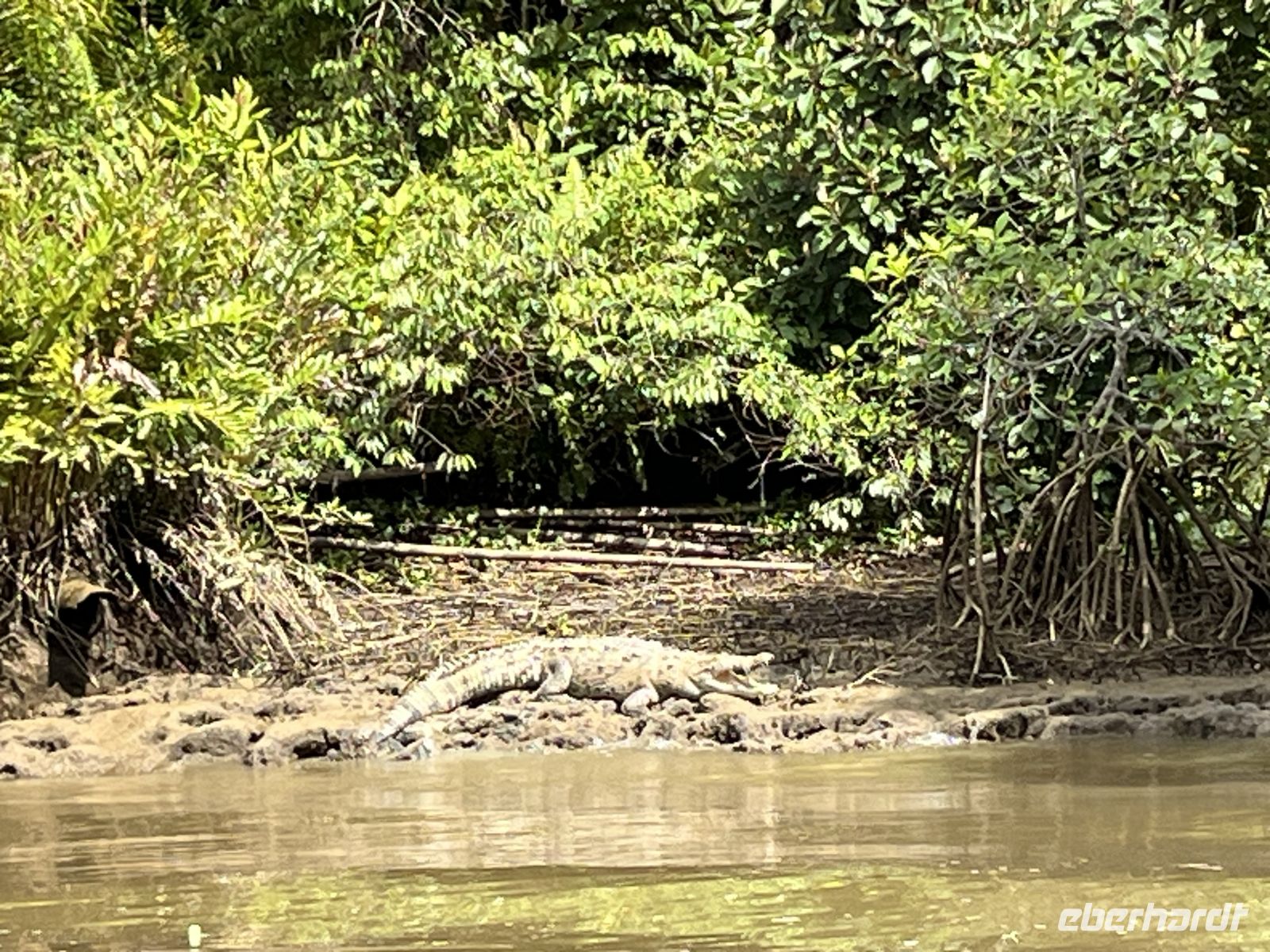 Nach drei Übernachtungen in der Aguila de Osa Lodge nahmen wir heute das Boot zurück nach Sierpe. Zuvor konnten die Frühaufsteher noch einen wunderschönen Sonnenaufgang beobachten. Wir fuhren mit dem Boot entlang der Küste und anschließend auf dem Sierpe Fluss vorbei an den Mangrovenwäldern. Unser Kapitän erspähte ein amerikanisches Krokodil am Ufer, welches das Maul weit aufgerissen hatte. Was für ein gebührender Abschluss unserer Zeit im Regenwald! In Sierpe erwartete uns unser Reiseleiter Nico und Busfahrer Edgar. Ganz in der Nähe besuchten wir eine Zweigstelle des costaricanischen Nationalmuseums - Sitio 6. Hier wurden präkolumbianische Steinkugeln der Diquis-Kultur gefunden (ca. 800 n. Chr.) und zum UNESCO Welterbe erklärt. Wir fuhren nach Palmar Norte für Erledigungen und das Mittagessen.