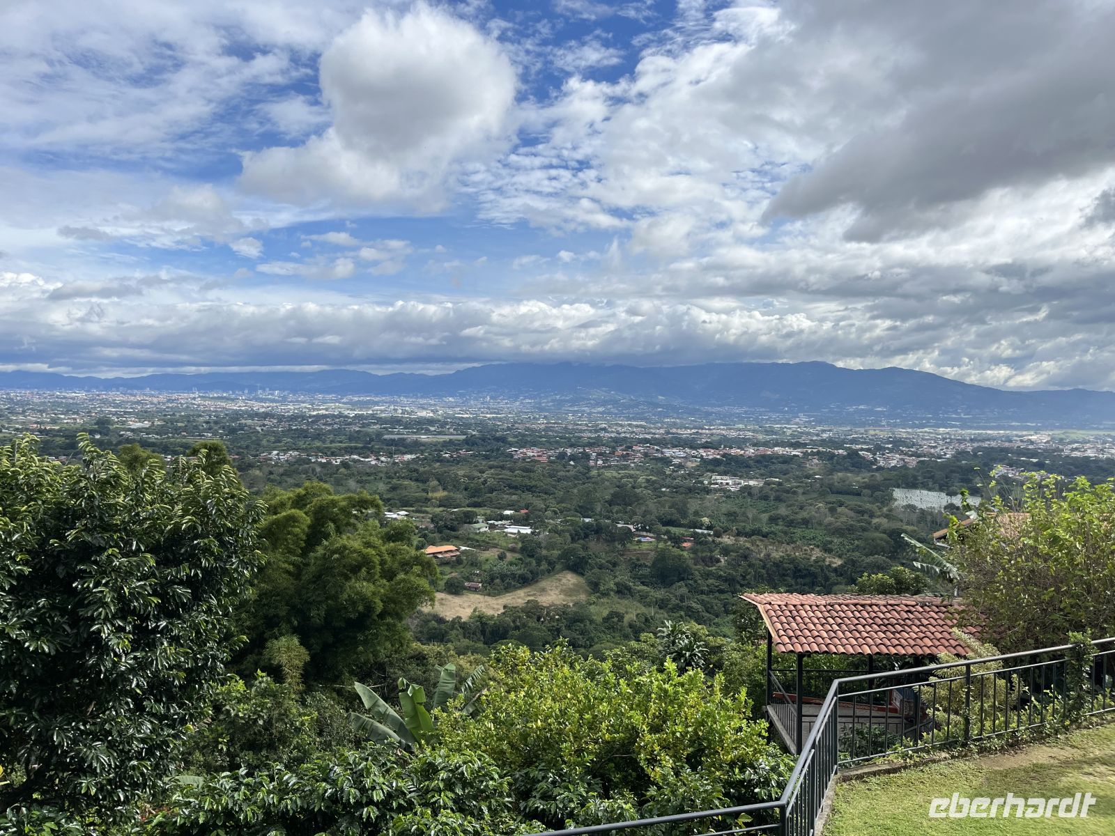 Heute stand ein aufregender Reisetag bevor. Aus den unterschiedlichsten Himmelsrichtungen reisten wir zuerst nach Frankfurt an und trafen uns hier am Flughafen am Gate. Bei schönstem Wetter ging der Flieger nach Costa Rica. Nach 13 Stunden Flug und mehr oder weniger Schlaf zwischendrin landeten wir am Abend in San José, der Hauptstadt von Costa Rica. Hier empfing uns unserer Reiseleiter Nico und wir fuhren eine kurze Strecke zum Hotel, wo wir nach dem ersten Tages-Briefing müde in unsere Betten fielen.