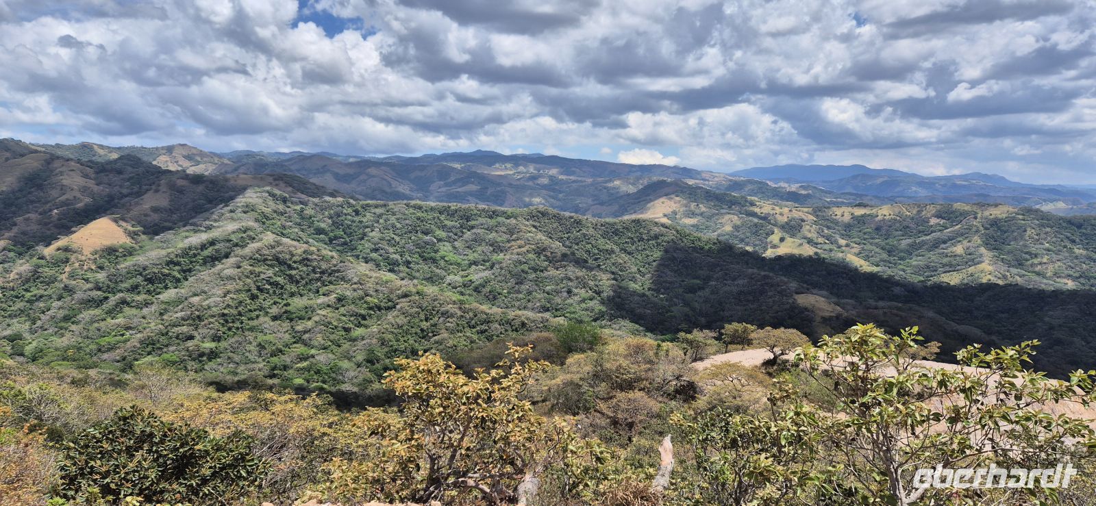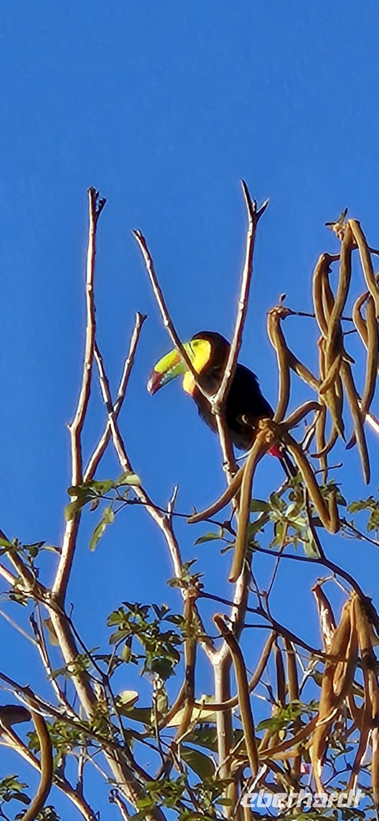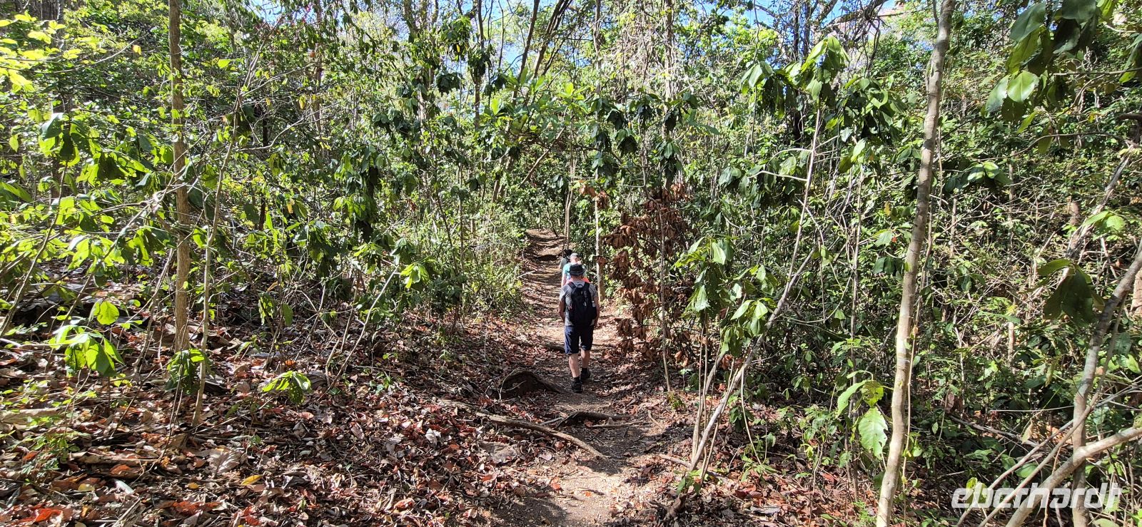 Der Morgen beginnt heute mal in Ruhe ohne Familie Brüllaffe, erneut mit einem tollen Frühstück und mit einem optionalen Ausflug, der uns auf den Pazifik hinausführt. Wir wollen unser Glück versuchen und Delfine und vielleicht sogar Buckelwale beobachten. Gemeinsam steigen wir mit noch weiteren Besuchern ins Boot und werden schon kurz nach Abfahrt von einer Meeresschildkröte beäugt. Wenig später zeigt sich, dass sich der Ausflug gelohnt hat. Mehrere karibische Delfine tauchen neben unserem Boot auf. Besonders auffällig sind die hellen, fast weißen Flecken auf ihren Rücken, die im Wasser deutlich schimmern. Wir beobachten, wie sie geschickt und mit gewaltigem Tempo auf Fischfang gehen. Immer wieder schnellen fliegende Fische aus dem Wasser, während die Delfine hinter ihnen herjagen. Auch Thunfische gehören heute zu ihrer Beute. Es ist faszinierend, dieses lebendige Schauspiel aus nächster Nähe zu sehen. Während wir weiter über das ruhige Meer gleiten, entdecken wir zusätzlich zwei riesige Mantas, die elegant unter der Wasseroberfläche ihre Kreise ziehen. Nur der erhoffte Buckelwal, der von anderen Booten gesichtet wurde, lässt sich bei uns leider nicht blicken – er ist offenbar bereits weitergezogen. Trotzdem ist es ein wunderschöner Ausflug. Zum Abschluss haben wir sogar noch Zeit, ins Wasser zu springen, ein wenig zu schwimmen und zu schnorcheln. Die Crew kümmert sich dabei um eine Stärkung für uns, es gibt frische, süße Ananas – ein perfekter Snack mitten auf dem Meer. Zurück in unserer Lodge genießen wir zunächst etwas Freizeit, bevor es am Nachmittag weitergeht. Unser Ziel ist das nahegelegene Werner-Sauter-Biological Reserve, ein besonderes Naturreservat, das von der Familie Sauter gegründet wurde. Ihr Ziel war es, der intensiven Ausbeutung der Natur in früheren Zeiten etwas entgegenzusetzen. Über Jahrzehnte hinweg wurde hier sorgfältig aufgeforstet und geschützt – mit beeindruckendem Ergebnis. Heute hat sich ein vielfältiges Biotop entwickelt, in dem zahlreiche Vogelarten und eine üppige Pflanzenwelt heimisch ist. Dazu werden wir von unseren beiden Guides Christopher und Mauricio abgeholt und begrüßt. Auf unserer Fahrt entdecken wir eine Brüllaffengruppe, die sich in den Baumwipfeln über uns ausruht. Mit den tollen Teleskopen unserer Guides, können wir diese aus nächster Nähe beobachten und es entstehen herrliche Eindrücke, sondern auch tolle Aufnahmen. Mit viel Engagement und einem guten Auge für Details führen die beiden uns anschließend durch das Reservat. Schnell wird klar, wie viel Leben sich hier im dichten Grün verbirgt. Immer wieder bleiben wir stehen, entdecken besondere Pflanzen oder hören Vogelstimmen aus dem Blätterdach. Besonders eindrucksvoll sind einige der außergewöhnlichen Baumarten, die hier wachsen. Die Stachelzeder fällt sofort durch ihre kräftigen Dornen auf, während der sogenannte Krokodilbaum mit seiner eigenwilligen Struktur fast ein wenig urzeitlich wirkt. Während wir langsam durch den Wald wandern, erfahren wir immer wieder spannende Geschichten über die Pflanzen, Tiere und die Entwicklung dieses Schutzgebietes. Wir teilen uns in zwei Gruppen auf. Eine Gruppe wagt sich auf einen etwas anspruchsvolleren Pfad, der zu einem Aussichtspunkt hinaufführt. Von dort eröffnet sich ein fantastischer Blick über die Bucht von Sámara. Die andere Gruppe bleibt im flacheren Gelände und nimmt sich mehr Zeit, die kleinen Details der Flora und Fauna entlang des Weges zu entdecken. In der angenehmen Nachmittagsstimmung genießen wir die Ruhe des Waldes und die vielen neuen Eindrücke.