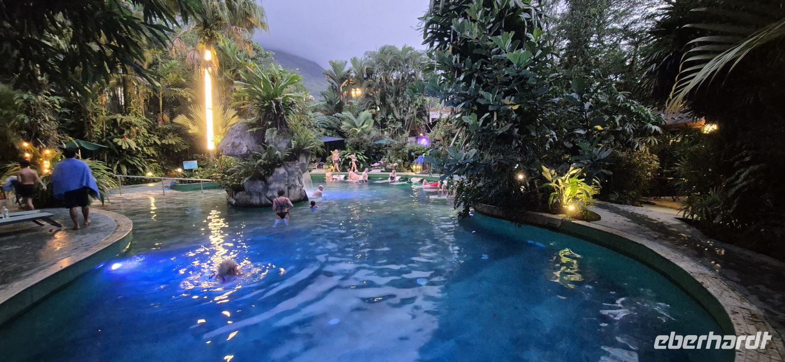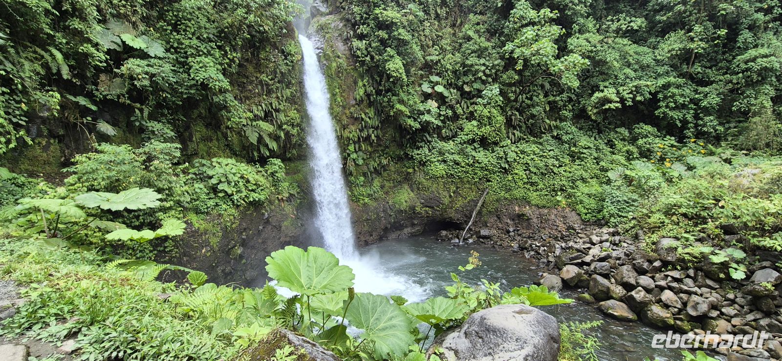 Der Morgen beginnt hier nicht mit einem Wecker, sondern mit der unverwechselbaren Stimme der Brüllaffen. Das tiefe Grollen der Männchen hallt durch den Regenwald und erinnert uns daran, dass wir mitten in der Natur Costa Ricas aufwachen. Nach einer Nacht voller Dschungelgeräusche und einem kräftigen Guss genießen wir ein ausgiebiges Frühstück mitten in der Natur. Besonders populär und traditionell ist dabei das typische Gericht Gallo Pinto – eine herzhafte Mischung aus Reis und Bohnen, dazu Eier, Käse und knuspriger Toast. Während wir essen, beobachten wir neugierig die Vögel um uns herum, darunter auch mehrere Tuberkelhokkos, die sich ebenfalls für das bereitgelegte Obst interessieren. Costa Rica gilt nicht umsonst als eines der vogelreichsten Länder der Welt. Frisch gestärkt machen wir uns auf den Weg zum beeindruckenden La Fortuna Waterfall. Der Weg hinunter führt über mehr als 530 Stufen tief in die üppig grüne Schlucht. Unten angekommen bietet sich ein spektakulärer Anblick: Aus fast 60 Metern Höhe stürzt das Wasser in ein türkisfarbenes Becken, umgeben von dichtem Regenwald. Ein Anblick, der sich sehr gelohnt hat und uns auch die 530 Stufen nach oben erneut bewältigen lässt. Im Anschluss bummeln wir durch das lebendige Städtchen La Fortuna. Zwischen bunten Souvenirläden und kleinen Cafés begleitet uns immer wieder der Blick auf den perfekt geformten Arenal Vulkan, eines der bekanntesten Wahrzeichen des Landes. Auf unserer Fahrt zum Mittagsstopp entdecken wir, also Nico-hoch oben in den Baumwipfeln ein Faultier – in Costa Rica immer ein besonderer Glücksmoment. Später sorgt noch ein winziger, aber faszinierender Bewohner des Regenwaldes für Staunen: Ein leuchtend gefärbter Pfeilgiftfrosch, dessen auffällige Farben in der Natur eine klare Warnung an mögliche Fressfeinde sind. Am Abend gönnen wir uns Entspannung in den warmen Becken der Paradise Hot Springs. Zwischen tropischer Vegetation wechseln wir von Pool zu Pool und lassen uns von den unterschiedlichen Temperaturen verwöhnen. Während über uns die Zikaden ihr Konzert geben und der Regenwald in der Dämmerung lebendig wird, fühlt sich dieser Ort wie eine kleine Oase mitten im Dschungel an. Ein reichhaltiges Abendbuffet rundet den Tag genussvoll ab. Später kehren wir in unsere Lodge zurück und lauschen noch einmal den nächtlichen Geräuschen des Waldes. Der Dschungel schläft nie – und wir sind gespannt, ob uns morgen früh wieder das markante Brüllen unseres tierischen Weckers begrüßt.