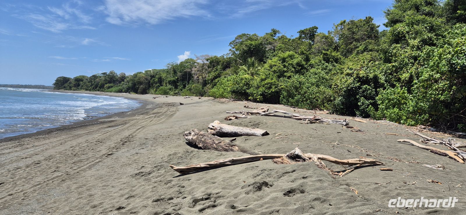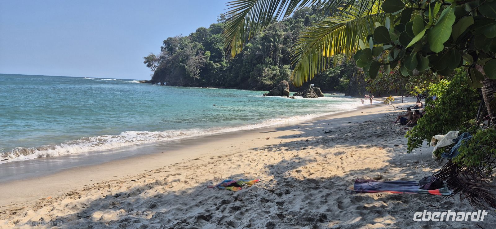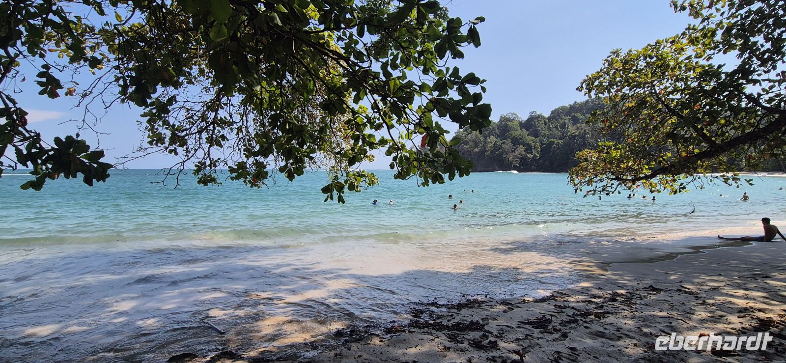 Unsere Wanderung führt uns überwiegend durch schattige Abschnitte, immer wieder begleitet von einer leichten Brise vom Meer. Es ist kein anstrengender Marsch, sondern vielmehr ein genussvolles Eintauchen in diese beeindruckende Naturkulisse. Für viele von uns entwickelt sich dieser Tag zu einem der absoluten Höhepunkte der Reise. Und es soll noch besser kommen, unsere Guides führen uns zu einem Tapir, welcher in einem Schlammloch ein Mittagsschläfchen hält. So haben wir auch dieses sehr seltene Tier, wenn auch gut versteckt im Gebüsch, erblicken dürfen.