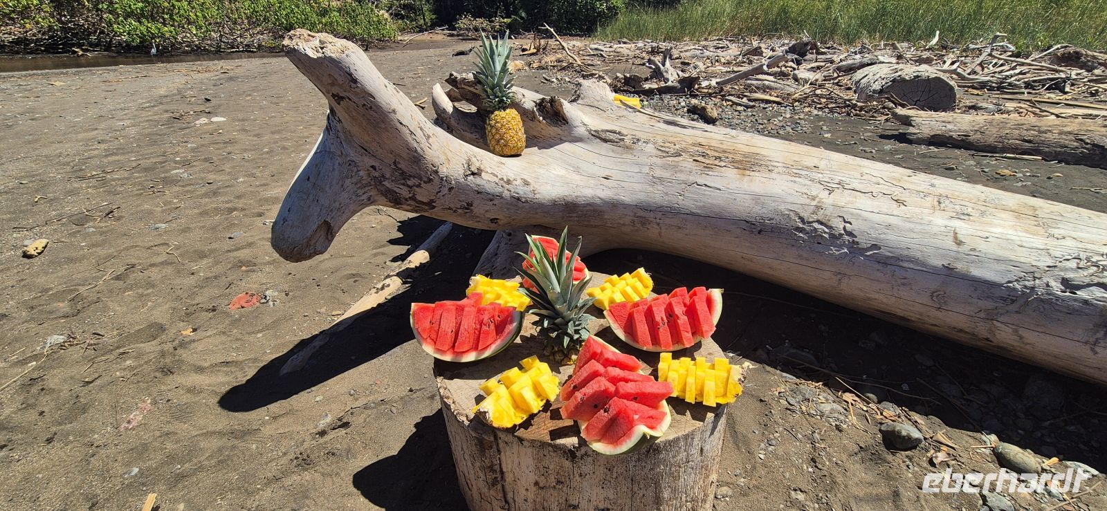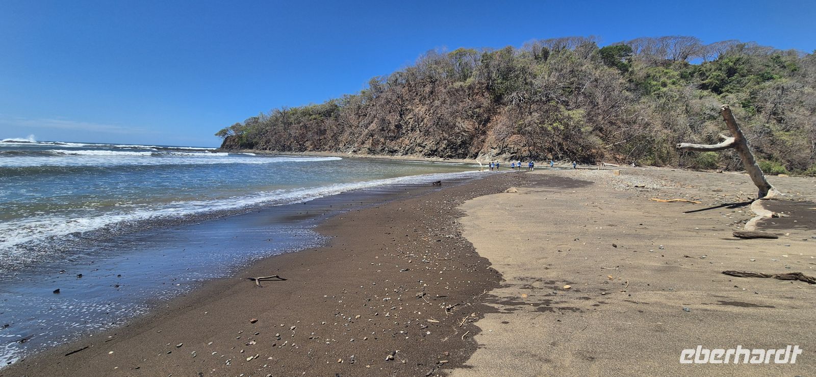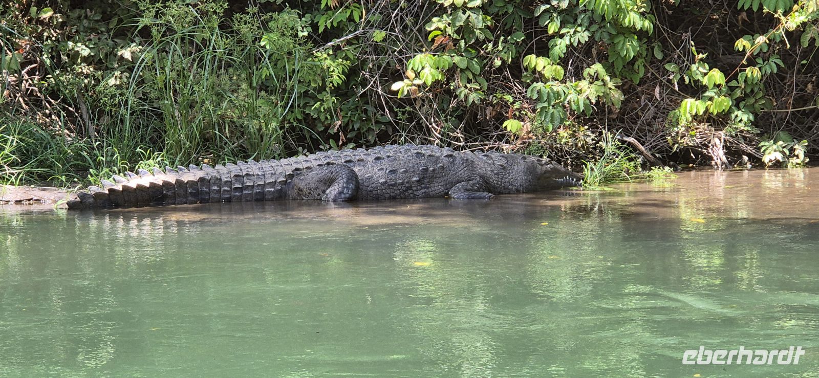 Unsere Wanderung führt uns überwiegend durch schattige Abschnitte, immer wieder begleitet von einer leichten Brise vom Meer. Es ist kein anstrengender Marsch, sondern vielmehr ein genussvolles Eintauchen in diese beeindruckende Naturkulisse. Für viele von uns entwickelt sich dieser Tag zu einem der absoluten Höhepunkte der Reise. Und es soll noch besser kommen, unsere Guides führen uns zu einem Tapir, welcher in einem Schlammloch ein Mittagsschläfchen hält. So haben wir auch dieses sehr seltene Tier, wenn auch gut versteckt im Gebüsch, erblicken dürfen.