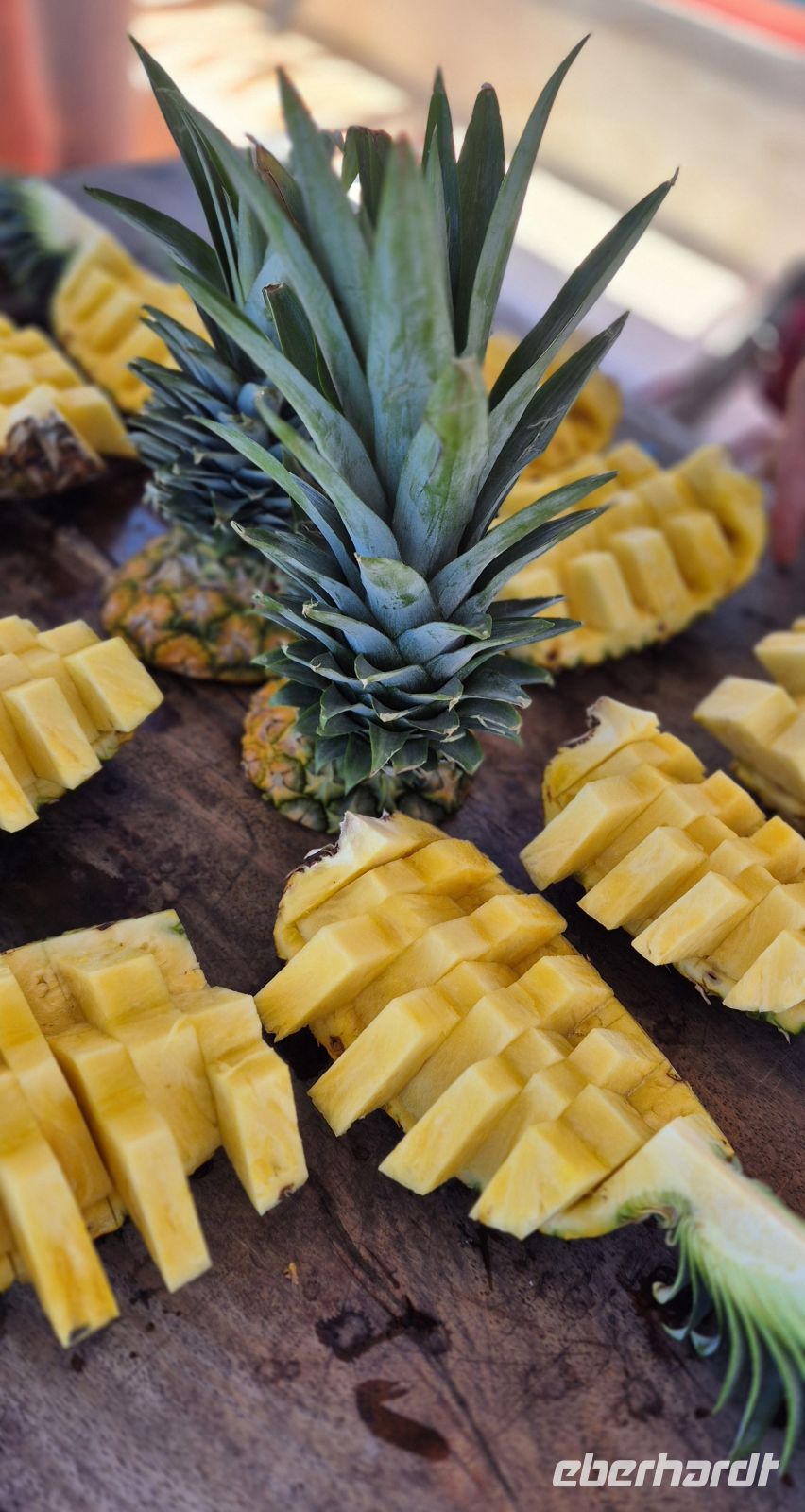 Kurz darauf treffen wir uns beim reichhaltigen Frühstücksbuffet unserer kleinen Hotelanlage. Seit über dreißig Jahren wird das Haus von einem deutschen Ehepaar geführt, und so finden wir hier eine wunderbare Mischung aus tropischen Früchten und vertrauten Frühstücksleckereien. Frischer Kaffee, „richtiges“ Brot und viele kleine Köstlichkeiten sorgen dafür, dass wir bestens gestärkt in den Tag starten.