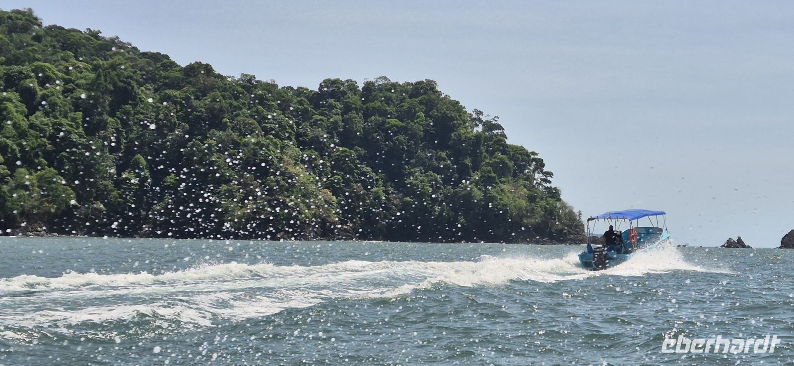 Gemeinsam mit unserer Bootscrew Carlos und Felix gleiten wir im ersten Licht des Tages über das ruhige Meer. Die Temperaturen sind angenehm, die See ist glatt – perfekte Bedingungen für diese etwa einstündige Fahrt. Schon die Überfahrt fühlt sich wie ein kleines Abenteuer an und stimmt uns wunderbar auf das Kommende ein.