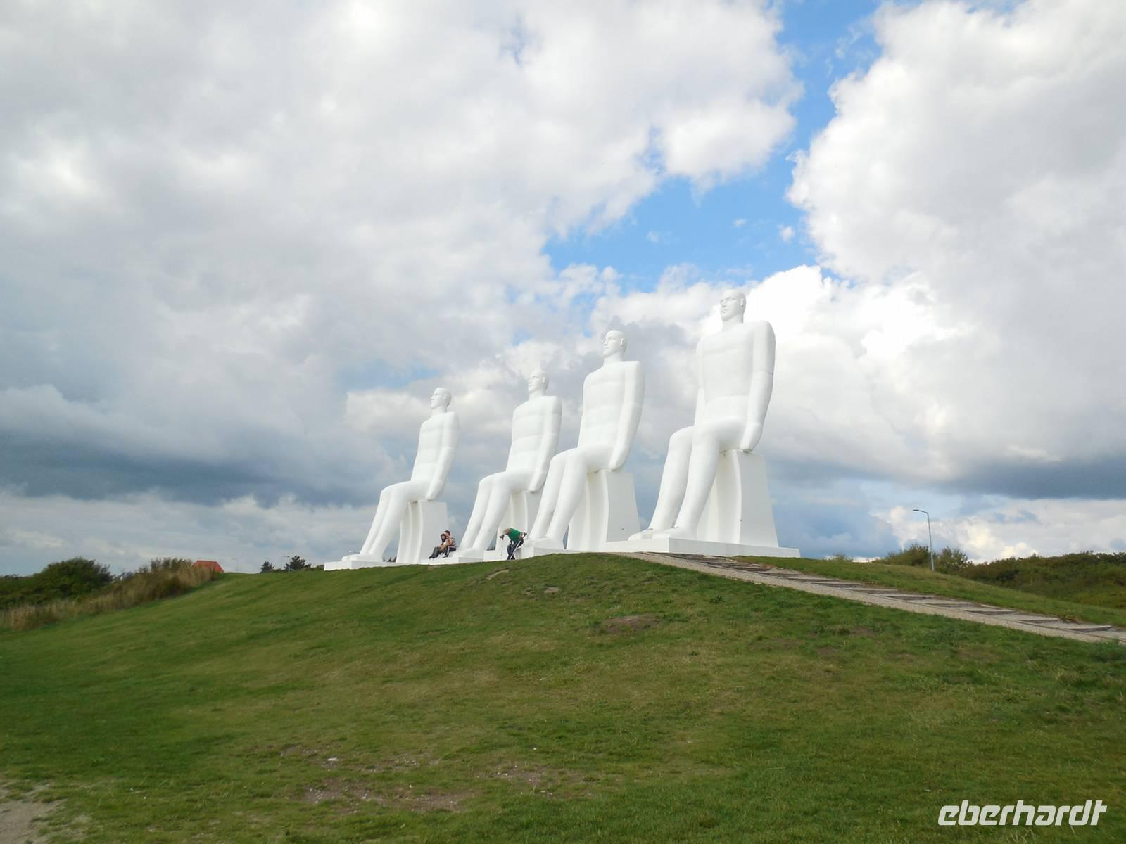 Nach dem Frühstück machten wir uns heute auf zu einem wunderbaren Ausflug an die Nordseeküste. Wir erweiterten den eigentlichen Ausflug, welcher uns nur nach Esbjerg und Ribe bringen sollte, auf die gesamte Nordseeküste. So fuhren wir vorbei an den Wäldern und Seen Silkeborgs bis zum Ringköbing Fjord. Dort machten wir unsere erste Pause am wunderschönen Hafen, bei Sonnenschein!!! Weiter ging es entlang des Fjords zur Nordseeküste bis Sondervig, von dort fuhren wir den Holmsland Klit weiter zwischen Fjord und Küste bis Hvide Sande. Dort kauften wir frischen Räucherfisch und Brötchen und machten es uns auf einem Parkplatz gemütlich. War das lecker, hmmmm! Und an diesem Parkplatz gab einen befestigten Weg durch die Dünen und so konnten wir mit unseren Rollis bis an den Strand -traumhaft!!! Das war ein tolles Erlebnis für alle! Später ging es weiter auf dem Klit bis nach Esbjerg, dort bestaunten wir die "Weißen Männer am Meer" und den großen, erst 150 Jahre alten Hafen! Wir fuhren weiter entlang der Küste, jetzt durch das Wattenmeer, nach Ribe! Dort besuchten wir das Sturmflutkino des Wattenmeerzentrums...ein toller Film über Sturmfluten erwartete uns! Schließlich fuhr Jens mit uns noch runter bis ans Wattenmeer ran, aber durch die Flut konnten wir nur Wasser sehen :-)! Nach diesem erlebnisreichen Tag an der Nordseeküste fuhren wir am Abend zurück nach Aarhus und ließen uns den leckeren Lachs zum Abendessen schmecken.