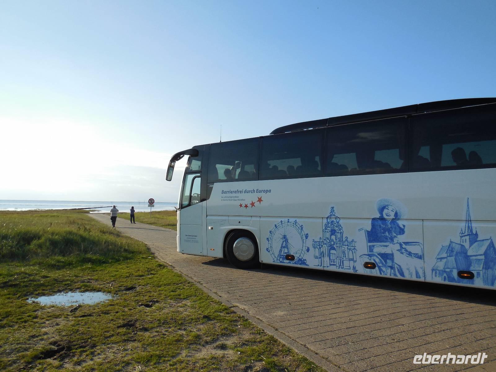 Gut gestärkt nach einem späten, sehr guten Frühstück entdeckten wir am späten Vormittag gemeinsam mit einer örtlichen Reiseleiterin die zweitgrößte Stadt Dänemarks. Wir haben, ganz tapfer bei Regen, Aarhus ohne Bus erlebt. Wir sind mit den Rollis bis zur tollen Kathedrale gewandert und haben uns diese dann von innen angeschaut. Unser Jens hat uns dann draußen mit dem Bus erwartet und dann waren wir wieder glücklich zurück im Bus. Jetzt war es schon Mittagszeit und wir wollten einen „echten dänischen Snack" probieren - den typischen Hot Dog. So haben wir an einem Imbiss 21 Hot Dogs bestellt und uns diese im trockenen Bus schmecken lassen. Wir haben auf einer Rundfahrt mit dem Bus die Stadt jetzt noch mehr kennengelernt und sind sogar durch die engen Straßen des Universitätsgeländes gefahren. Am Nachmittag sollten wir zur Kolding Burg fahren, haben uns aber spontan entschieden, lieber in den Nationalpark Mols Bjerge zu fahren. Ole, ein Bekannter von mir, hatte auch spontan Zeit, so dass wir eine tolle Rundfahrt auf der schönen Halbinsel Djursland unternommen haben, welche vor den Toren Aarhus liegt. Dadurch blieb uns bei dem Regen die lange Fahrt nach Kolding erspart und wir konnten die schöne Natur an der Ostseeküste genießen. Schließlich erreichten wir am Abend wieder unser Hotel und ließen Tag mit einem tollen Abendessen und einer geselliger Runde mit Wein, unerwarteten Cocktails ? und einer lustigen Stimmung an der Bar ausklingen.