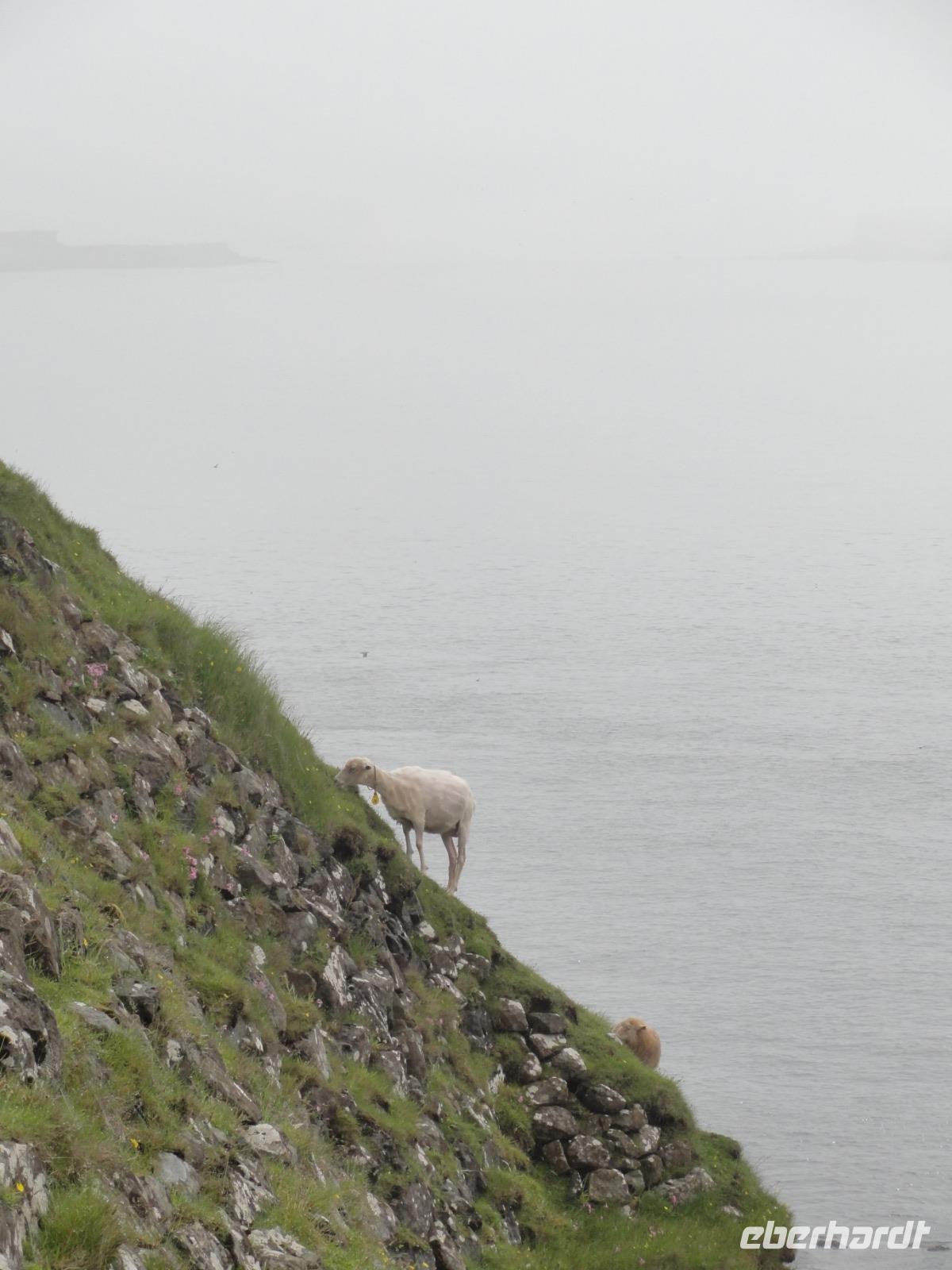 Angekommen in Gjogv holen wir unser Lunchpaket ab und starten unsere Wanderung hinauf auf den Berg um dahinter in das Ambadalur Tal zu schauen. Nach dem ersten Aufstieg geht es flach über die mit Schafen gespickten Wiesen und wir finden einen tollen Platz für unsere Mittagspause. Von hier haben wir einen sensationellen Blick auf die Klippen mit den Papageientauchern. Nach der Stärkung geht es auch schon wieder hinunter ins Dorf Gjogv. Nun fahren wir nach Hvalvik zu Gudrun. Unterwegs machen wir wieder Fotostopps bei den 2 Trollen im Meer und in Eidi. Gudrun empfängt uns in ihrem Zuhause mit Kuchen, Kaffee und Tee. Nebenbei erzählt sie etwas über ihre Familie, Schafe, Pferde und Hund. Danach heißt es Fütterung. Wir dürfen hautnah dabei sein wie Gudrun ihre Schafe mit Milch versorgt und sogar selbst die Flasche geben, was für ein Erlebnis. Jetzt heißt es Abschied nehmen und wir kehren zu unserem Hotel in Runavik zurück.