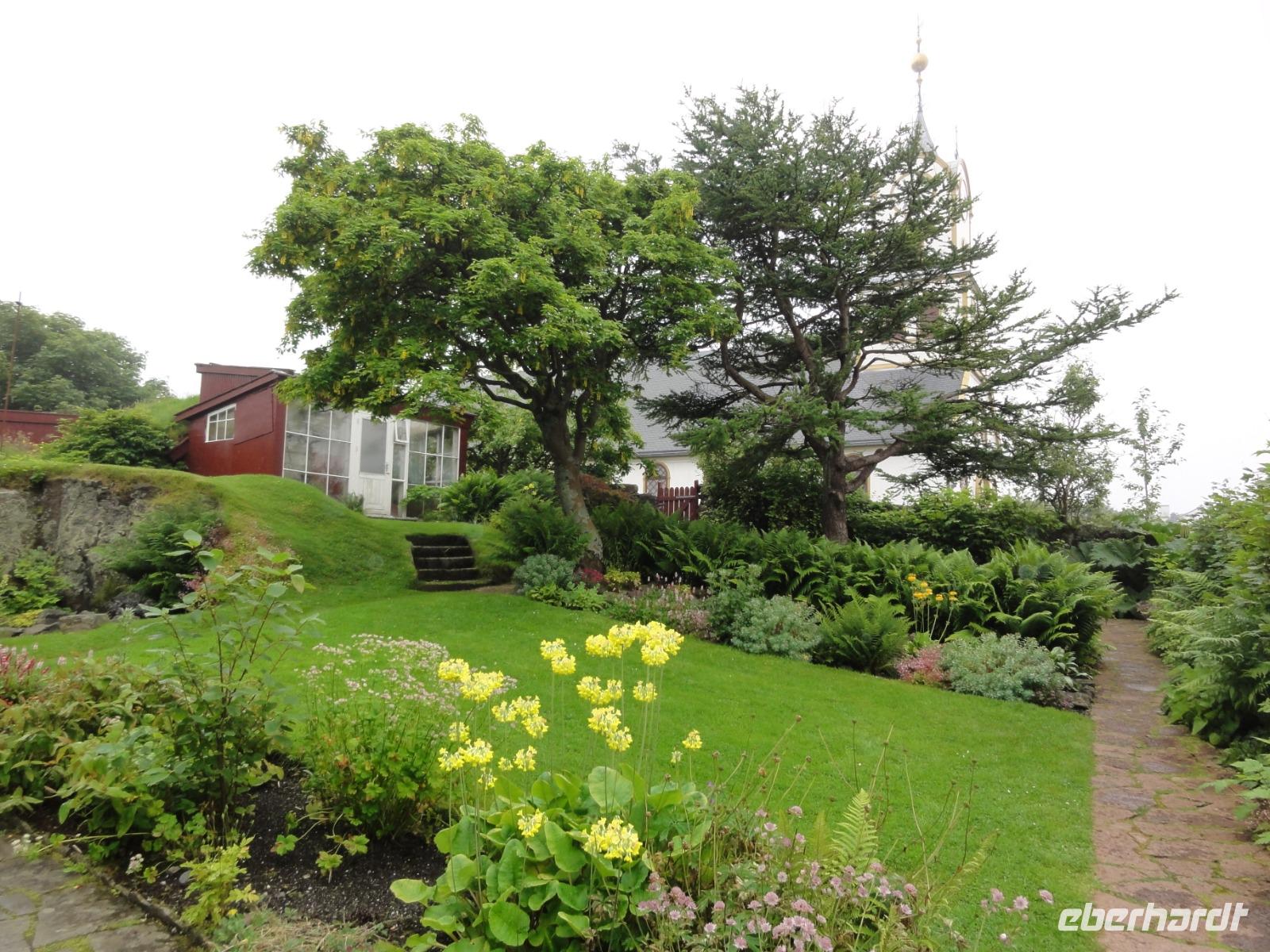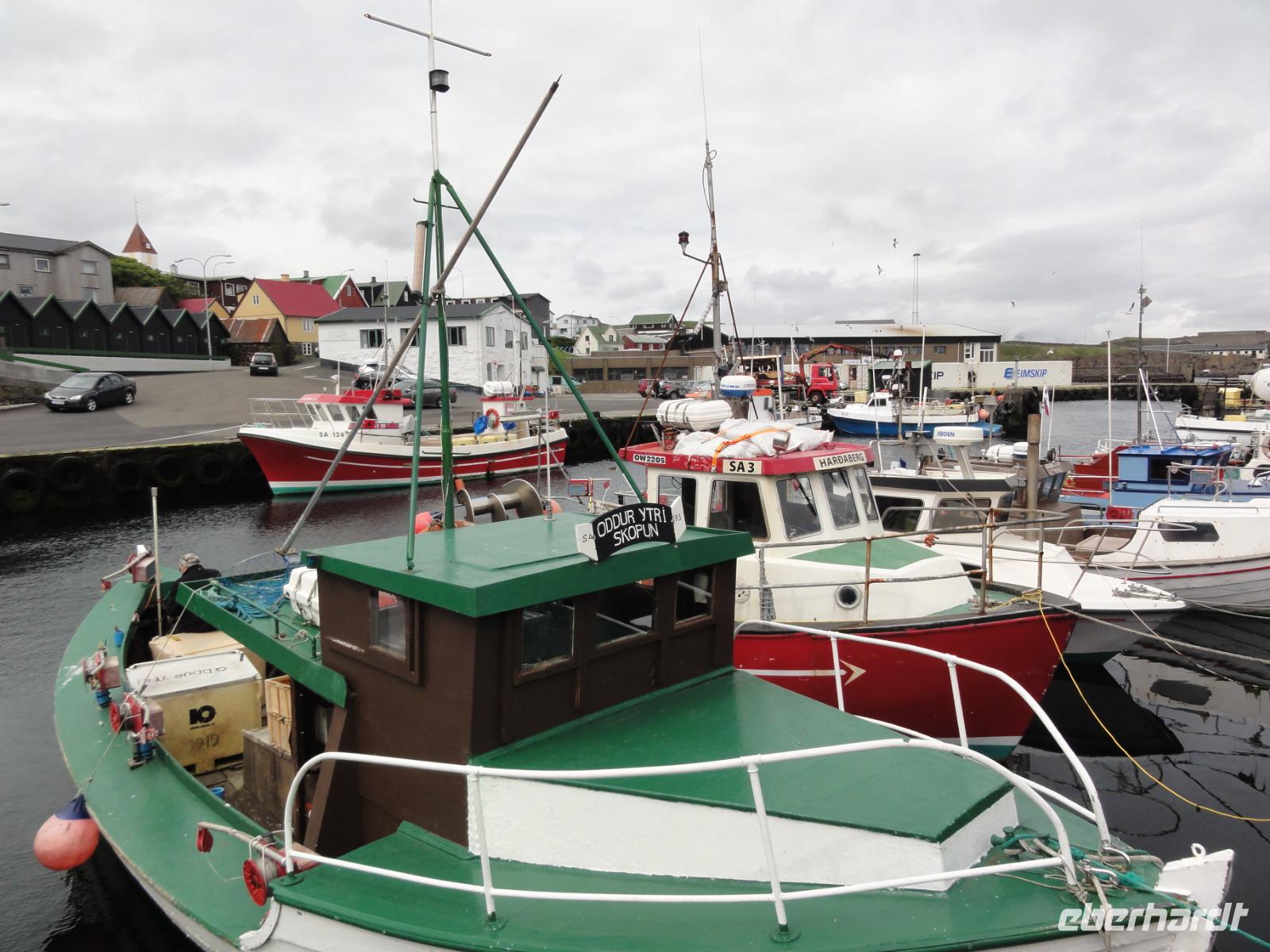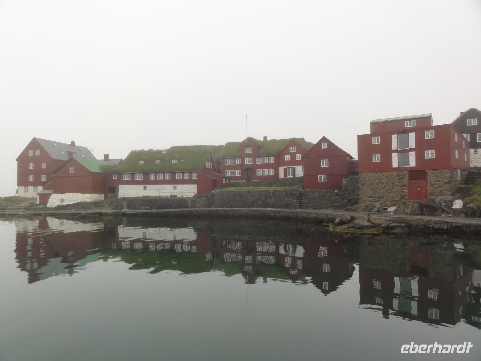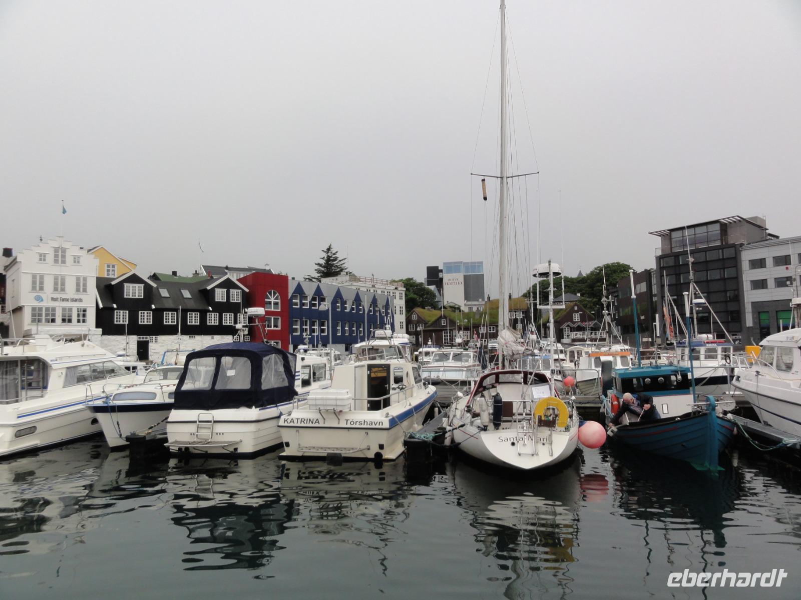3 ... 2 ... 1 ... Cheeeeeeeese... es ist ein tolles Bild geworden. Im Anschluss fahren wir wieder durch den Unterwassertunnel auf die Insel Eysturoy nach Soldarfjordur zu Lena, die uns bereits mit ihrer hausgemachten Fischsuppe erwartet. Platz genommen in ihrem Wohnzimmer lassen wir uns die Fischsuppe mit einer leichten Currynote schmecken. Nebenbei naschen wir Kekse bei Kaffee und Tee. Wir haben noch Zeit für einen kleinen Verdauungsspaziergang in Lenas Garten, dieser ist mit viel Liebe zum Detail angelegt. Der Rhabarber wächst und die Hühner erfreuen sich am saftigen Grün. Nicht zu vergessen der Rabe, der sich ebenso über unseren Besuch freut. Am Nachmittag fahren wir in die Hauptstadt Torshavn und Ann unternimmt mit uns eine Führung durch die Altstadt. Im Anschluss checken wir in unser Hotel für die nächsten 3 Nächte ein, das Hotel Torshavn. Direkt am Hafen gelegen bietet es eine super Ausgangslage, um die Stadt zu erkunden.