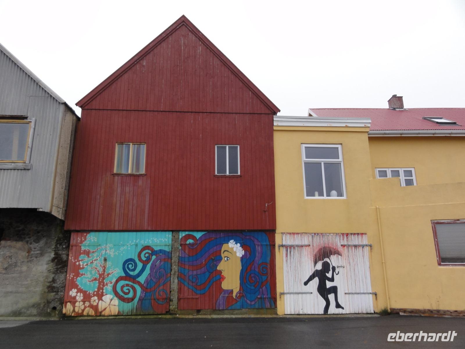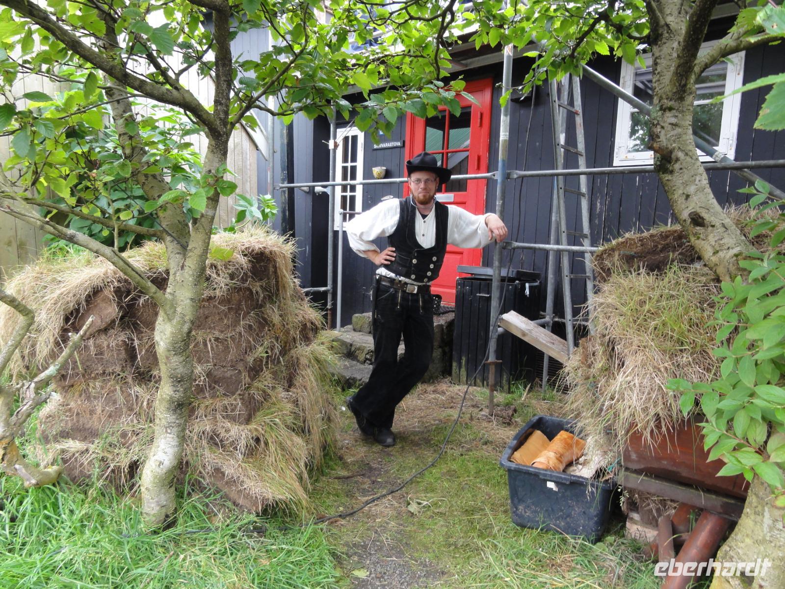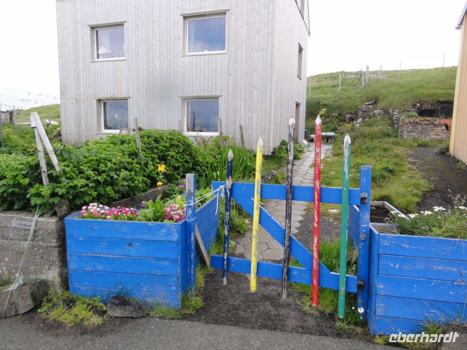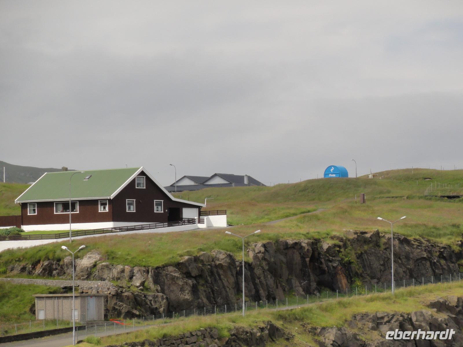 3 ... 2 ... 1 ... Cheeeeeeeese... es ist ein tolles Bild geworden. Im Anschluss fahren wir wieder durch den Unterwassertunnel auf die Insel Eysturoy nach Soldarfjordur zu Lena, die uns bereits mit ihrer hausgemachten Fischsuppe erwartet. Platz genommen in ihrem Wohnzimmer lassen wir uns die Fischsuppe mit einer leichten Currynote schmecken. Nebenbei naschen wir Kekse bei Kaffee und Tee. Wir haben noch Zeit für einen kleinen Verdauungsspaziergang in Lenas Garten, dieser ist mit viel Liebe zum Detail angelegt. Der Rhabarber wächst und die Hühner erfreuen sich am saftigen Grün. Nicht zu vergessen der Rabe, der sich ebenso über unseren Besuch freut. Am Nachmittag fahren wir in die Hauptstadt Torshavn und Ann unternimmt mit uns eine Führung durch die Altstadt. Im Anschluss checken wir in unser Hotel für die nächsten 3 Nächte ein, das Hotel Torshavn. Direkt am Hafen gelegen bietet es eine super Ausgangslage, um die Stadt zu erkunden.