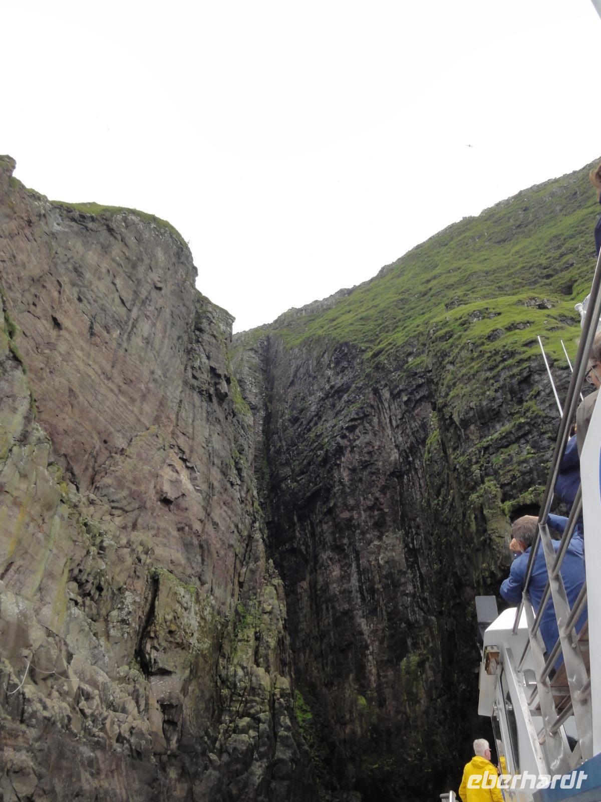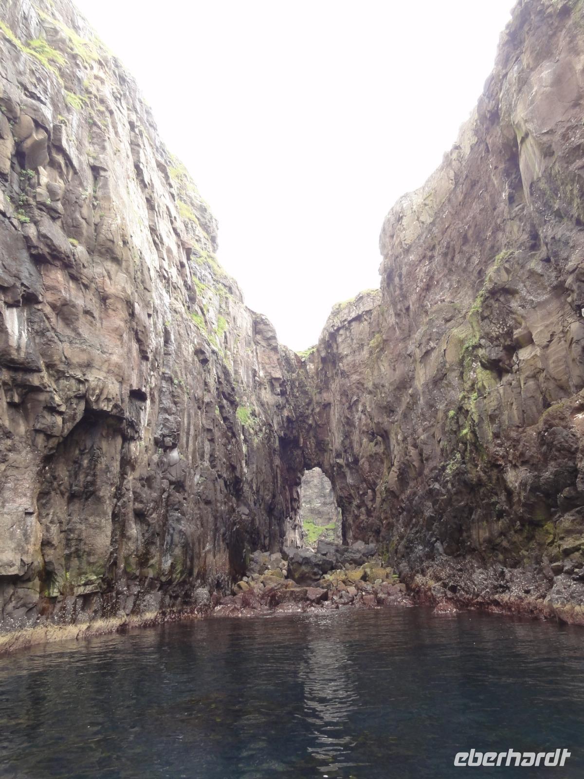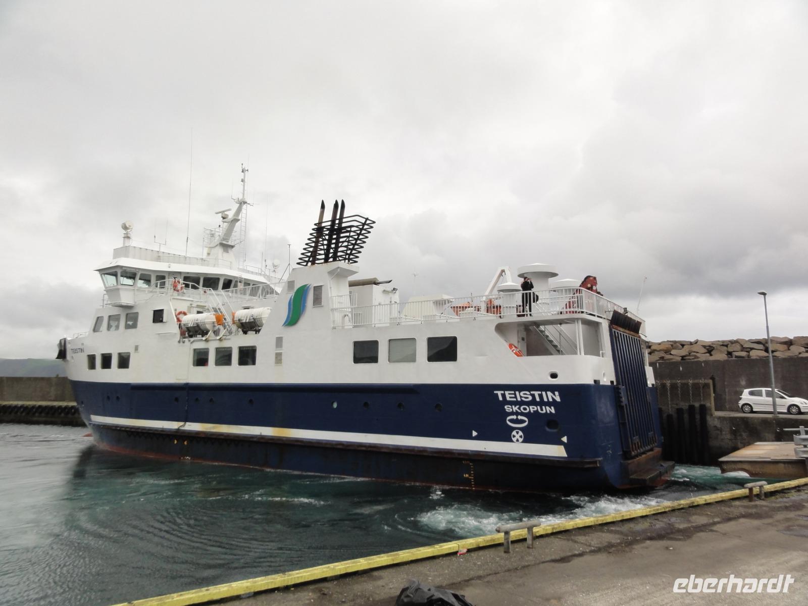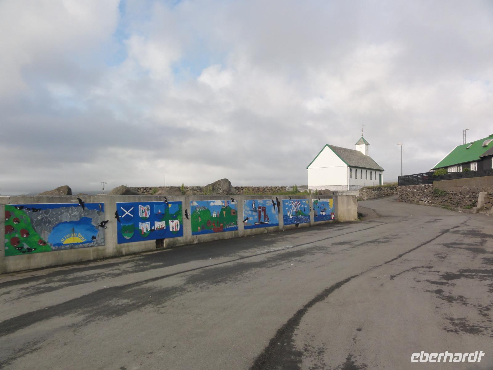 Heute kommen wir nach dem Frühstück in den Genuss mit der Fähre von Streymoy nach Sandoy, die Sandinsel, überzusetzen. Wir fahren die steilen Vogelklippen entlang bis hinunter nach Dalur. Dort machen wir einen kurzen Fotostopp. Wir lauschen den Wellen und dem Rasseln der Steine, die in das Meer gezogen werden. Auf dem Rückweg passieren wir die wohl engste Stelle zwischen 2 Häusern und machen einen weiteren Fotostopp mit einem kleinen Spaziergang im Meer. Danach heißt es schon wieder Kaffee und Kuchen im Café Molini in Skalavik, welches bereits in der 4. Generation geführt wird. Es ist einfach ein Platz zum Verweilen, sehr gemütlich eingerichtet, wie bei Oma zuhause. Toll... Nach der Mittagpause besuchen wir ein Museum und bekommen Einblicke in das Leben der Färinger Familien. Der Bus fährt uns zur Kirche und Ann lässt uns mit dem magischen Schlüssel eintreten. Noch ein paar Fotos geschossen und wir fahren nach Skopun zurück, wo wir wieder mit der Fähre nach Streymoy übersetzen. Von der Fähre aus sehen wir noch einmal den größten Postkasten der Welt. Aber noch nicht genug für heute. Von Gamlaraett fahren wir nach Kirkjubour und es gibt schon wieder Kaffee und Kuchen im ältesten Haus auf den Färöer Inseln. Dieses Haus ist nur aus Schwemmholz errichtet und steht seit 17 Generationen. In der Rauchstube bekommen wir weitere Eindrücke über das Leben der Färöer. Die Kirche mit ihrer Glaskunst besucht und die alte Kathedrale fotografiert geht es auch schon wieder nach Torshavn. Auf dem Weg dahin haben wir gute Sicht auf die Inseln Hestur- das Pferd und Koltur-das Fohlen.