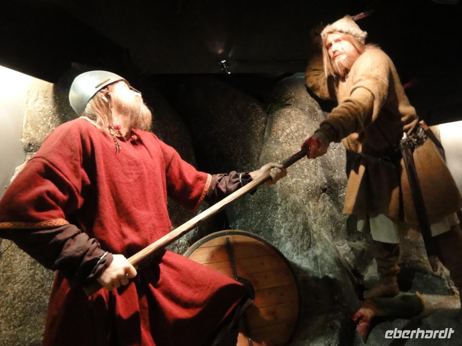 Heute heißt es zeitig frühstücken, da uns bereits der Busfahrer um 7.30 Uhr am Hotel abholt. Wir fahren zum Tivoli und holen unsere Reiseleiterin Brigitte ab. Sie wird uns heute auf der 3 stündigen Stadtrundfahrt alles Nennenswerte über Kopenhagen berichten. Unser Weg führt uns am Christianborg Palast und an der alten Börse vorbei. Hier befinden sich das Parlament und das oberste Gericht. Als Geheimtipp führt uns Birgitte noch in den Bibliotheksgarten. Ein mit Blumen geschmückter Ort zum Verweilen. Umschlossen wird dieser wunderschöne Garten vom Kriegs- und Waffenmuseum. Weiter geht es zum Schloss Amalienborg, der Sitz der Königin Margrethe. Auf der anderen Seite des Hafens befindet sich die Oper und die Königin Dänemarks nutzt ein einfaches Wassertaxi um sie zu besuchen. Zu guter Letzt geht es zu dem Wahrzeichen Kopenhagens, der kleinen Meerjungfrau auf dem Felsen. Durch die Altstadt gelangen wir pünktlich zum Flughafen und verabschieden Brigitte und unseren Busfahrer. Hier begeben wir uns zum Self Check in und geben unsere Koffer ab. Durch die Sicherheitskontrolle begeben wir uns zum Abfluggate und fliegen zu unserem eigentlichen Ziel der Reise. Auf die Sekunde landen wir 13.45 Uhr auf den Färöer Inseln, holen unser Gepäck und treffen unsere Reiseleiterin Ann. Sie wird uns eine Woche lang begleiten und das Leben auf den 18 Inseln näher bringen. Unseren ersten Fotostopp machen wir in Bour, mit Blick auf den Felsen Tindholmur noch im Nebel, aber das Wetter ändert sich sekundenschnell auf den Färöer. Und schon ist der Blick frei auf Tindholmur. Weiter geht es nach Gasadalur, von hier aus gehen wir den Wanderpfad 300 m bis zum Mulafossur Wasserfall. Hier bietet sich uns ein Spektakel, die Wasserfluten stürzen sich 30 m in den Atlantik, was für ein Schauspiel. Nach gefühlten 100 Fotos, wobei jedes Foto ein anderes Wetter hat, kehren wir im Café ein und gönnen uns Kaffee und Kuchen. Die Besonderheit an diesem Café, es wird im Winter zu einer Fleischerei umgebaut. Danach steuern wir unsere Unterkunft für die nächsten 2 Nächte in Runavik an. Auf den Weg dahin fahren wir wieder an Tindholmur vorbei und können jetzt sogar die Insel Mykines sehen, bekannt als Vogelparadies und gleichzeitig die westlichste Insel der Färöer. Diese ist nur mit einem kleinen Boot zu erreichen. Wir durchqueren einen Unterwassertunnel nach Streymoy und die einzige über den Atlantik führende Brücke nach Eysturoy und checken im Hotel Runavik ein.