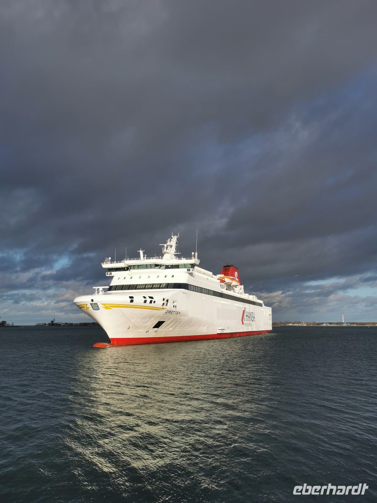 Robert unser Busfahrer flog mit seinem Bus weiter und weiter Richtung Norden und nahm unterwegs immer wieder ein paar Reisewillige mit an Bord, bis uns schließlich in Rostock eine Kaimauer den Weg versperrte. Zumindest eine zeitlang, solange bis sich die Schranken öffneten und wir an Bord der Scandlines Fähre durften, die uns in ruhiger, etwa 2 stündiger Fahrt hinüber nach Gedser brachte.